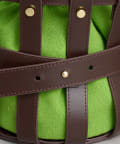 ・冬のかごバッグをレザーで表現した、ユニークなデザインが特徴です。