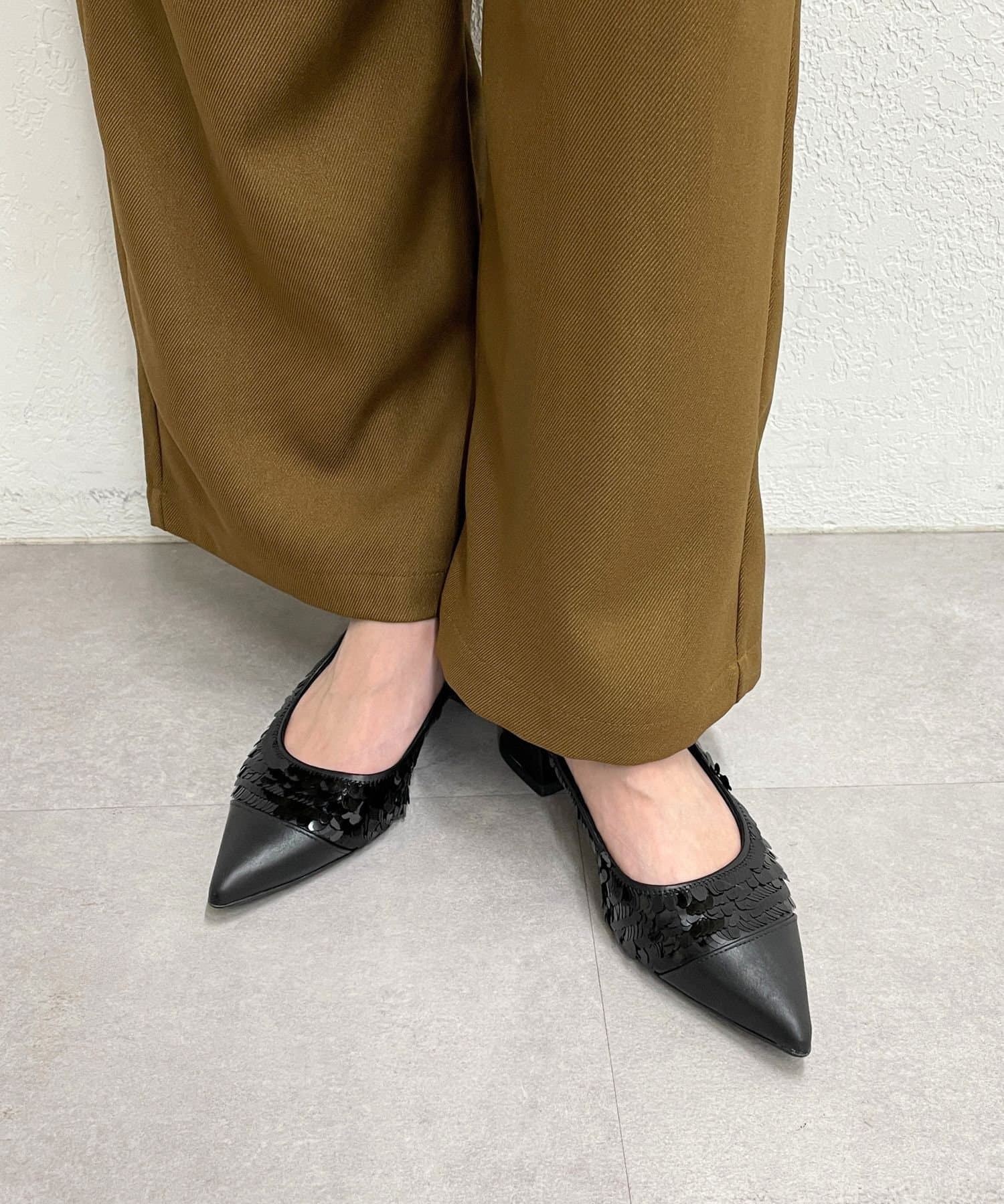 スタイリングのポイントになるスパンコールミュール