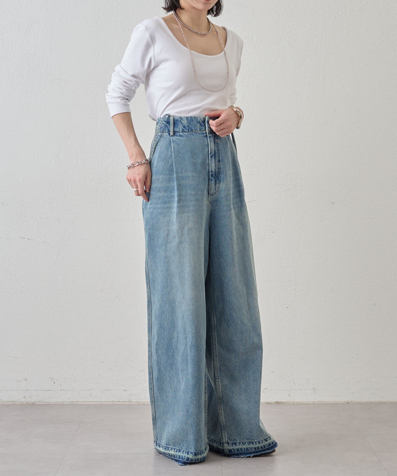 2WAYで着回せるサス付きのワイドデニムが登場!