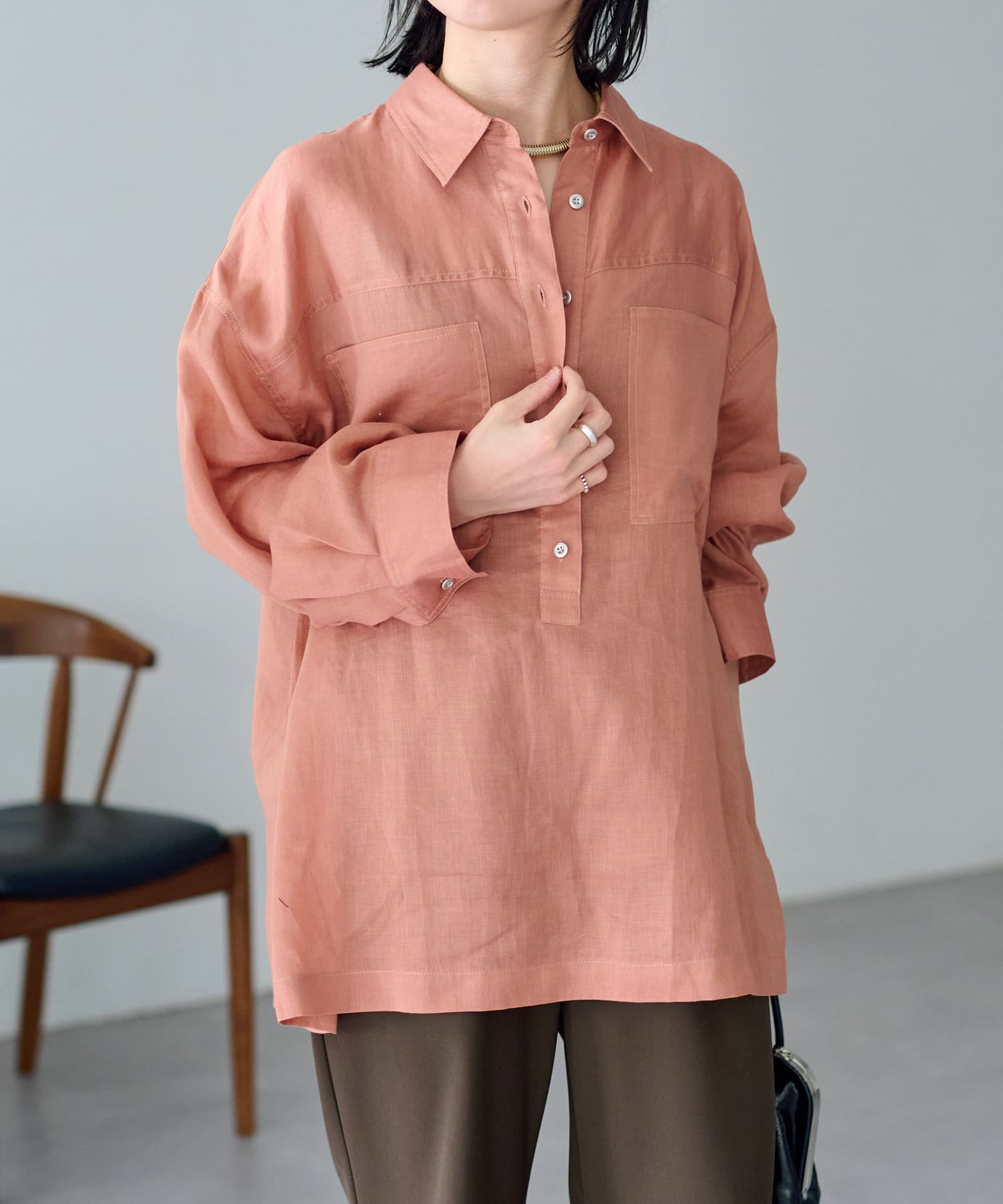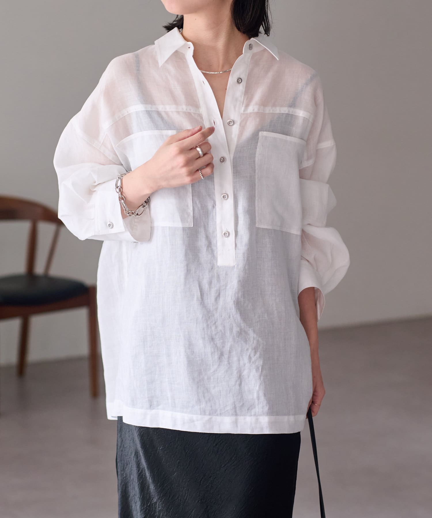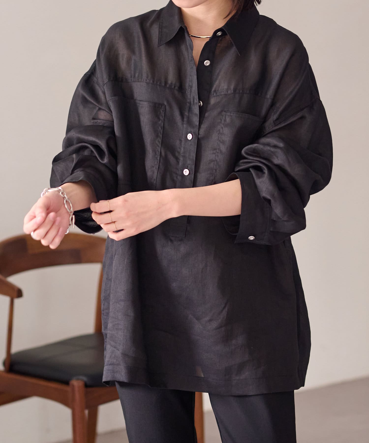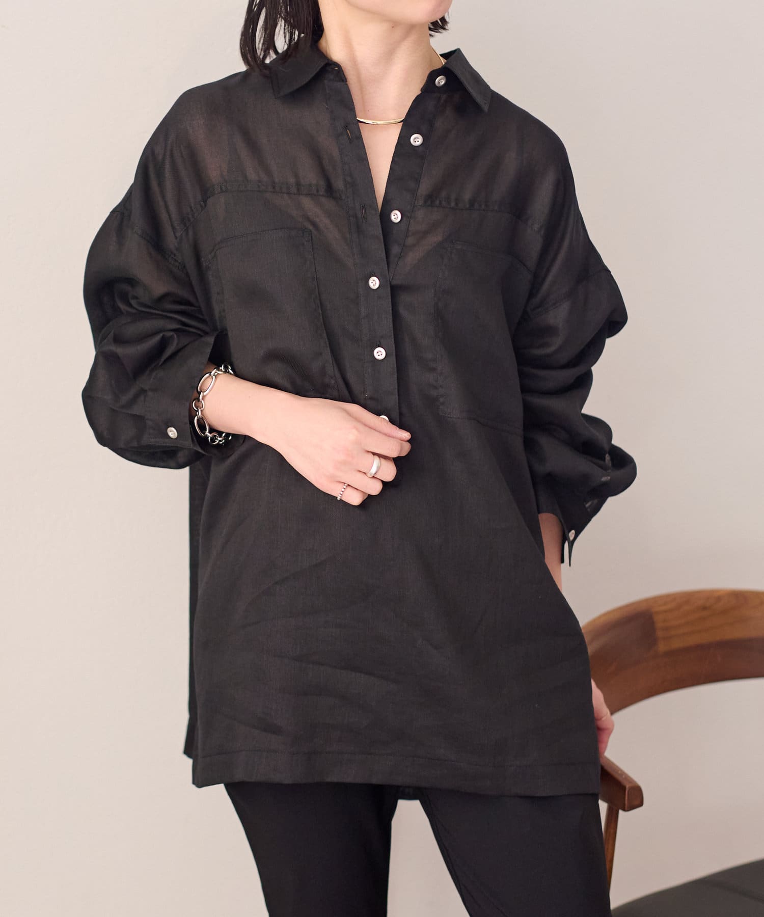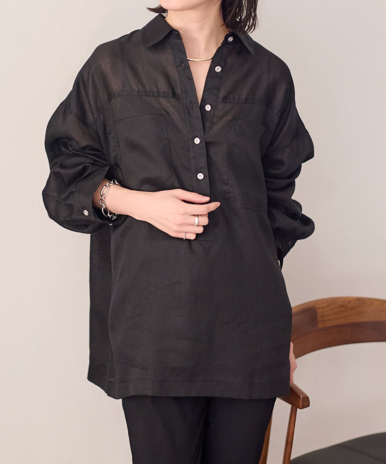 【さらっとした着心地】シアーリネンスキッパーシャツ