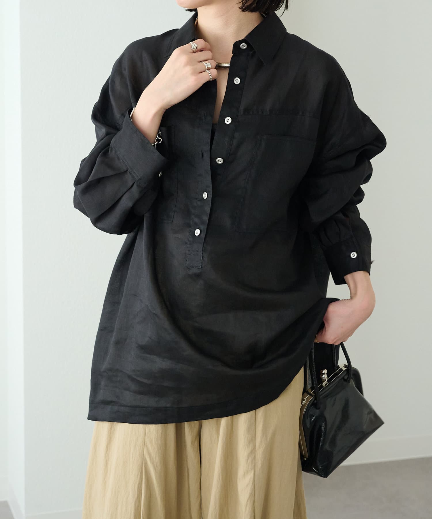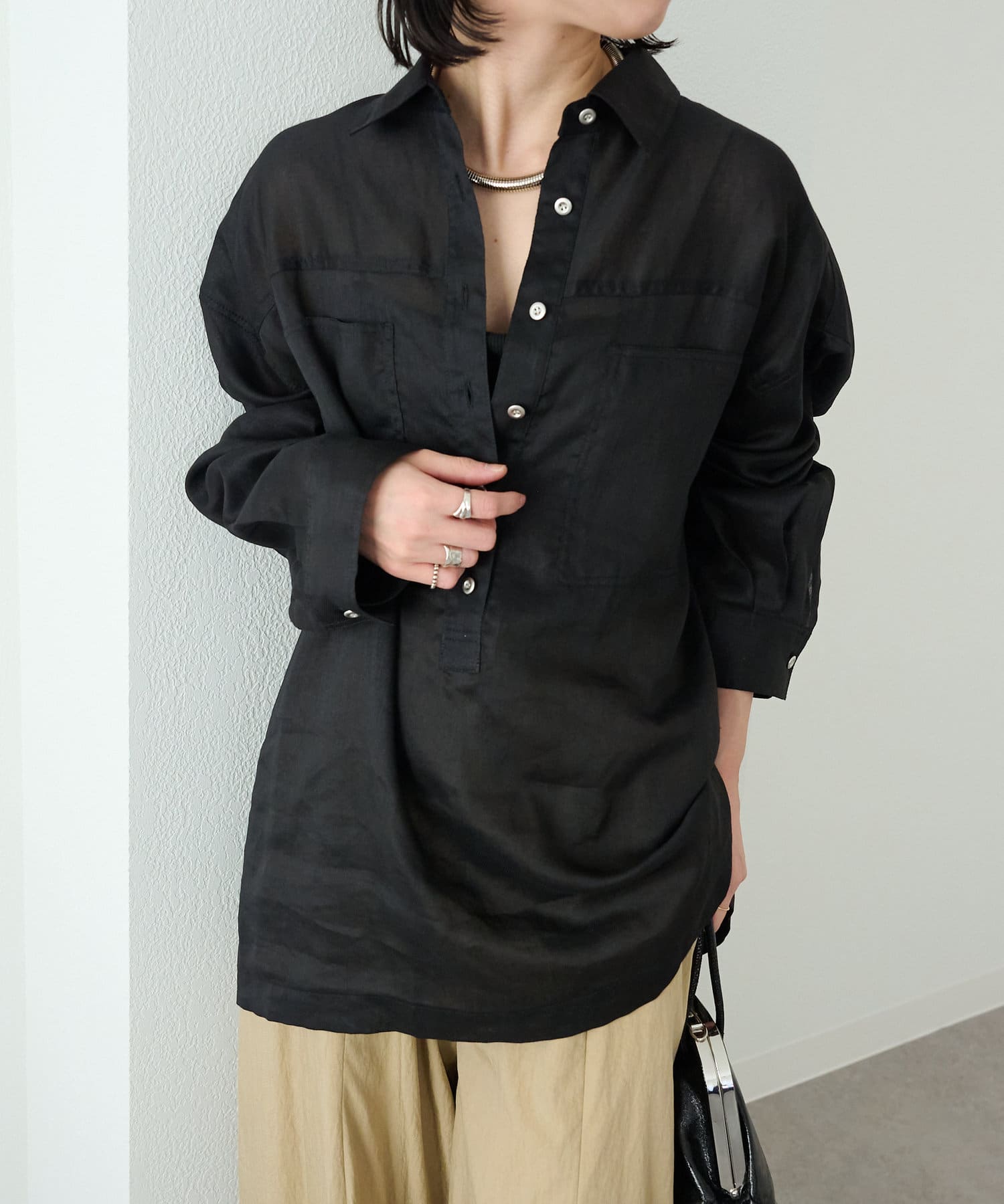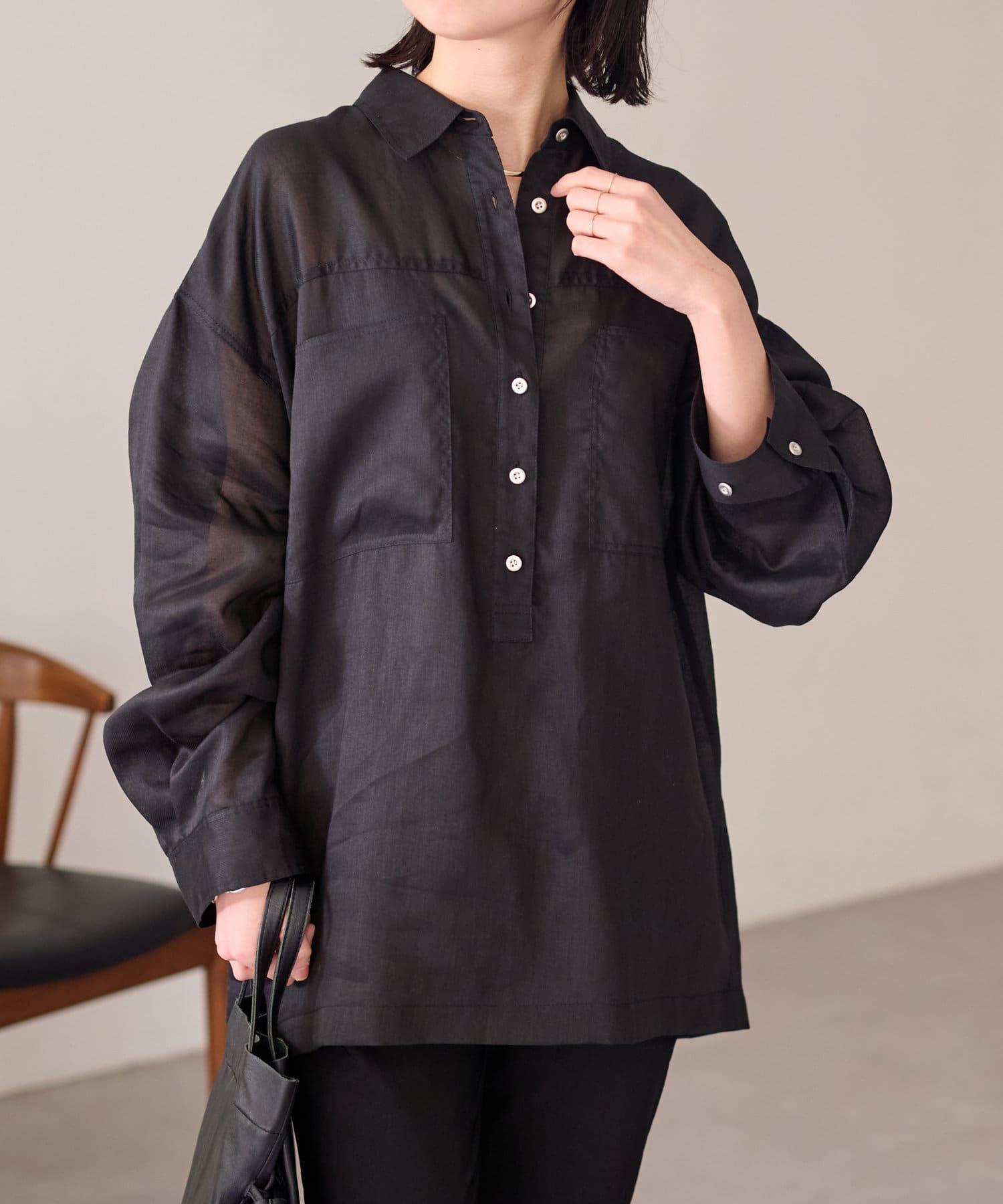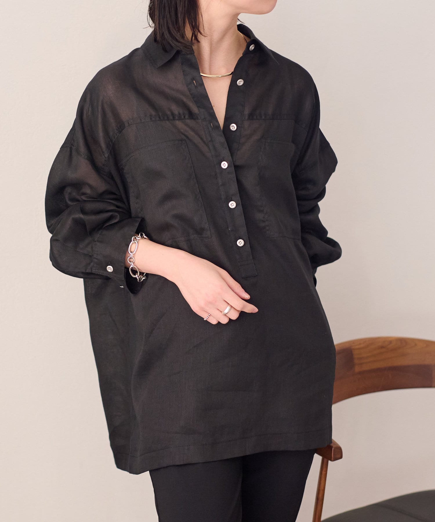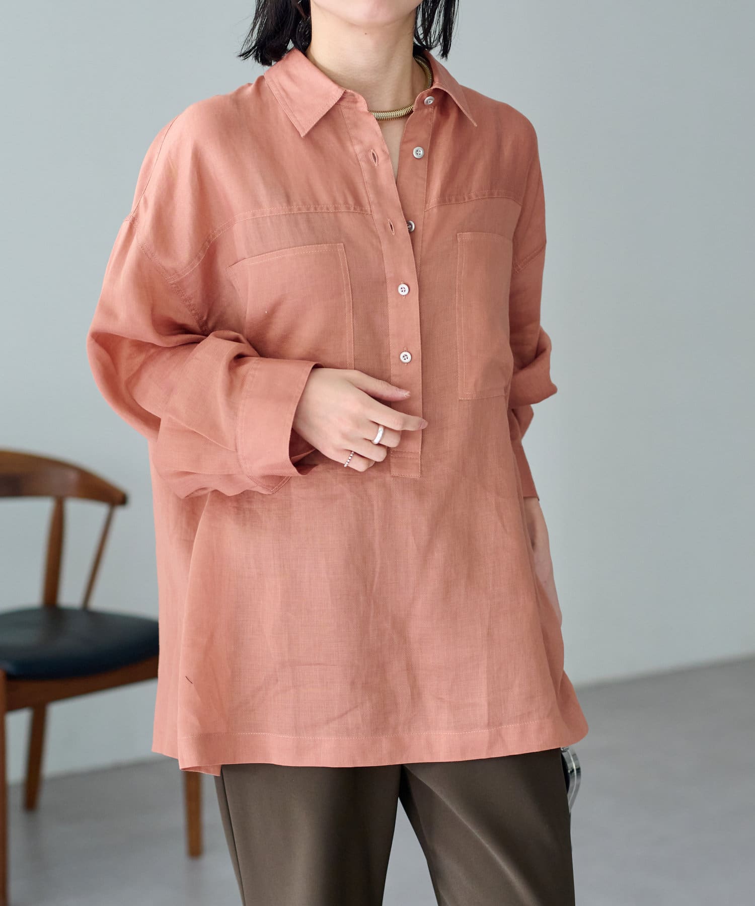 【さらっとした着心地】シアーリネンスキッパーシャツ