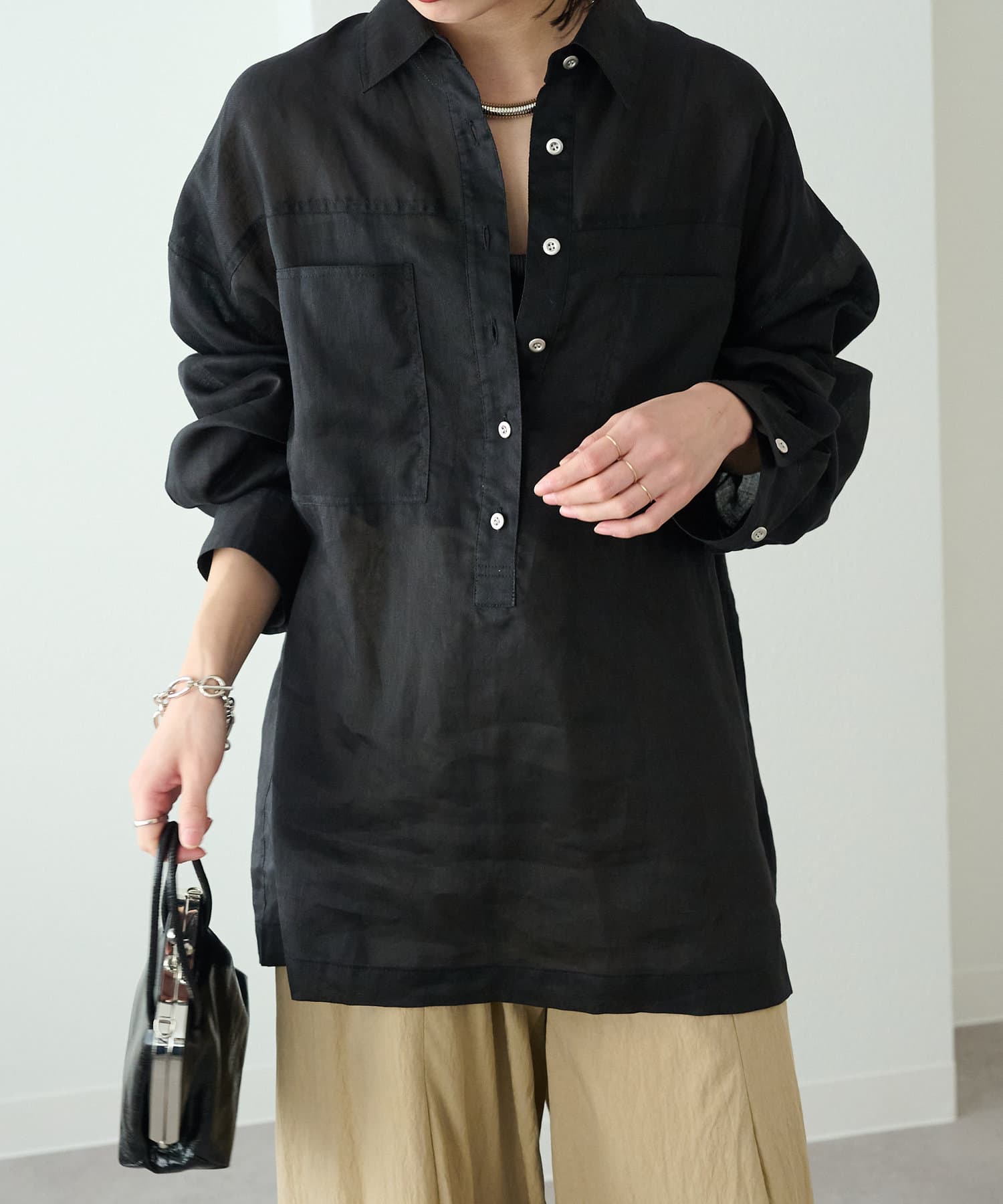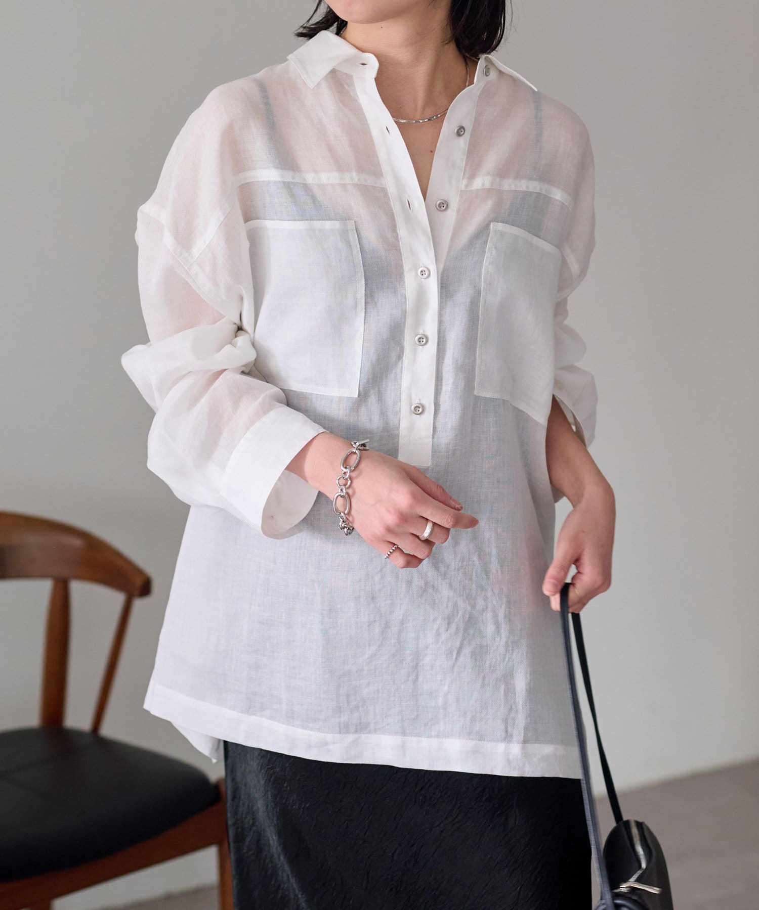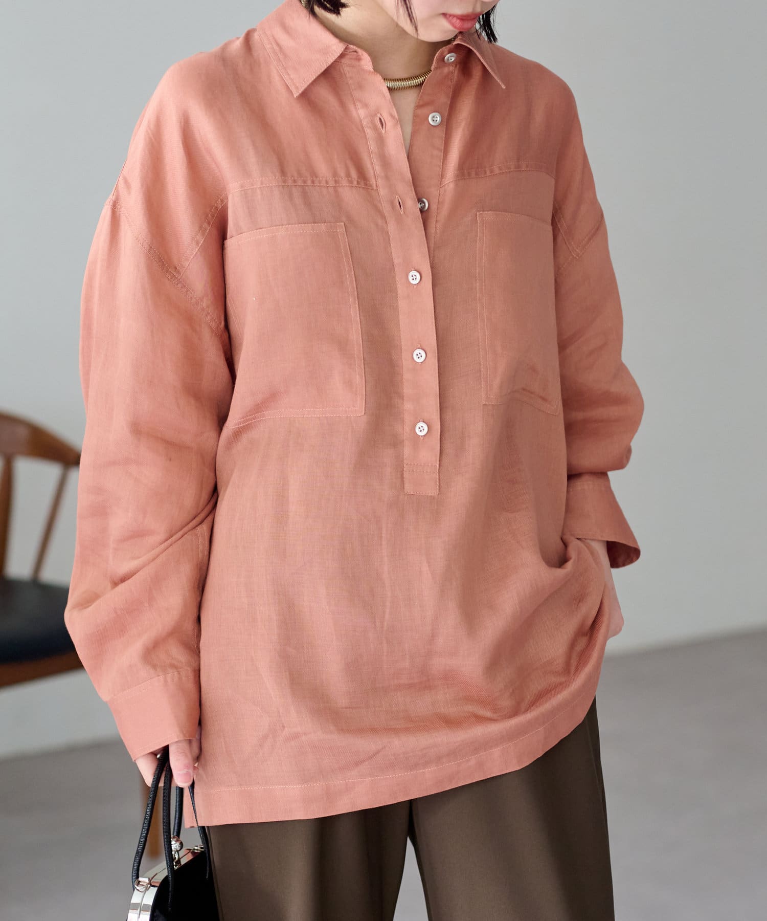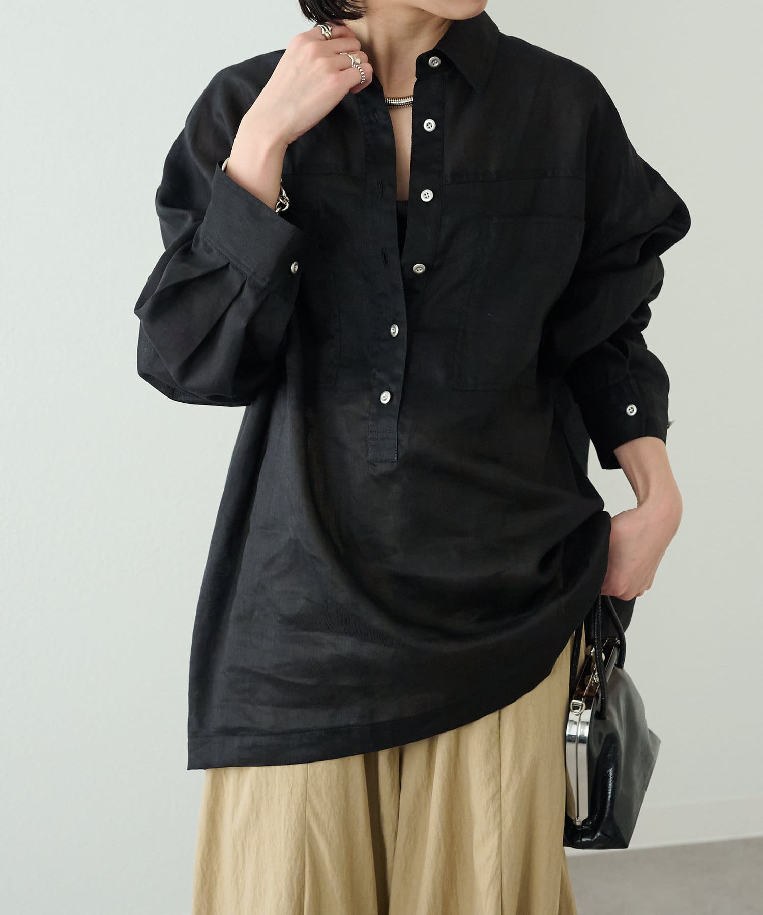 【さらっとした着心地】シアーリネンスキッパーシャツ