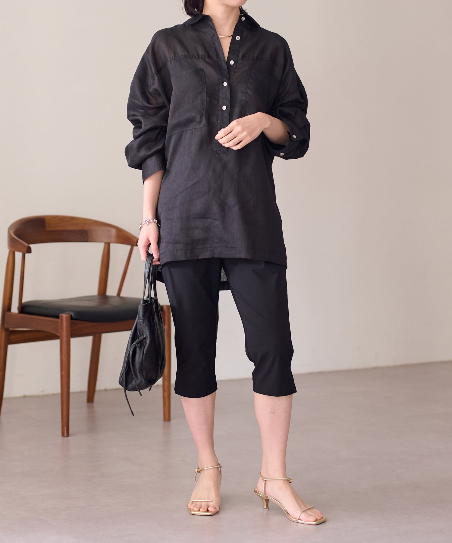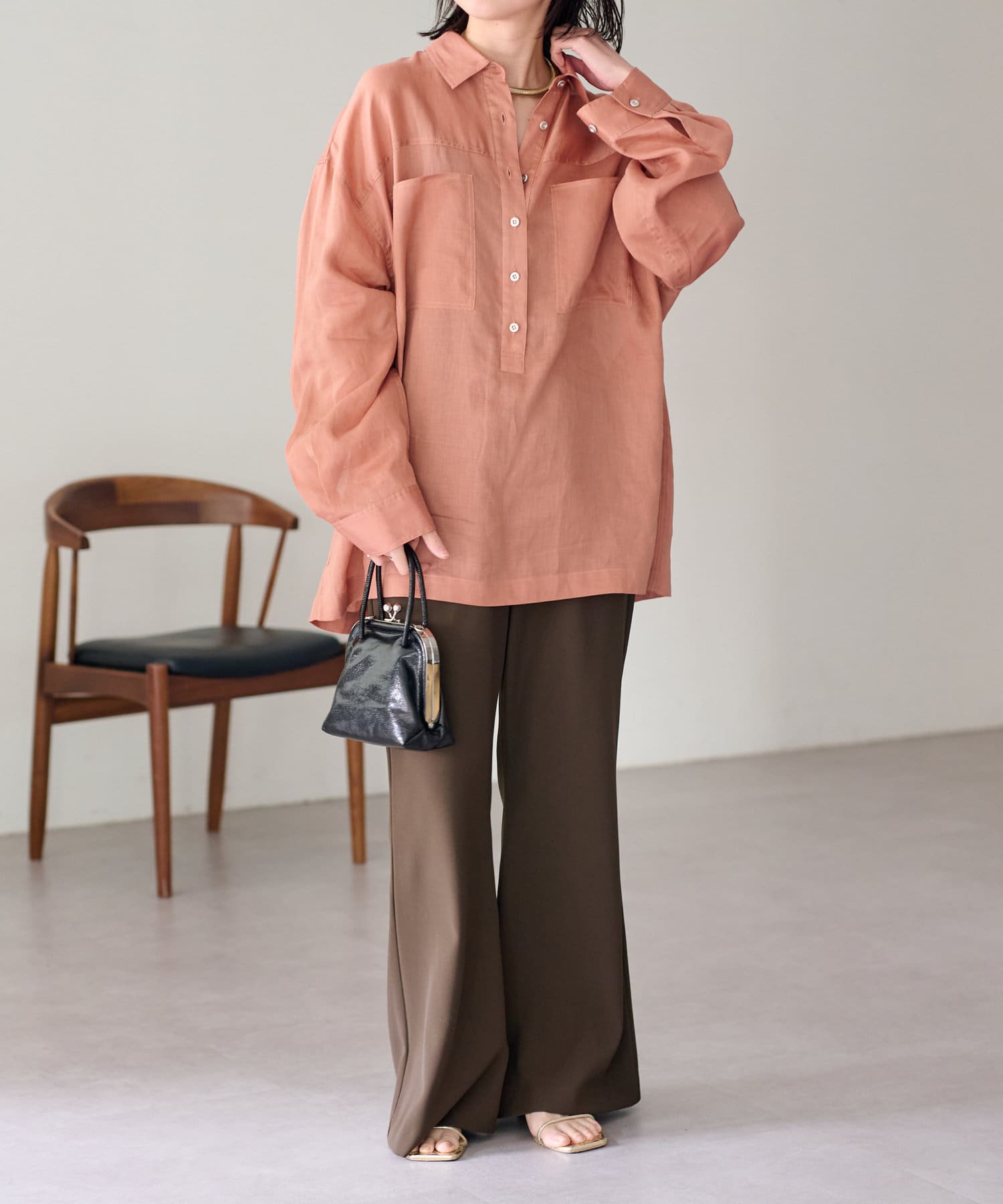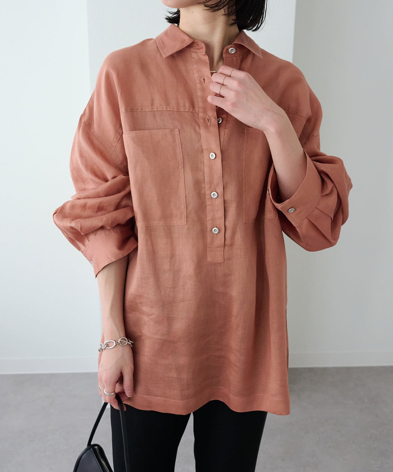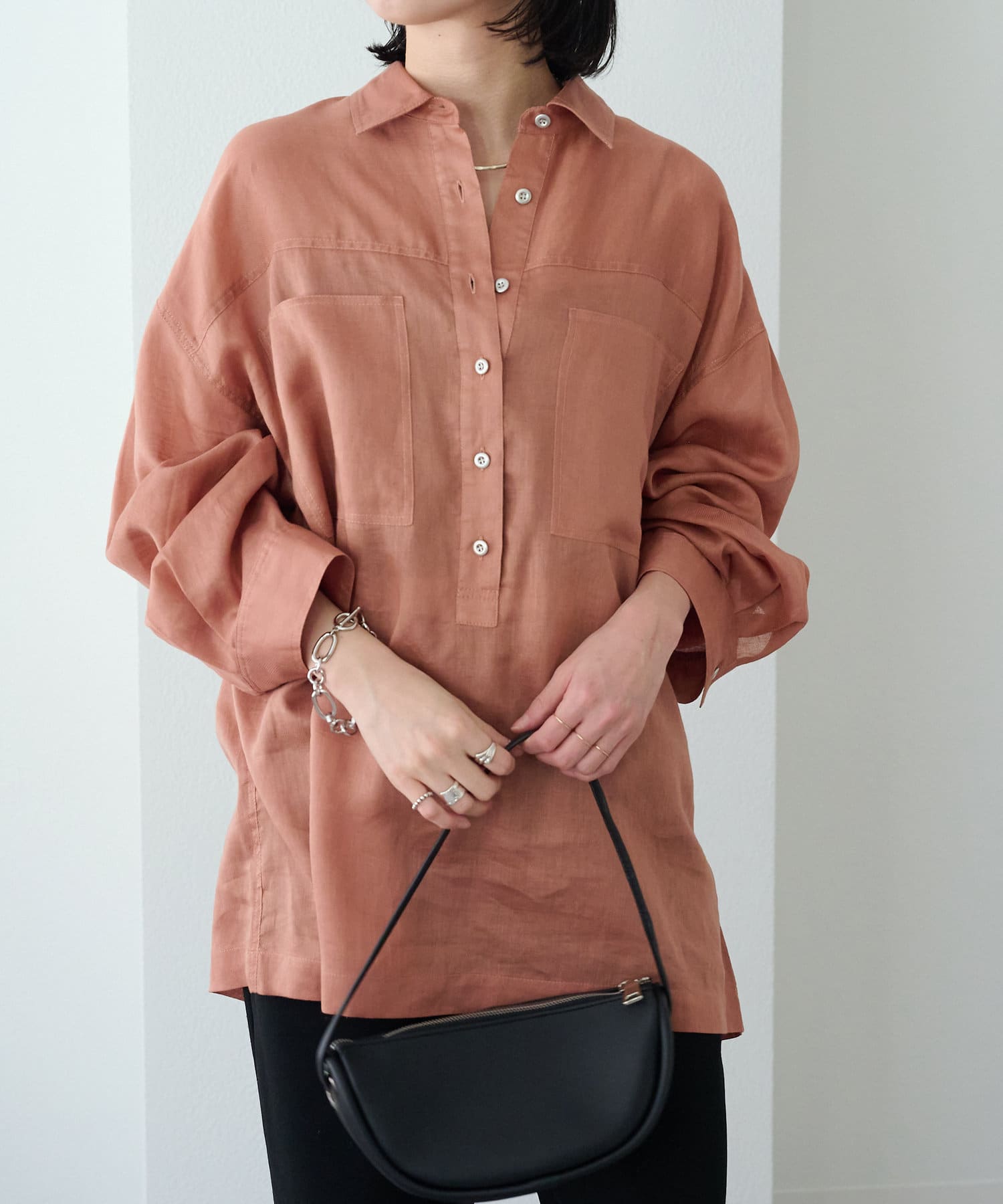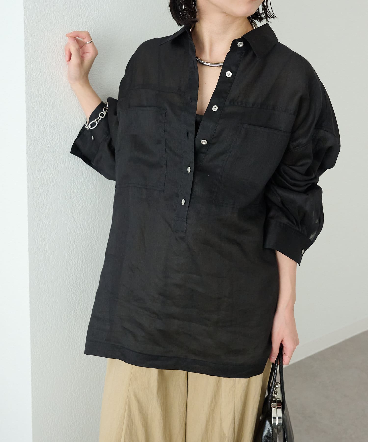 【さらっとした着心地】シアーリネンスキッパーシャツ