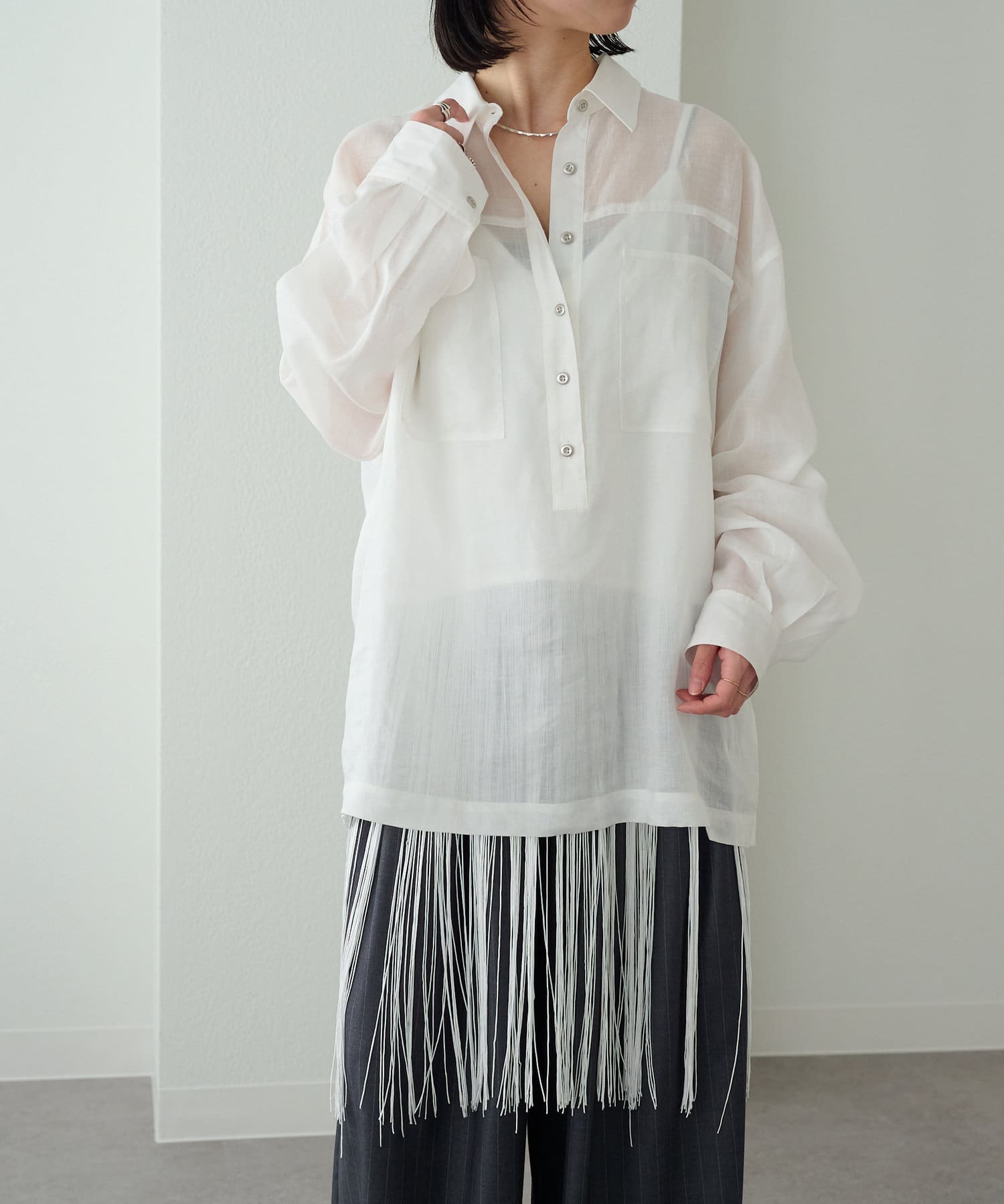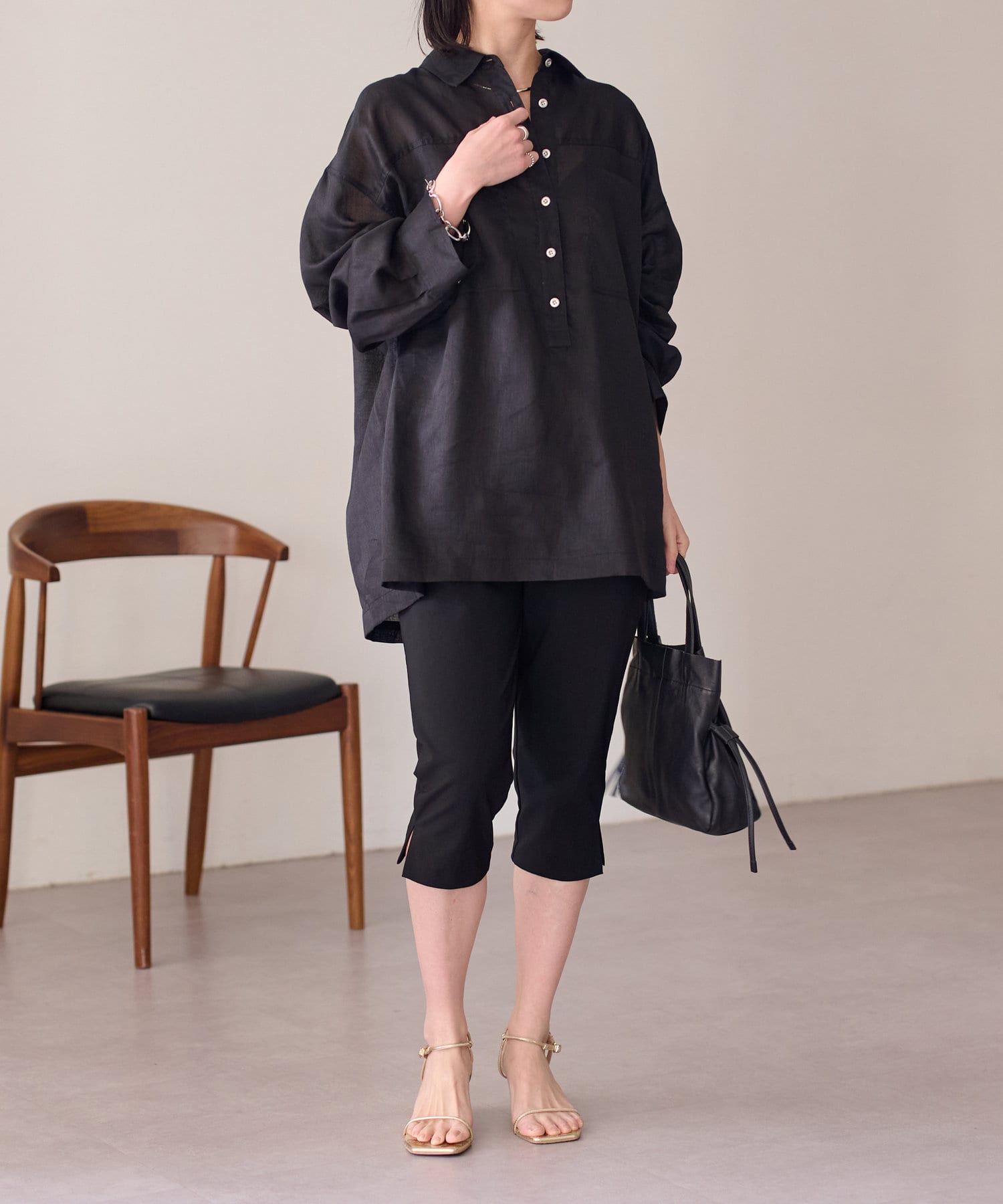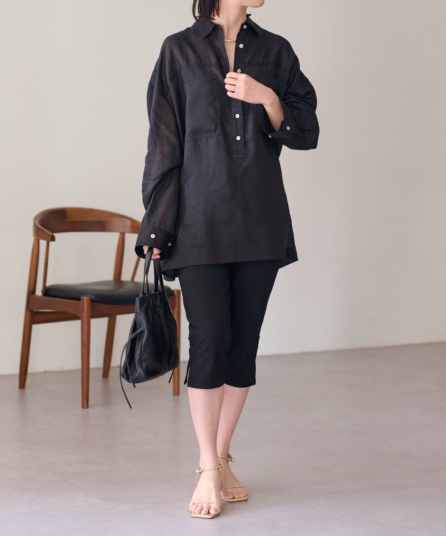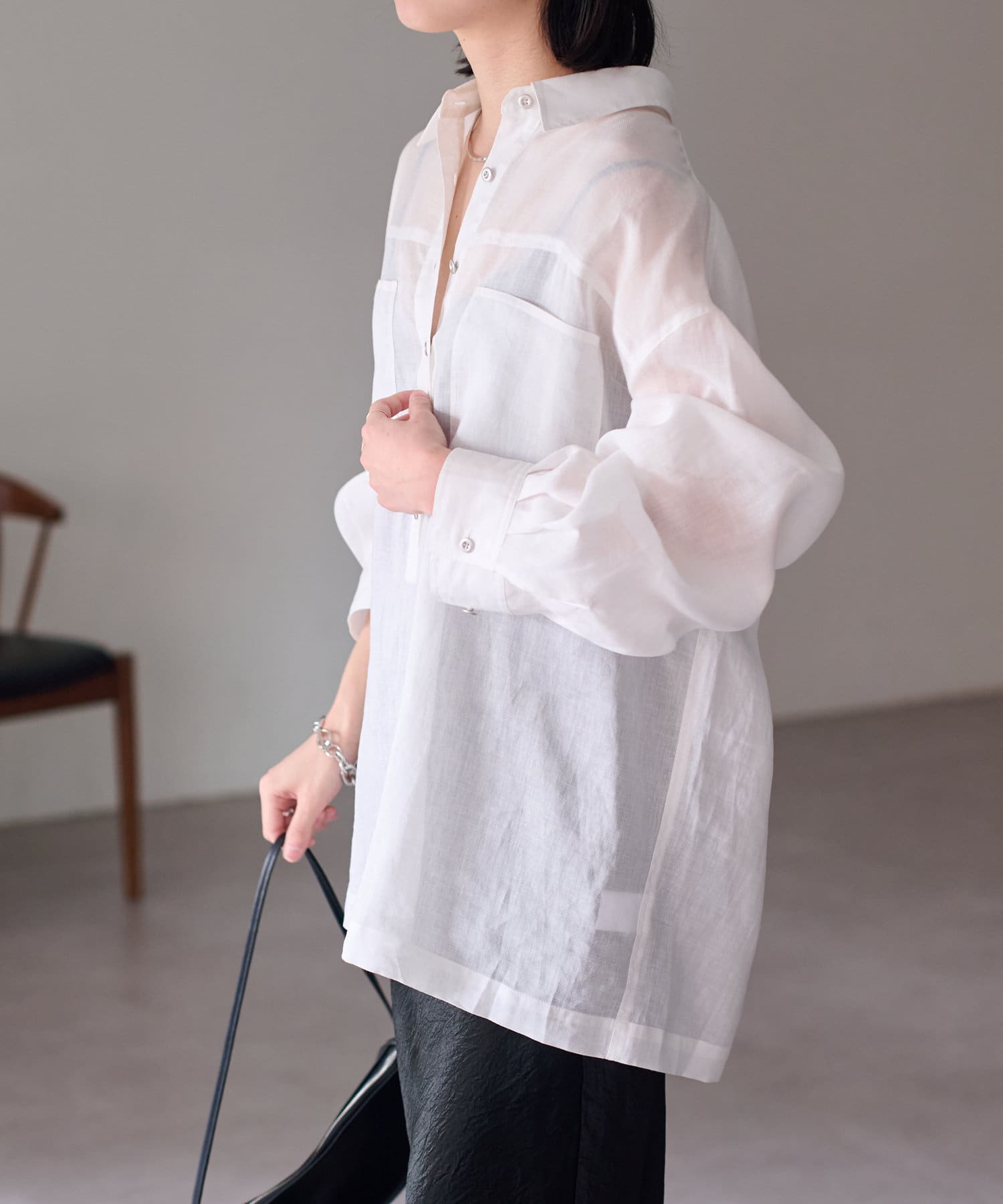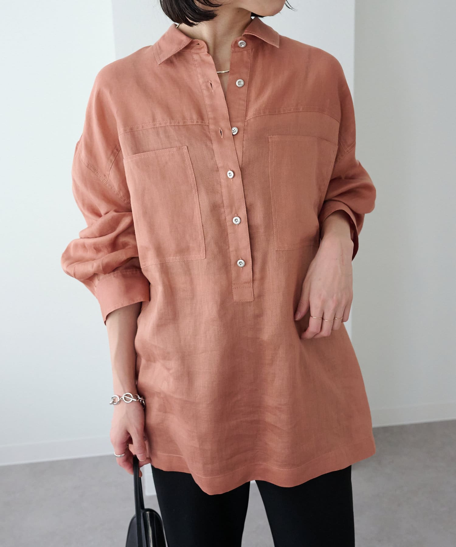 【さらっとした着心地】シアーリネンスキッパーシャツ