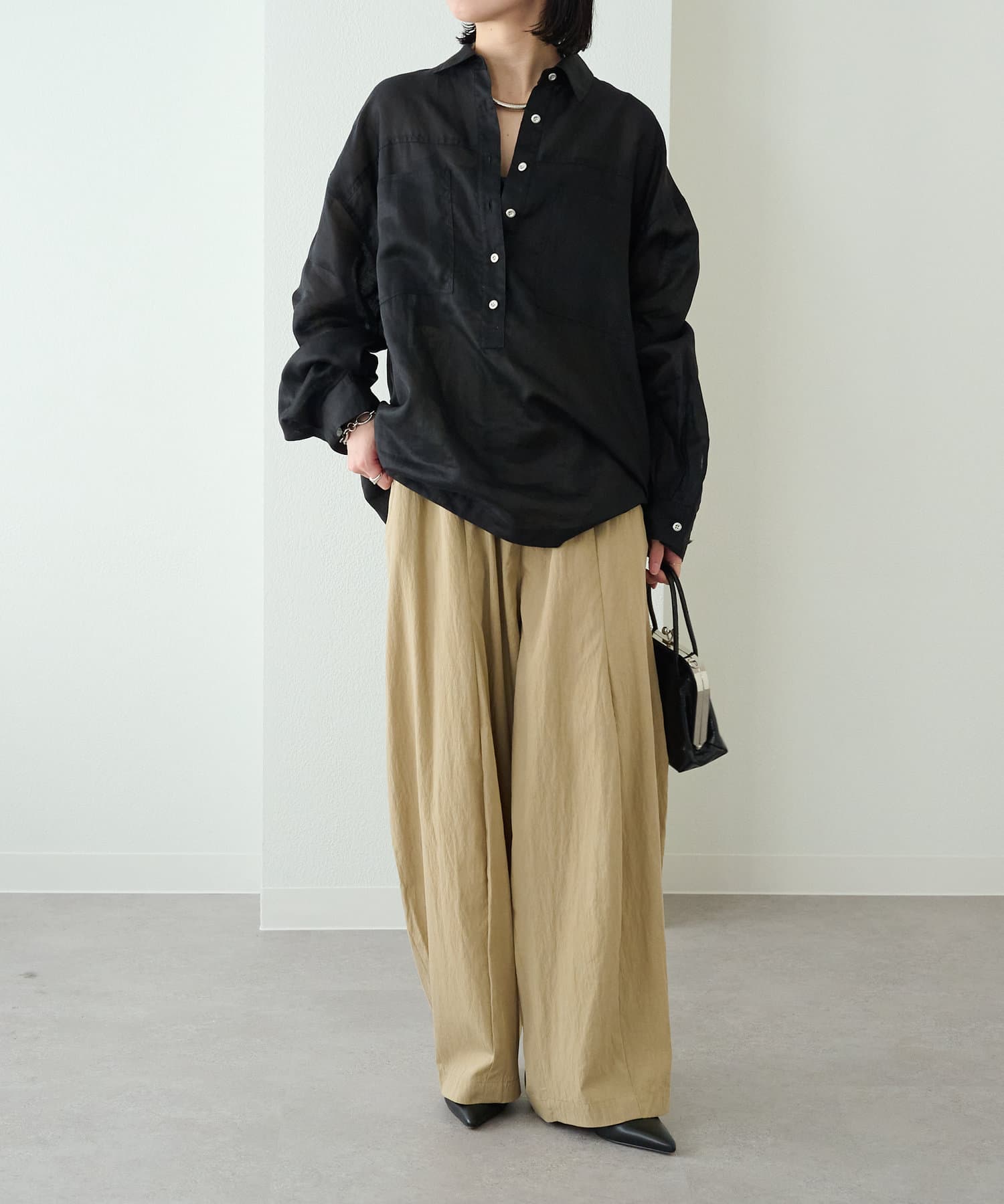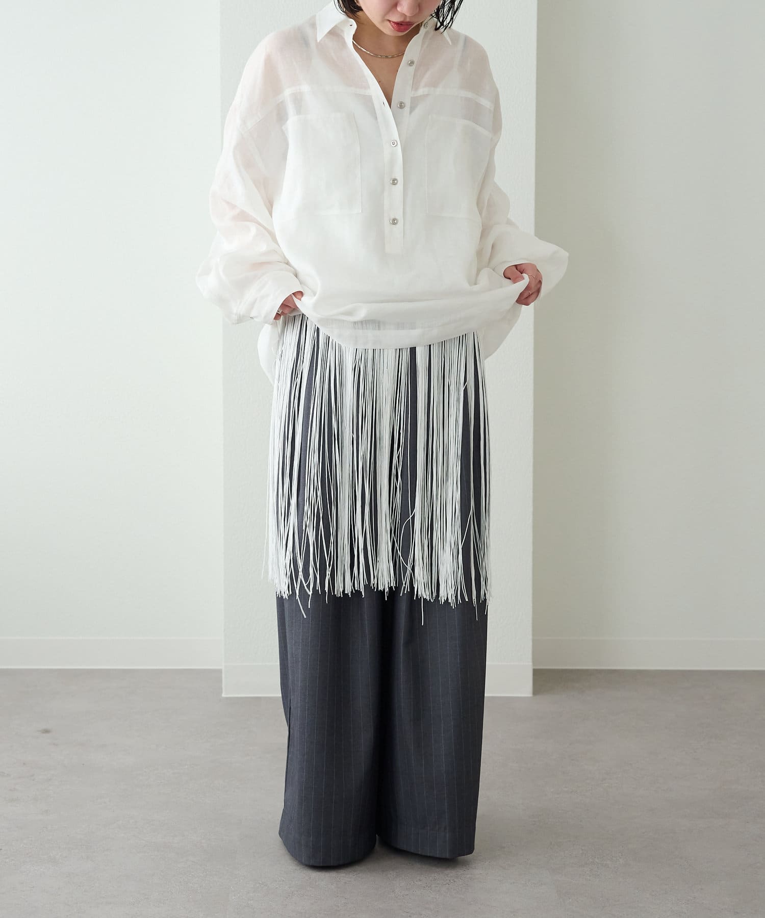・ゆったりとしたルーズなサイズ感は、キャミチュニックなどのレイヤードアイテムとも相性抜群です◎