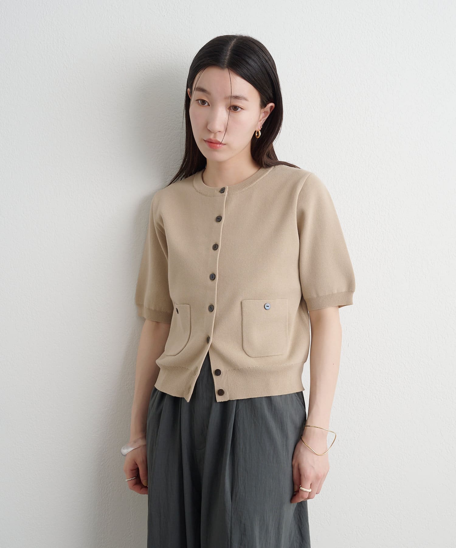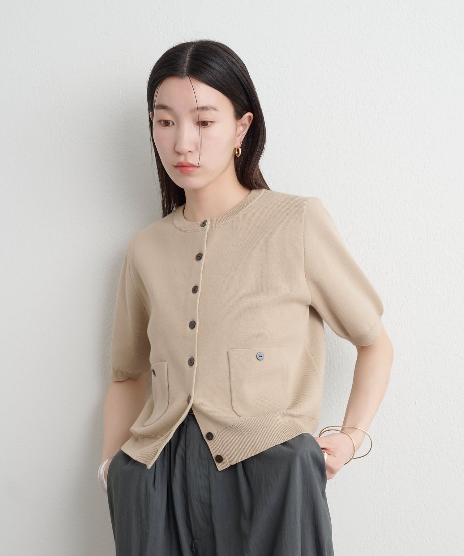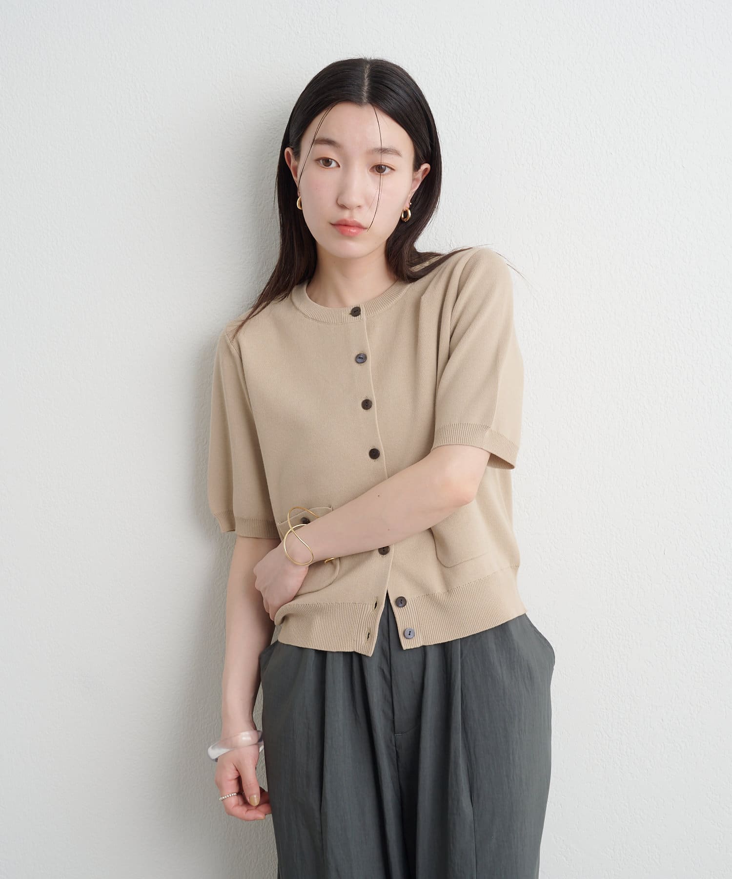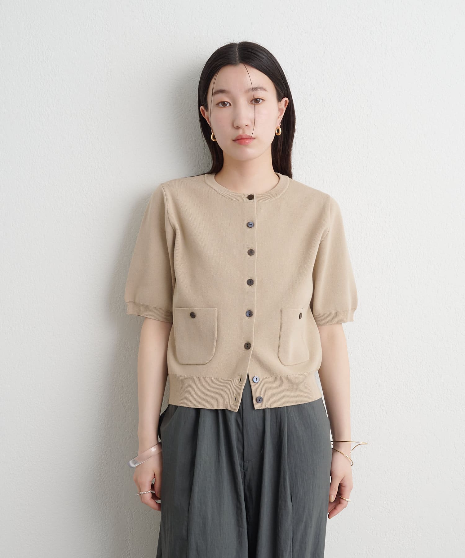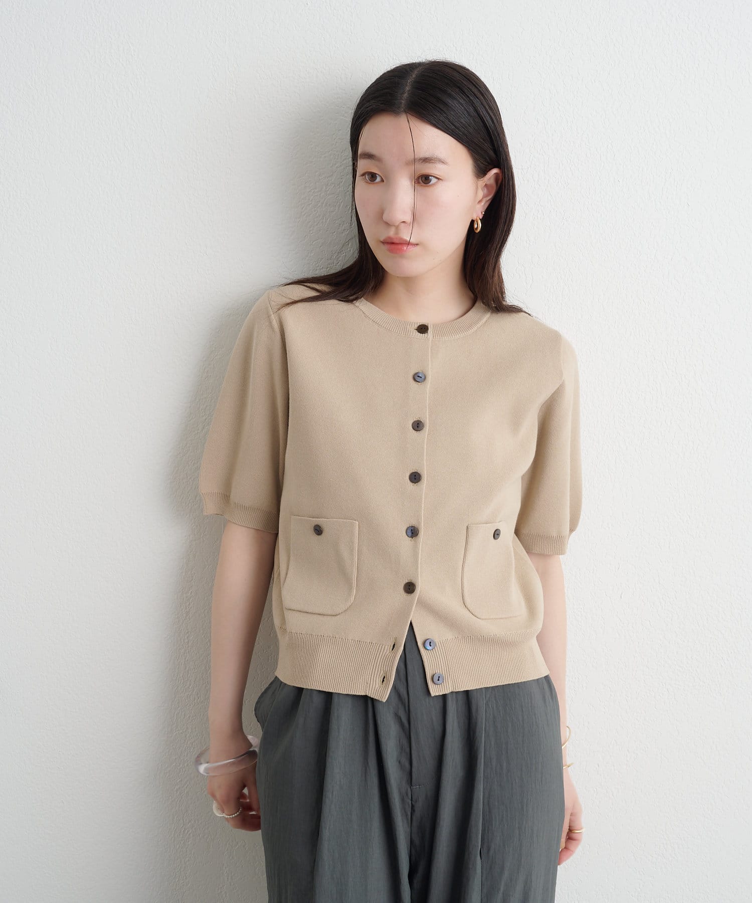 【新色追加/ベージュ】【Omekashi名品/ロングセラー◎】半袖強撚スウェットライクポケットカーディガン