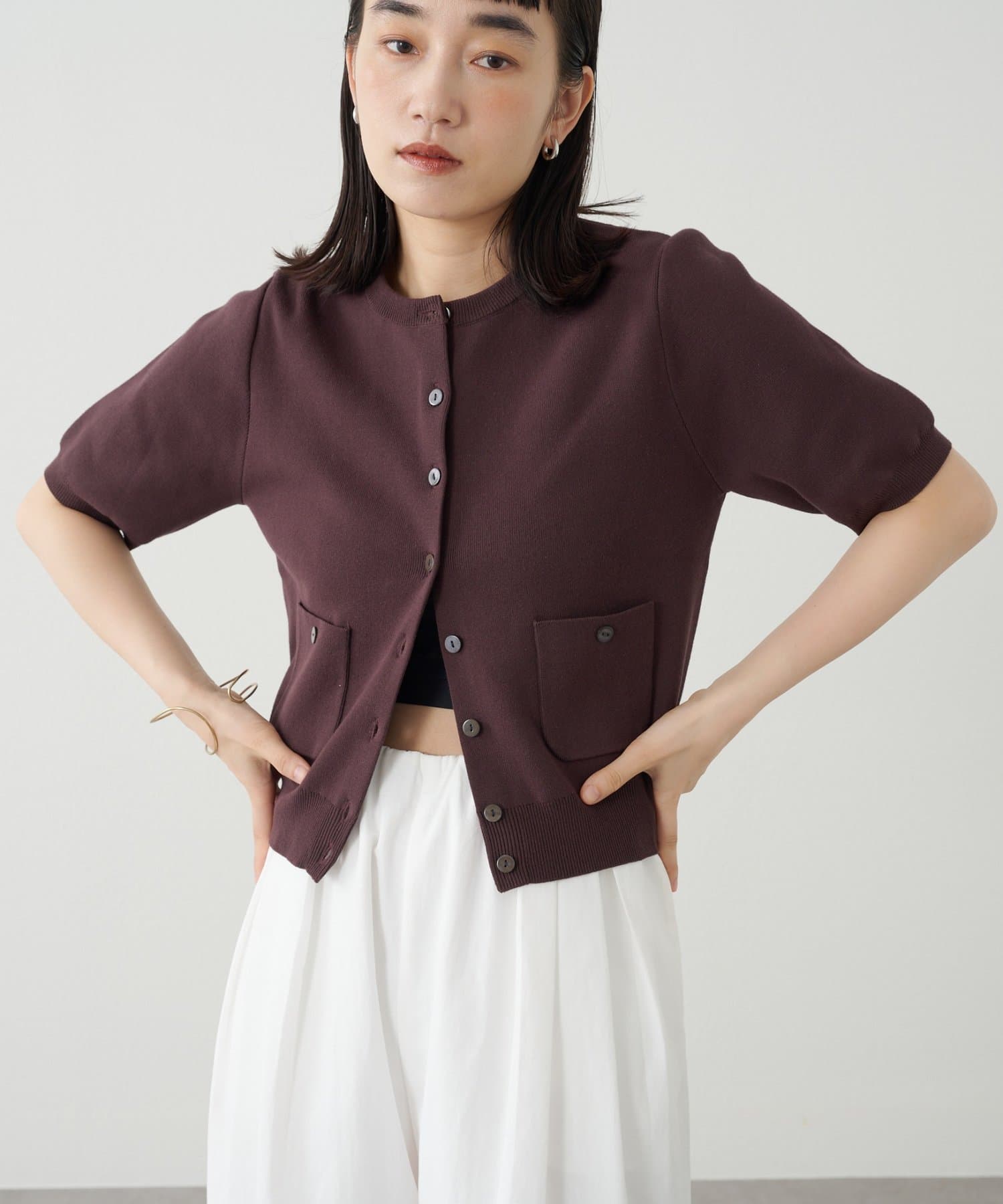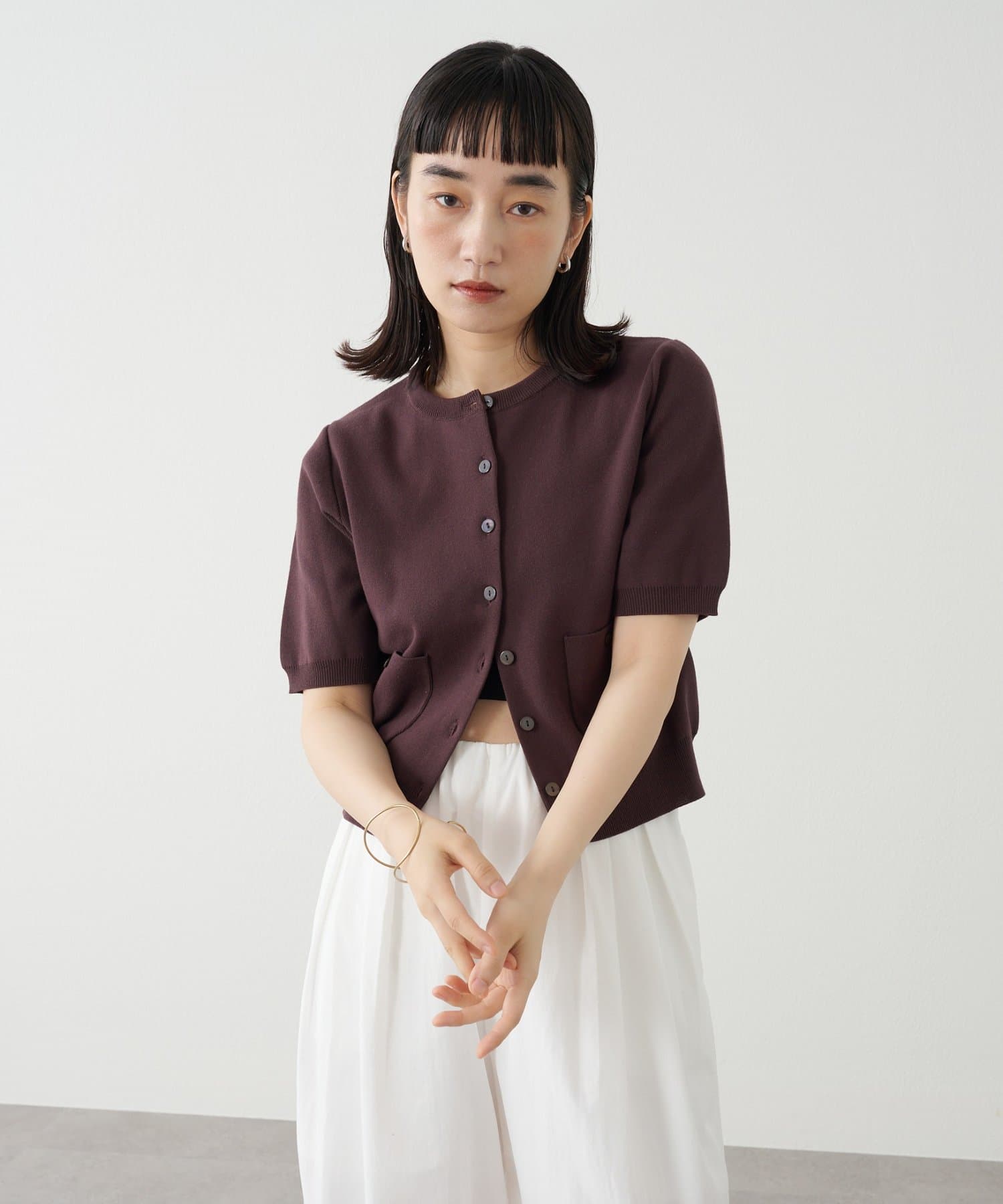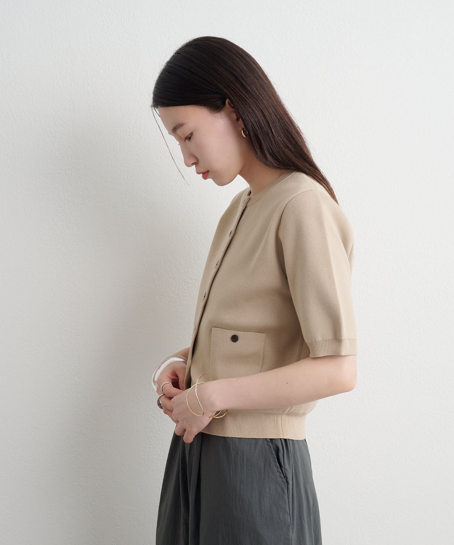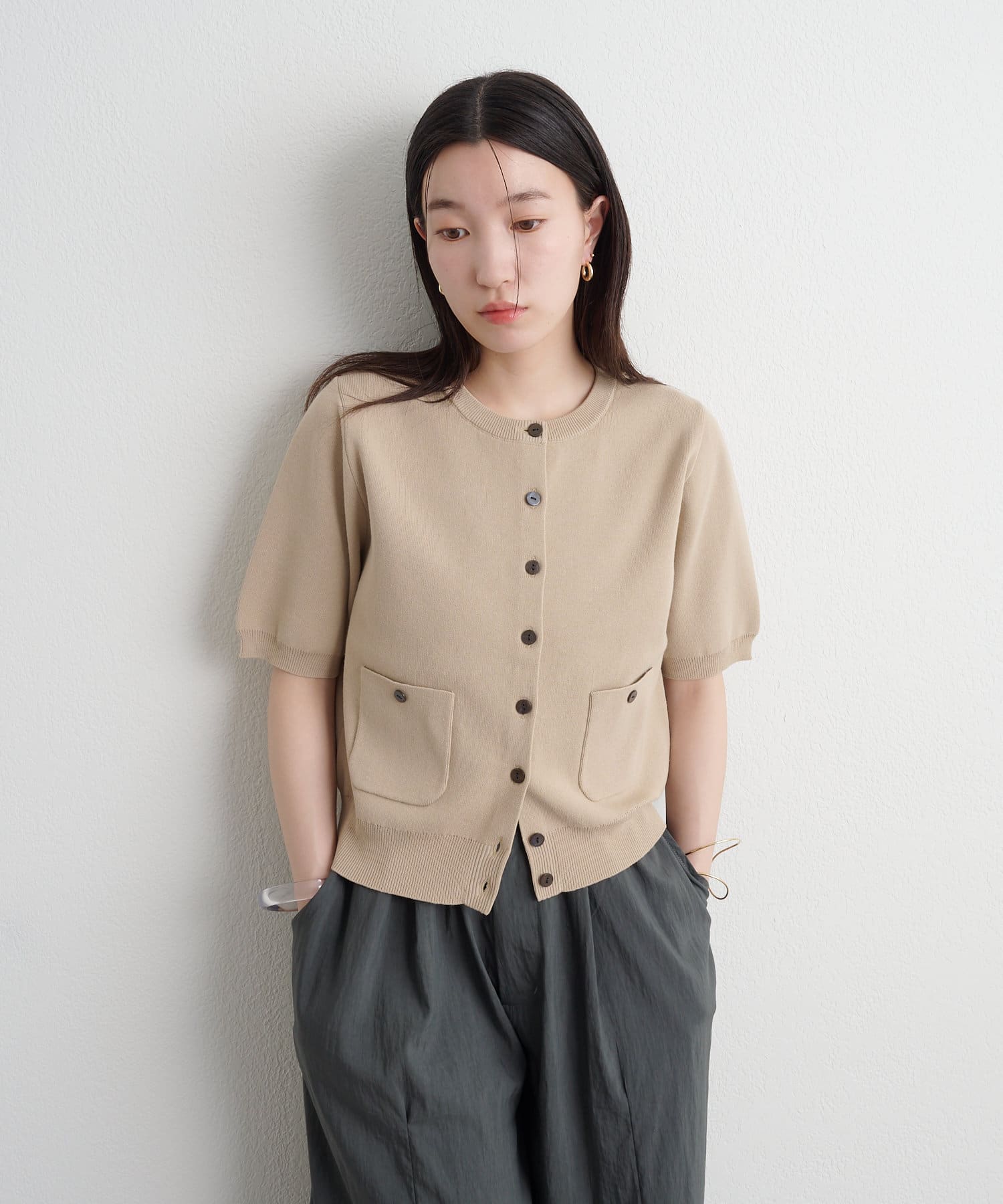 【新色追加/ベージュ】【Omekashi名品/ロングセラー◎】半袖強撚スウェットライクポケットカーディガン