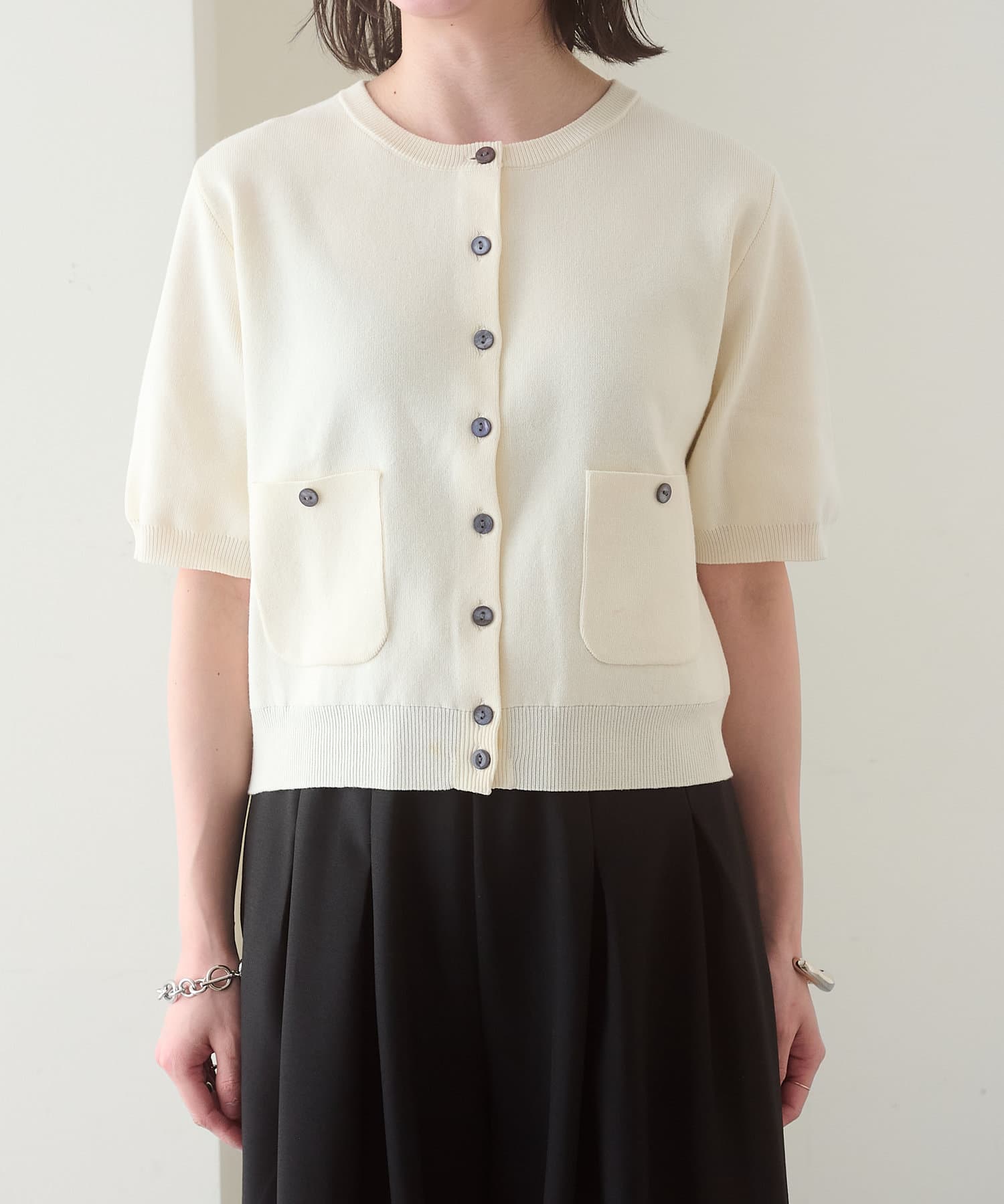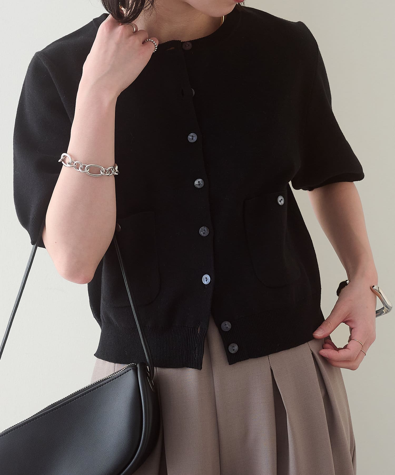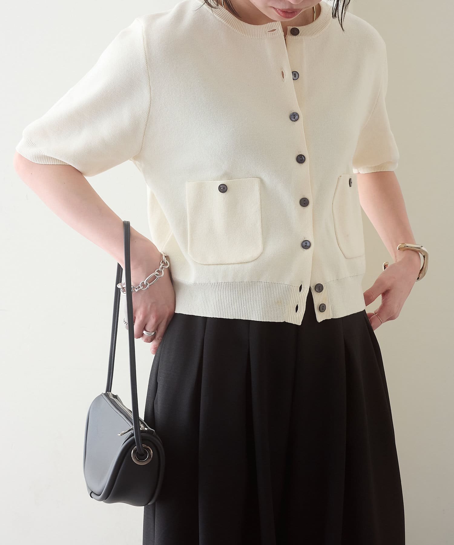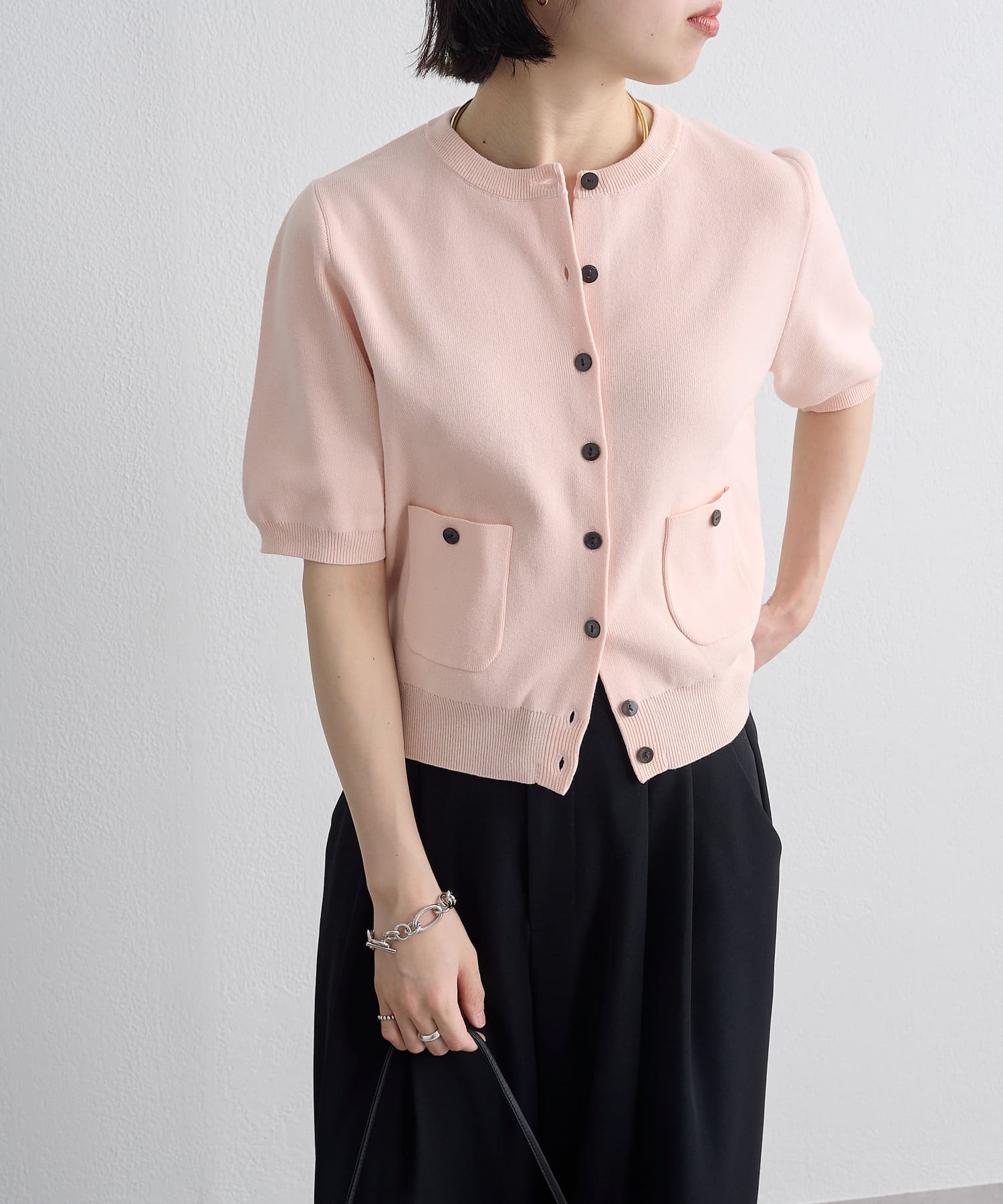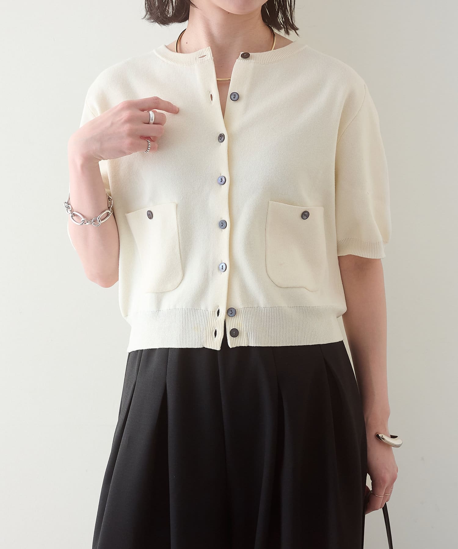【新色追加/ベージュ】【Omekashi名品/ロングセラー◎】半袖強撚スウェットライクポケットカーディガン