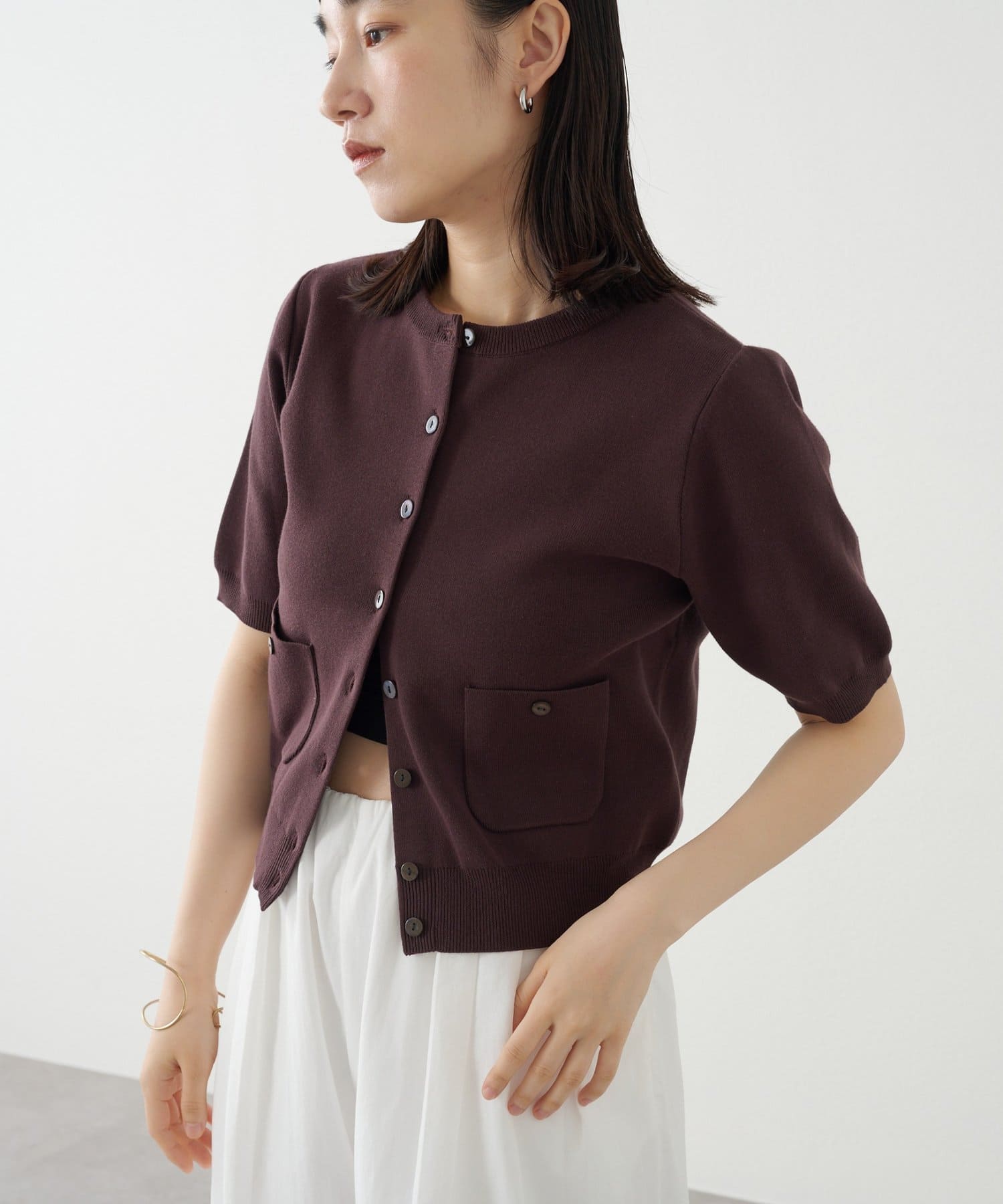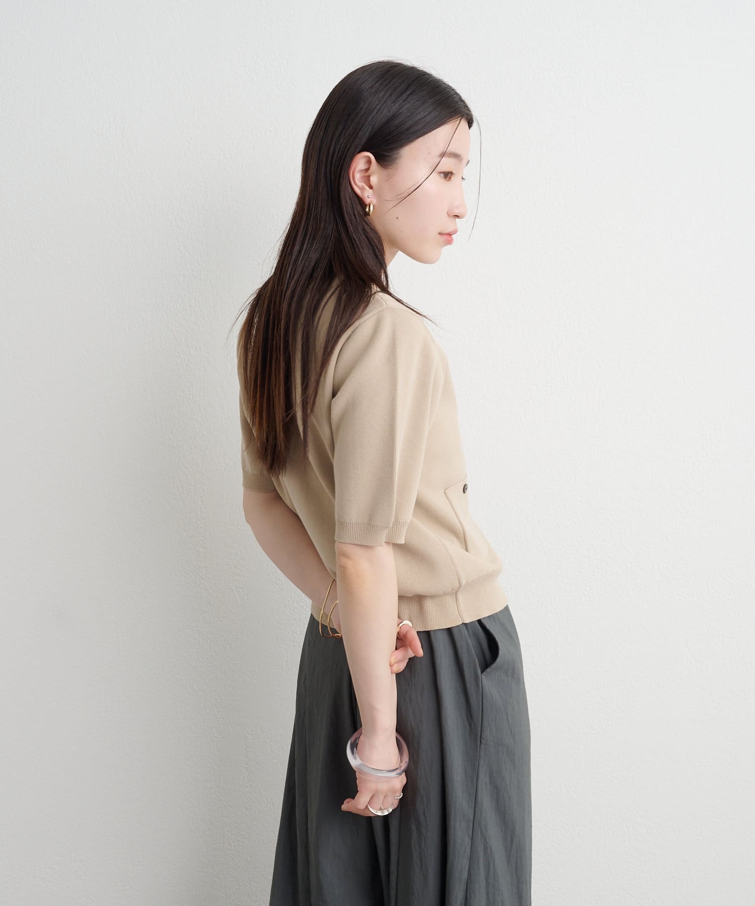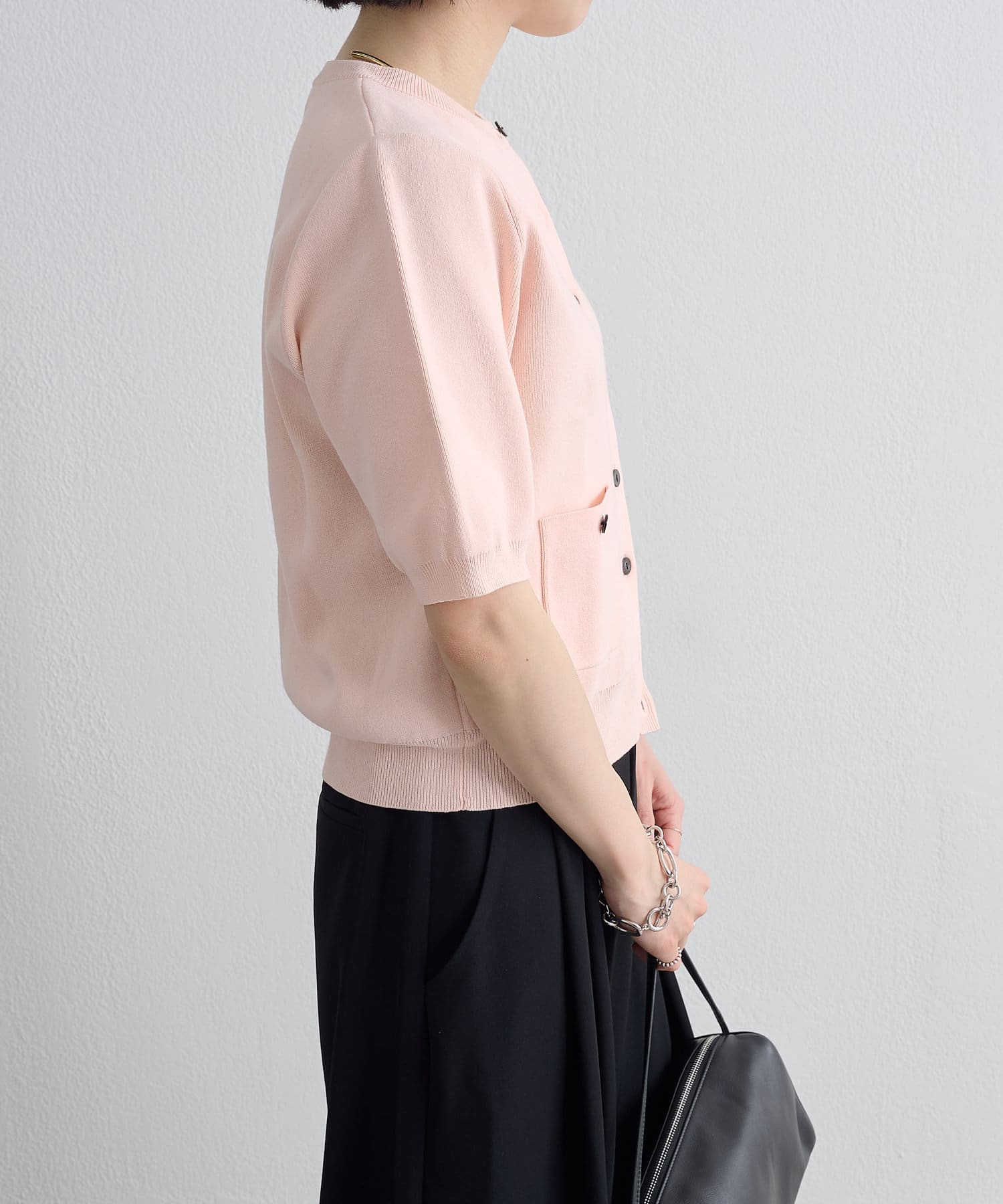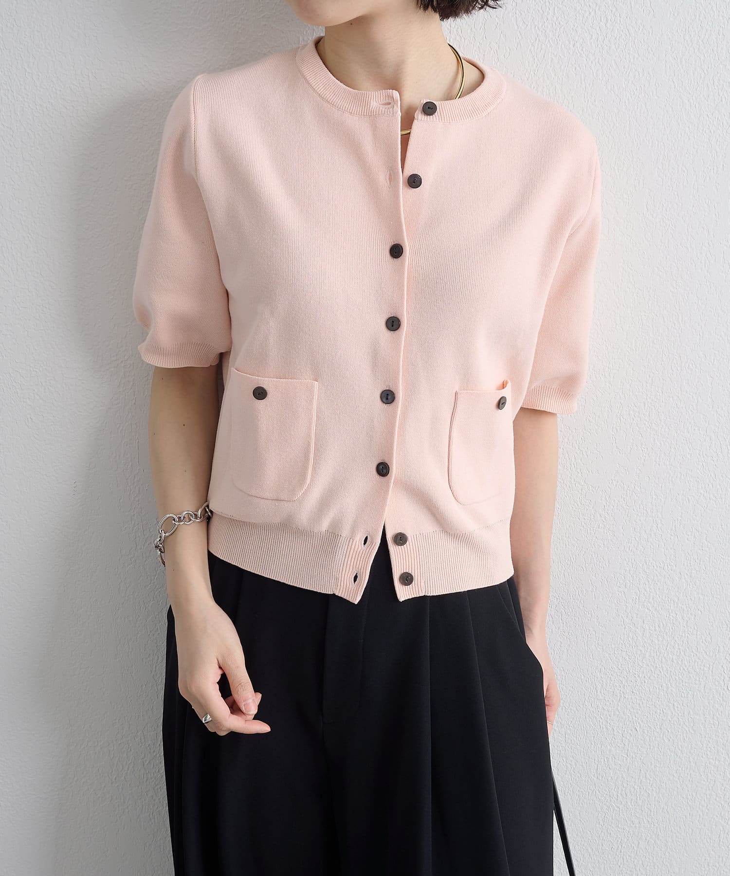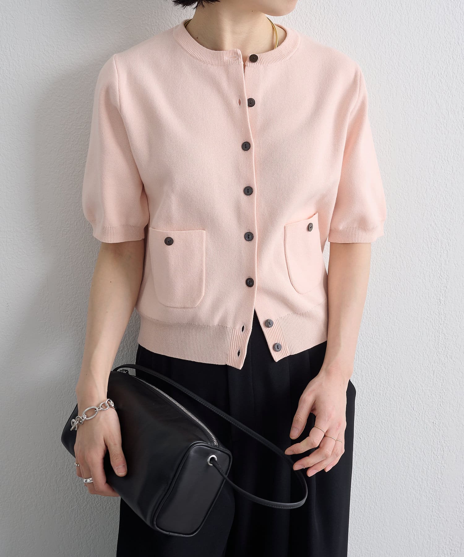 【新色追加/ベージュ】【Omekashi名品/ロングセラー◎】半袖強撚スウェットライクポケットカーディガン