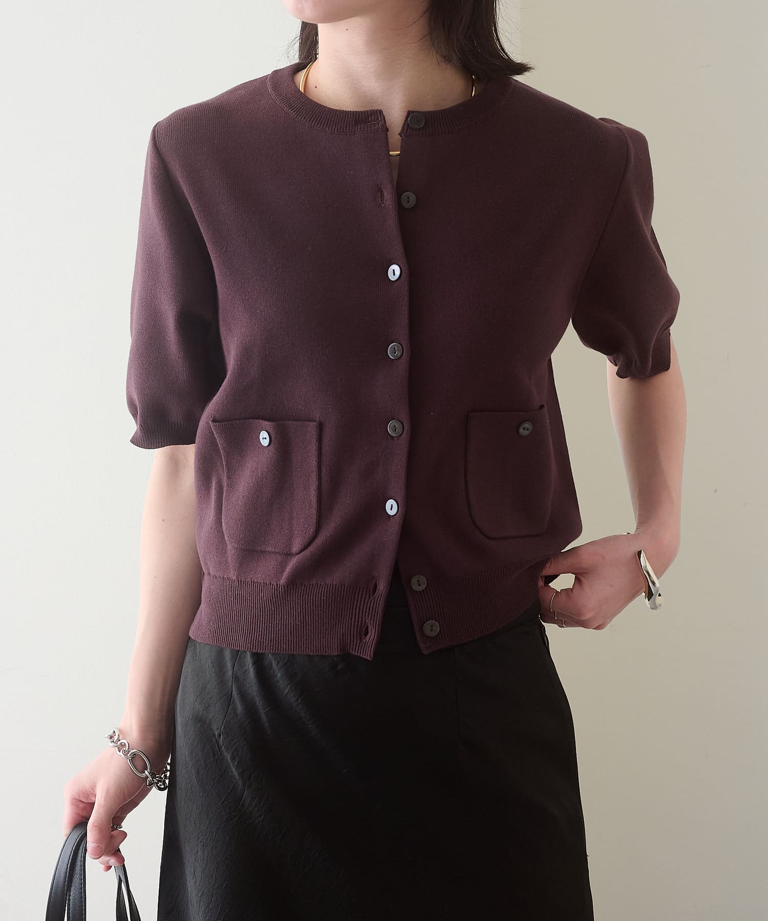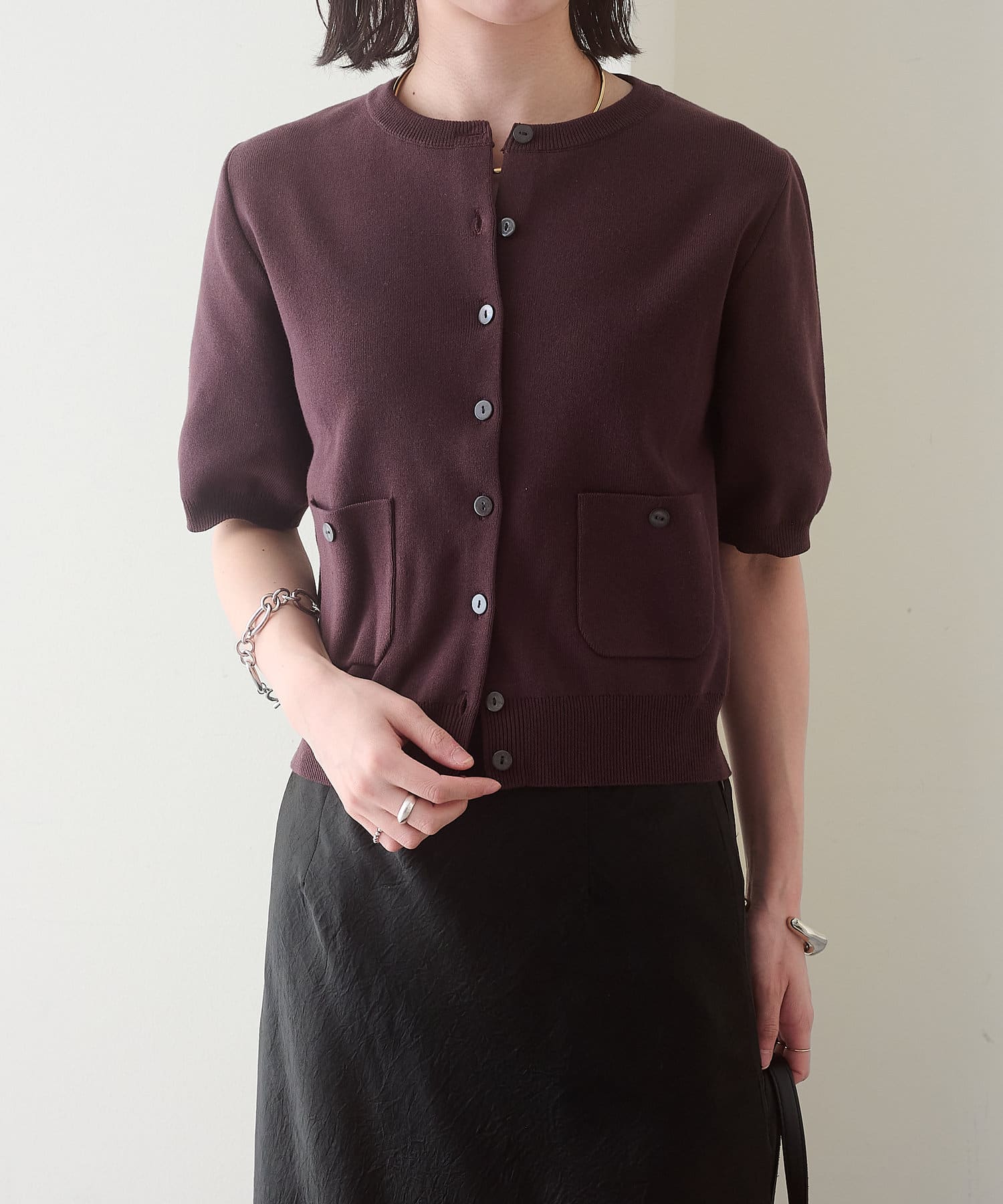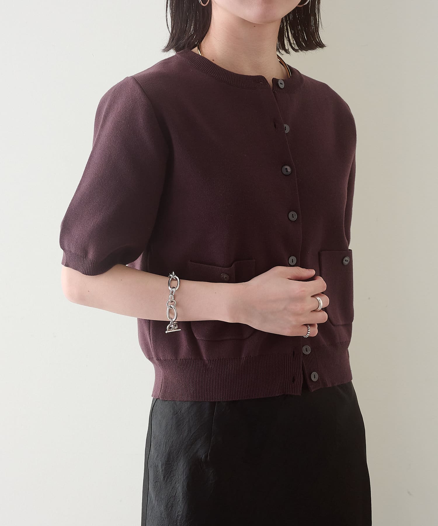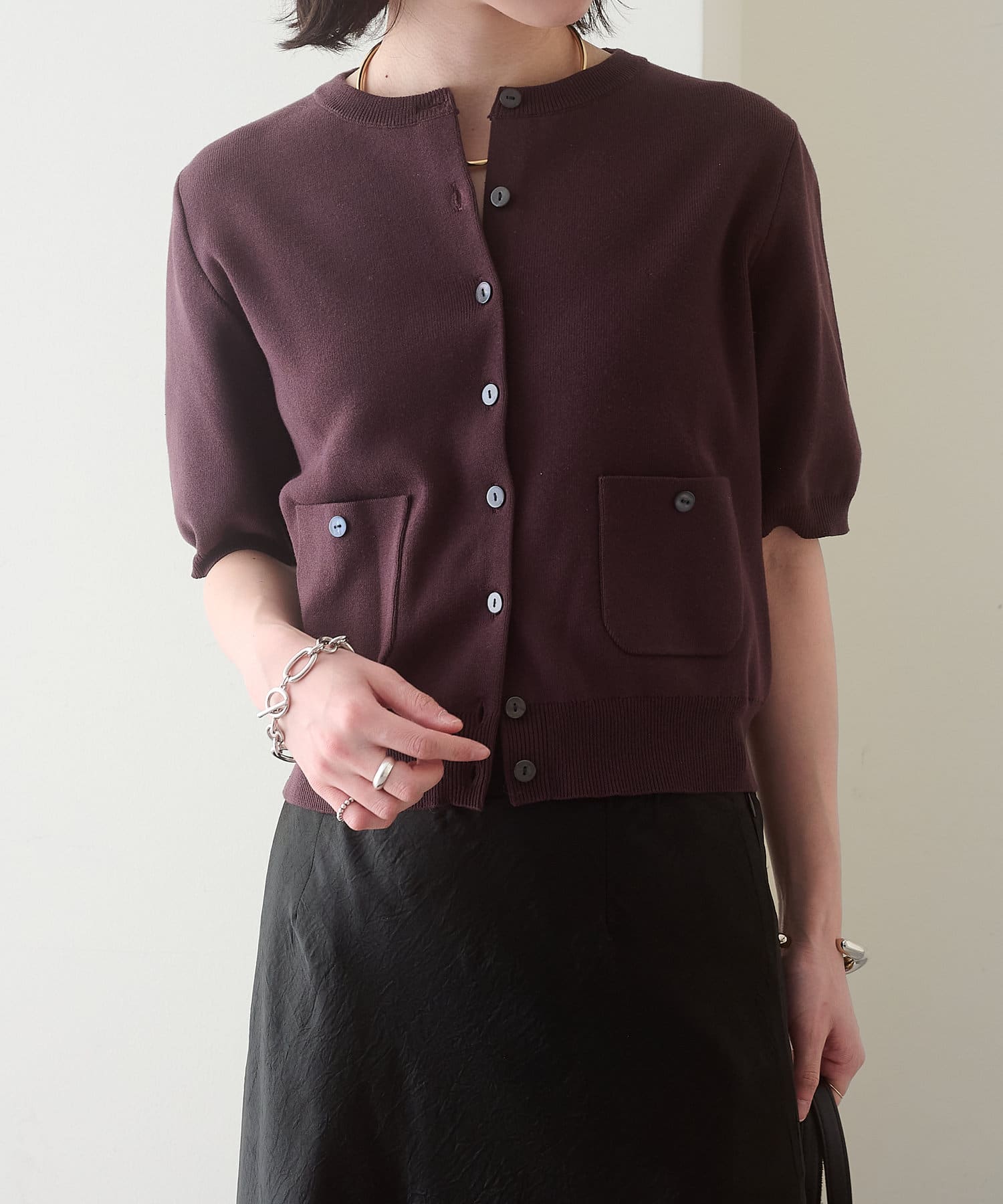 【新色追加/ベージュ】【Omekashi名品/ロングセラー◎】半袖強撚スウェットライクポケットカーディガン
