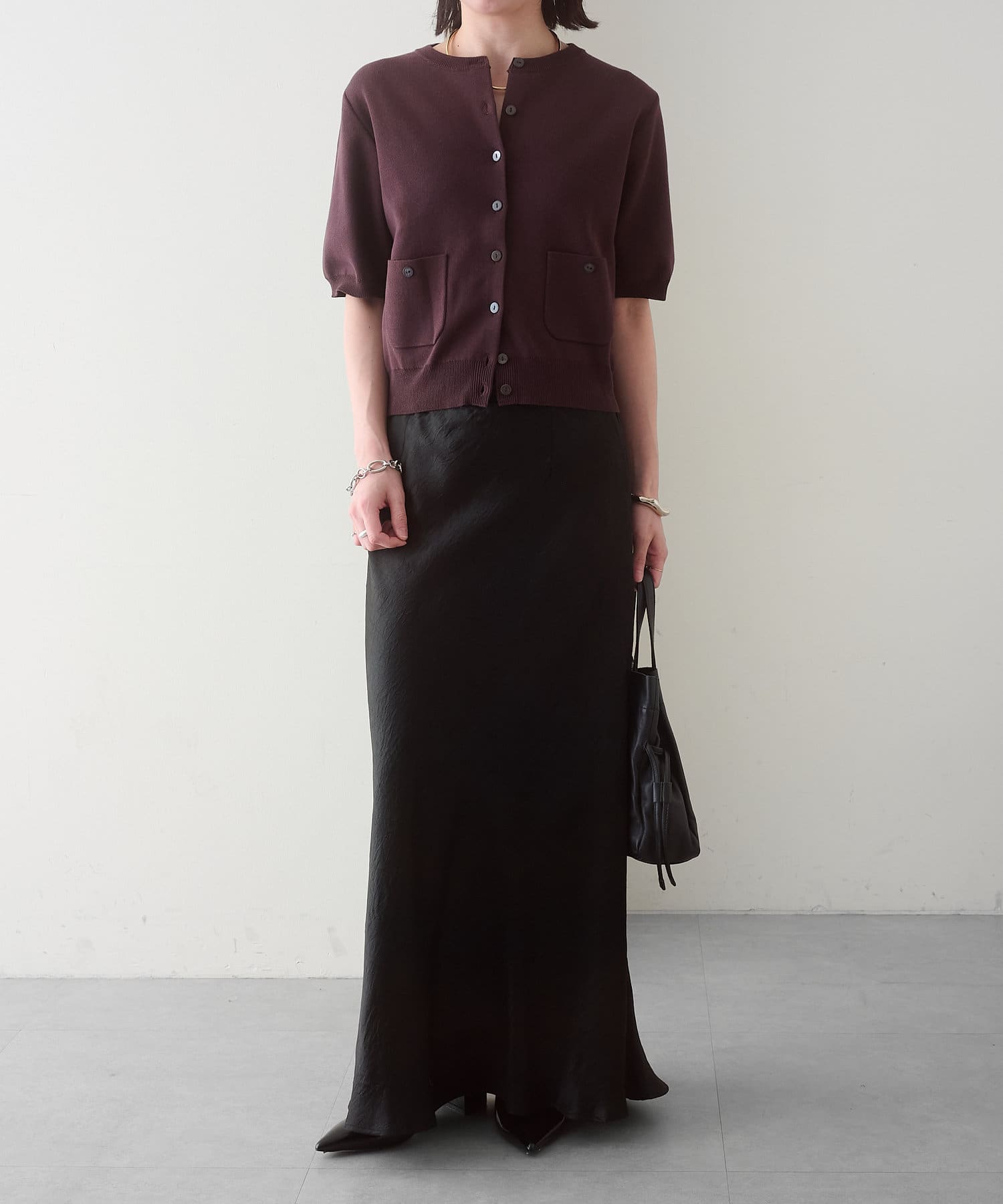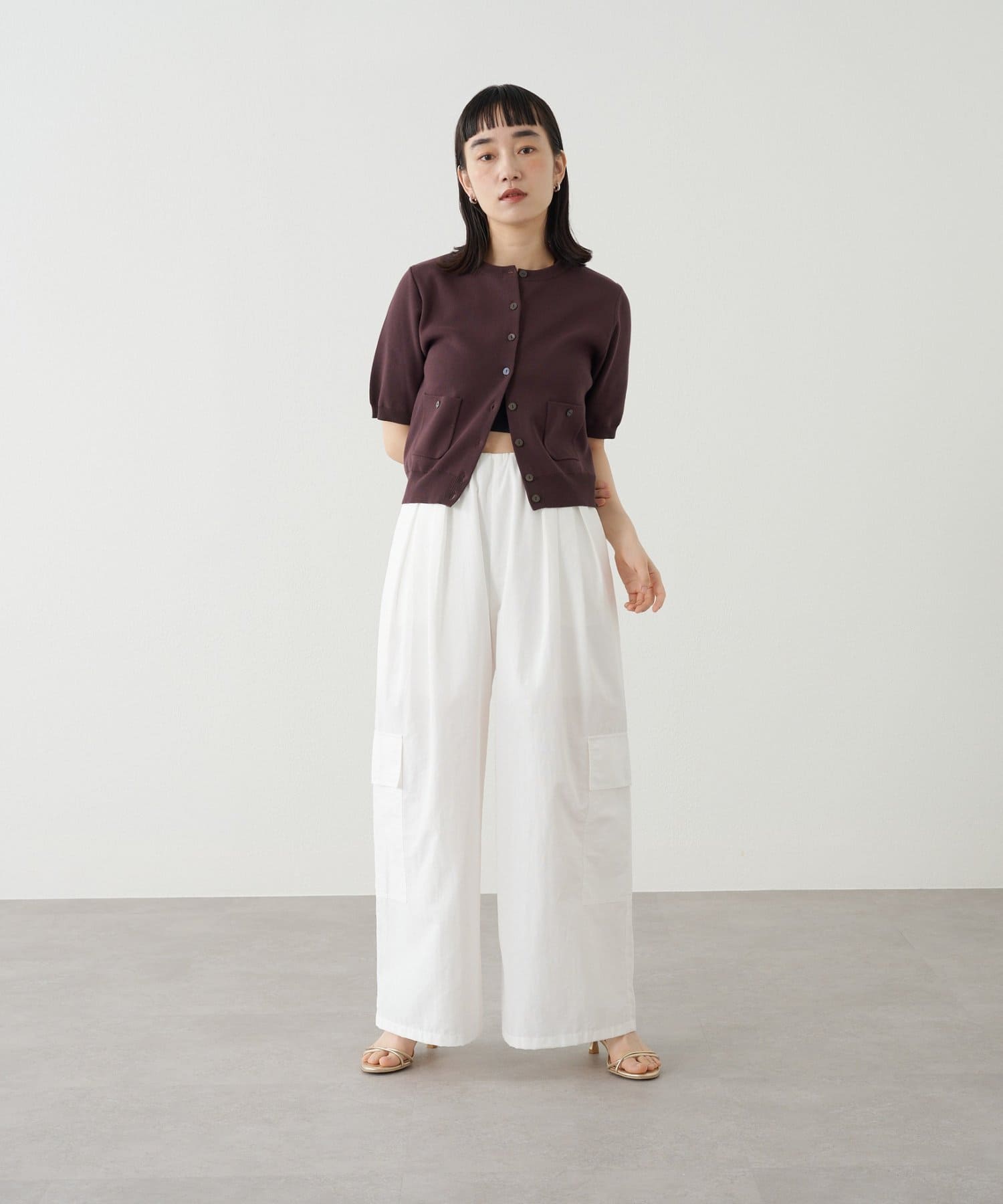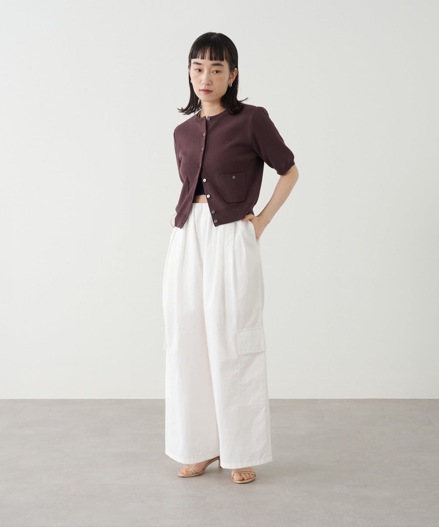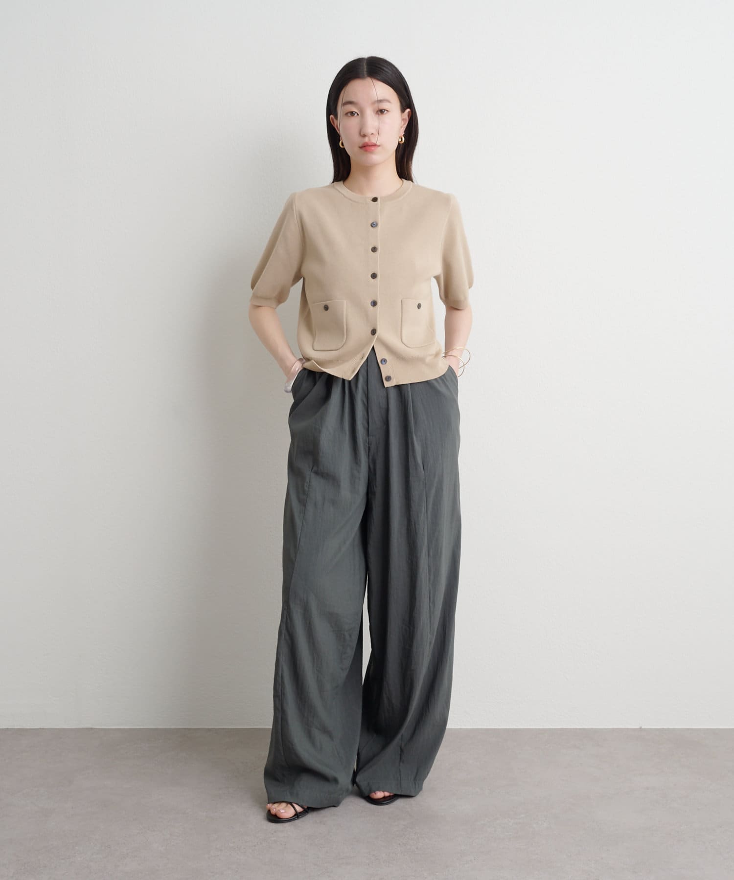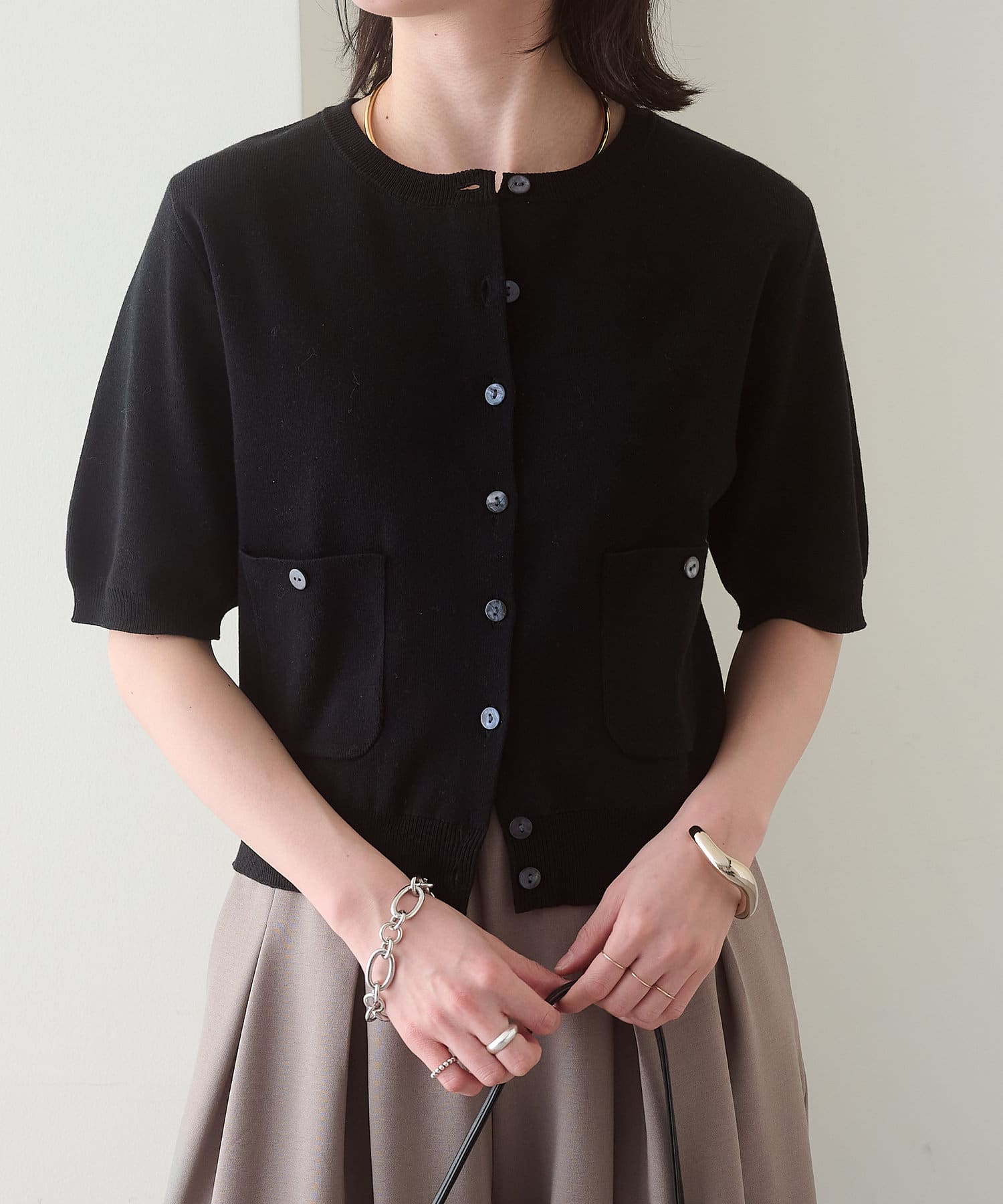 【新色追加/ベージュ】【Omekashi名品/ロングセラー◎】半袖強撚スウェットライクポケットカーディガン
