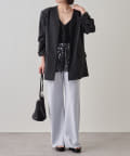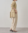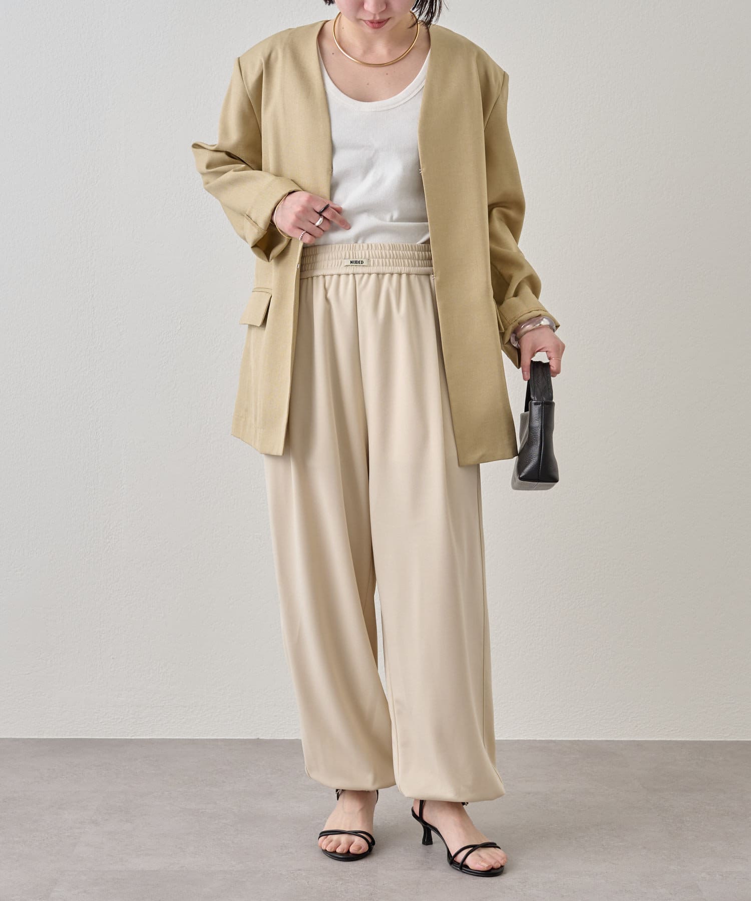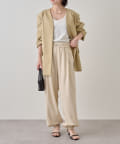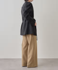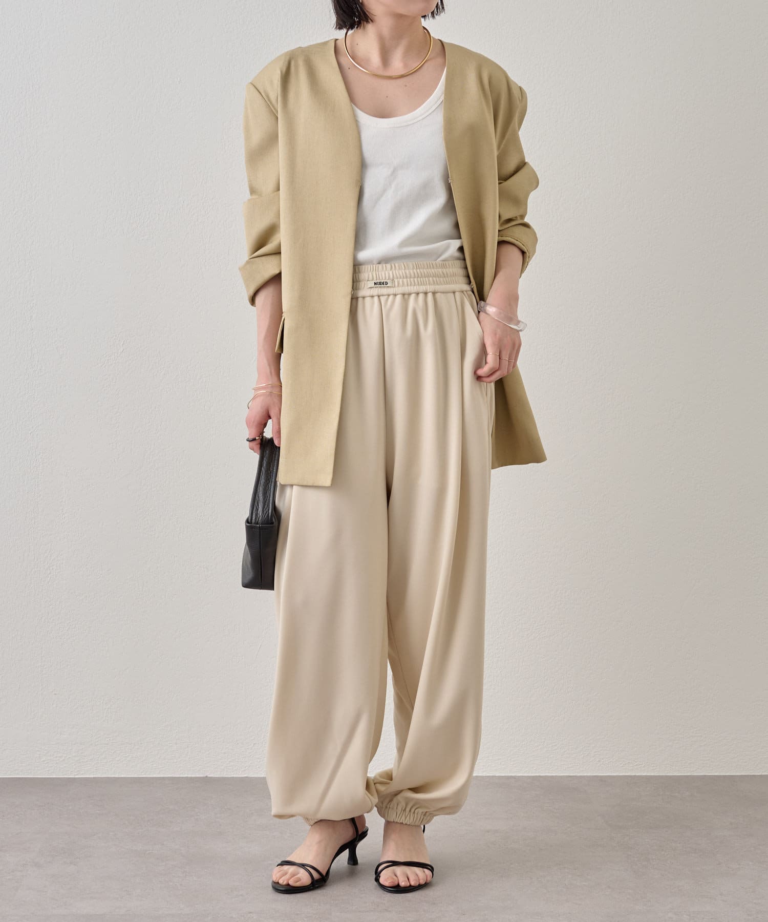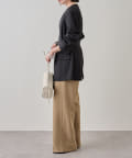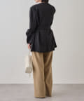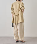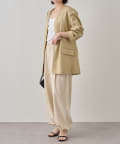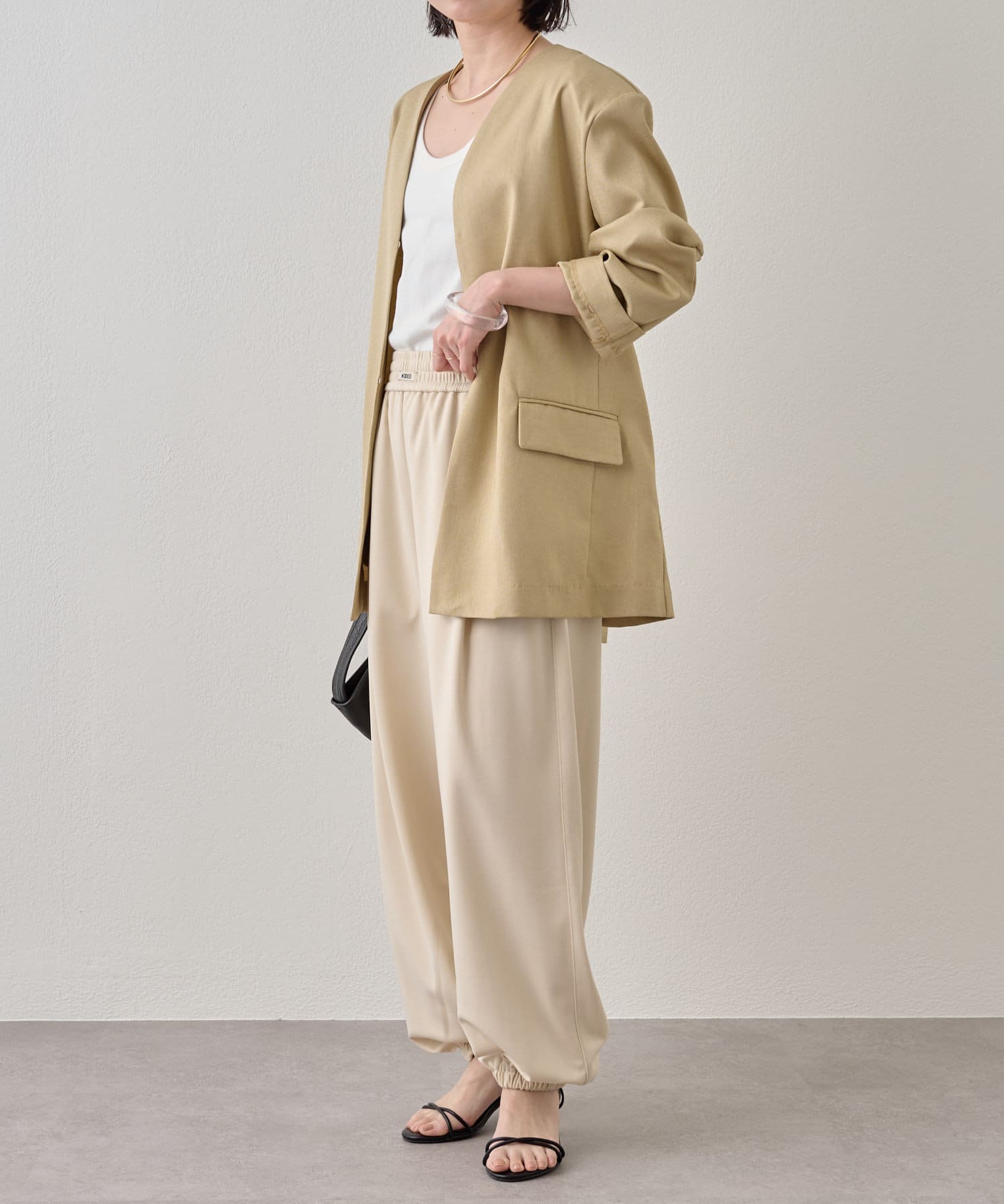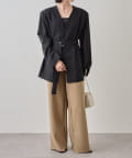 大人のこなれ感を演出するベルト付きのノーカラージャケット