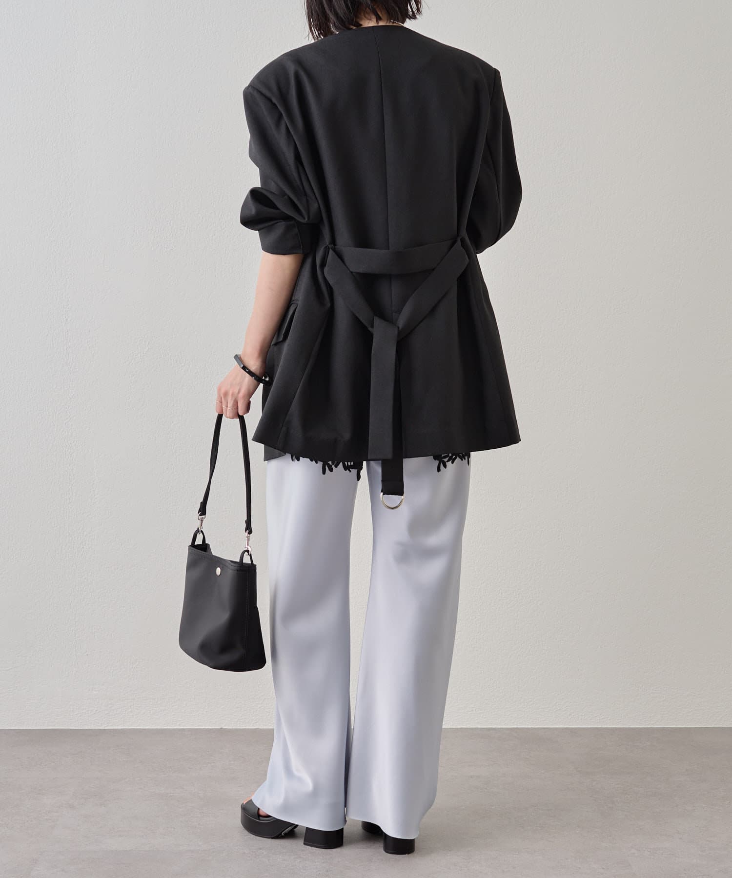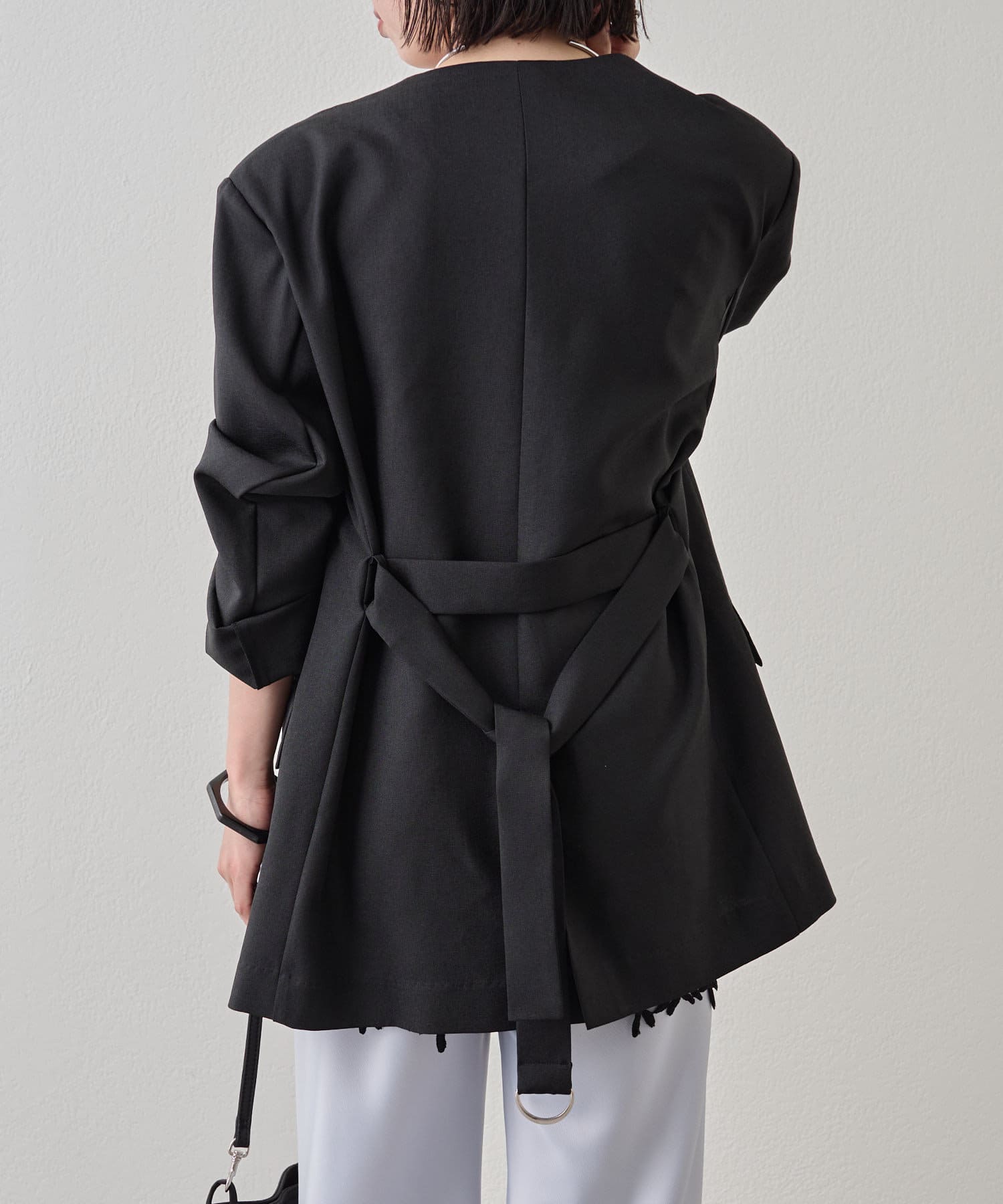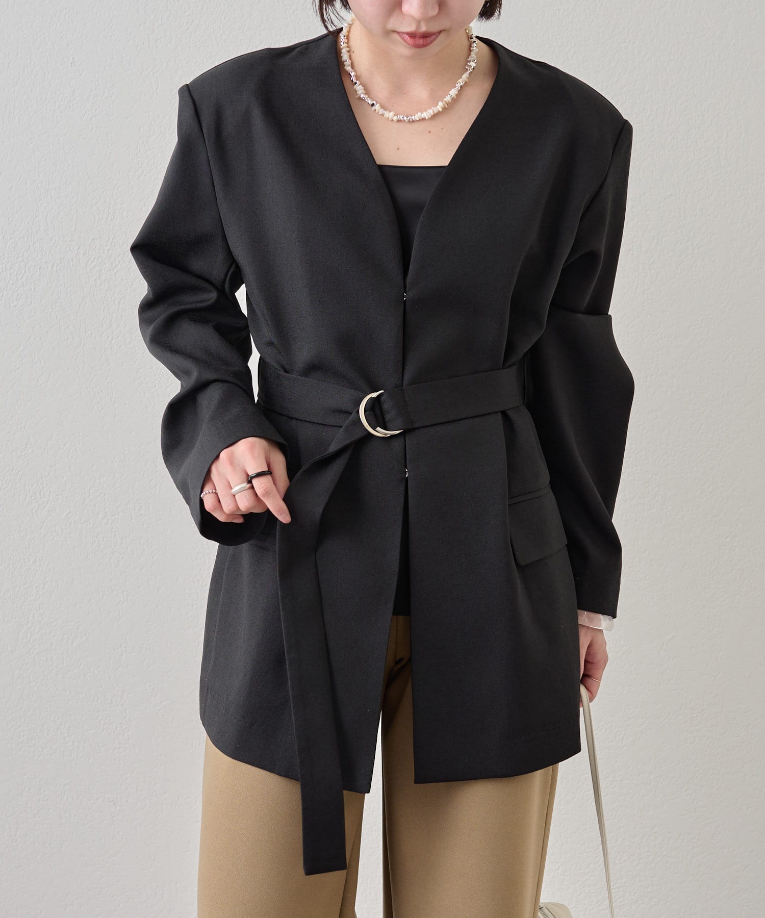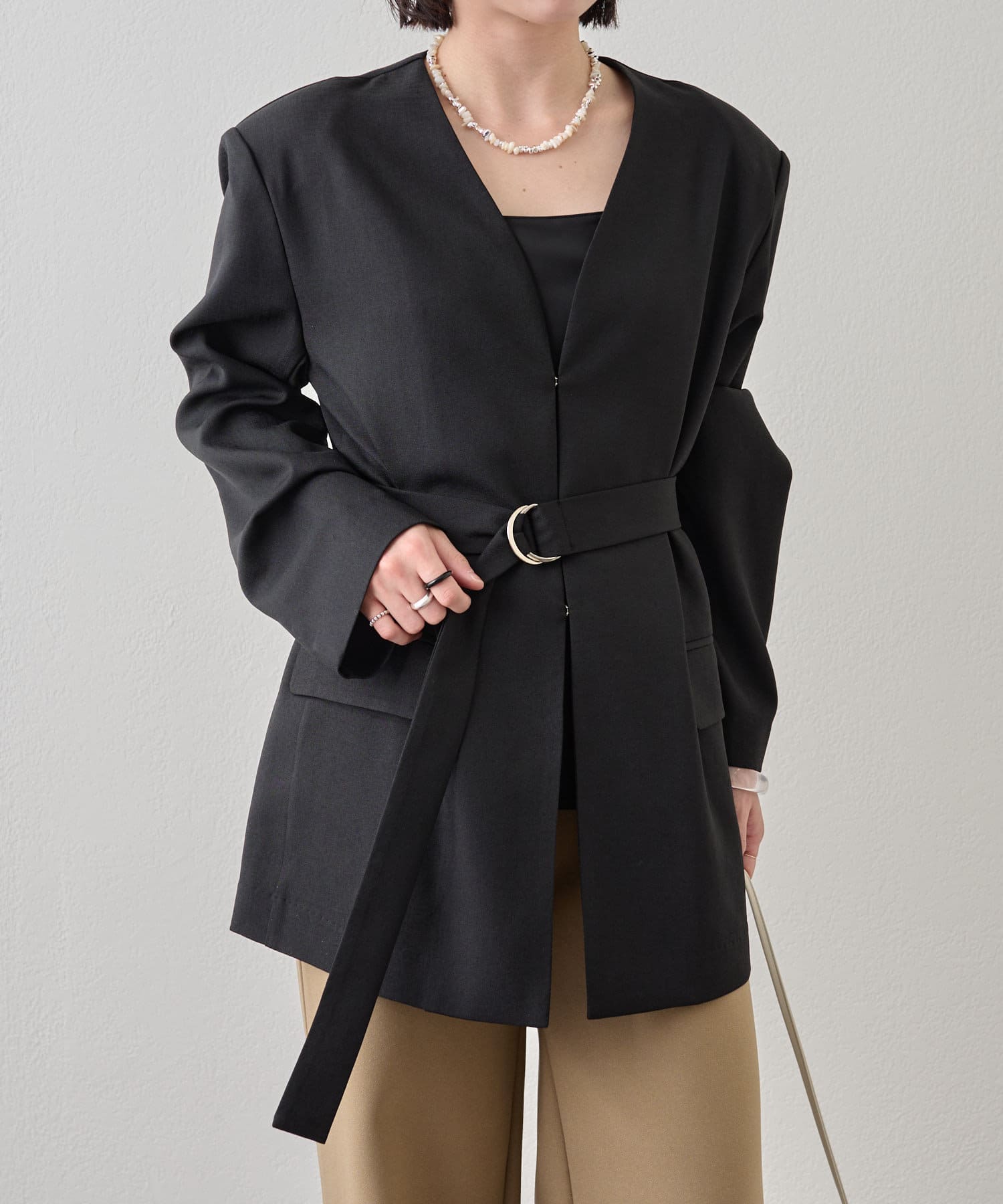 Omekashi(オメカシ) 【オンオフ使える◎】ベルト付きノーカラージャケット