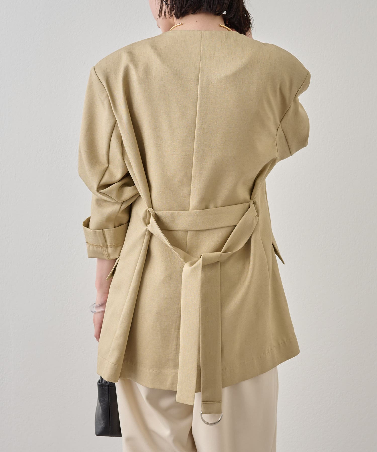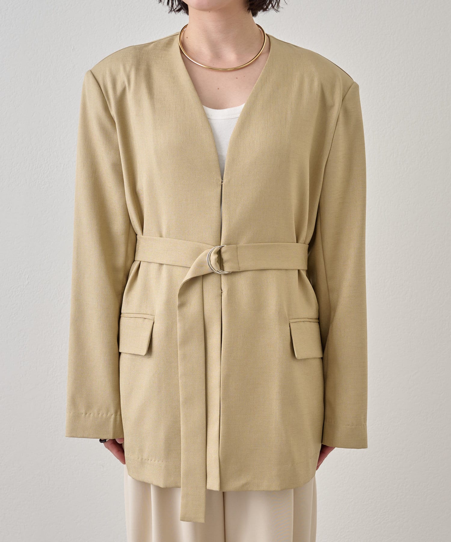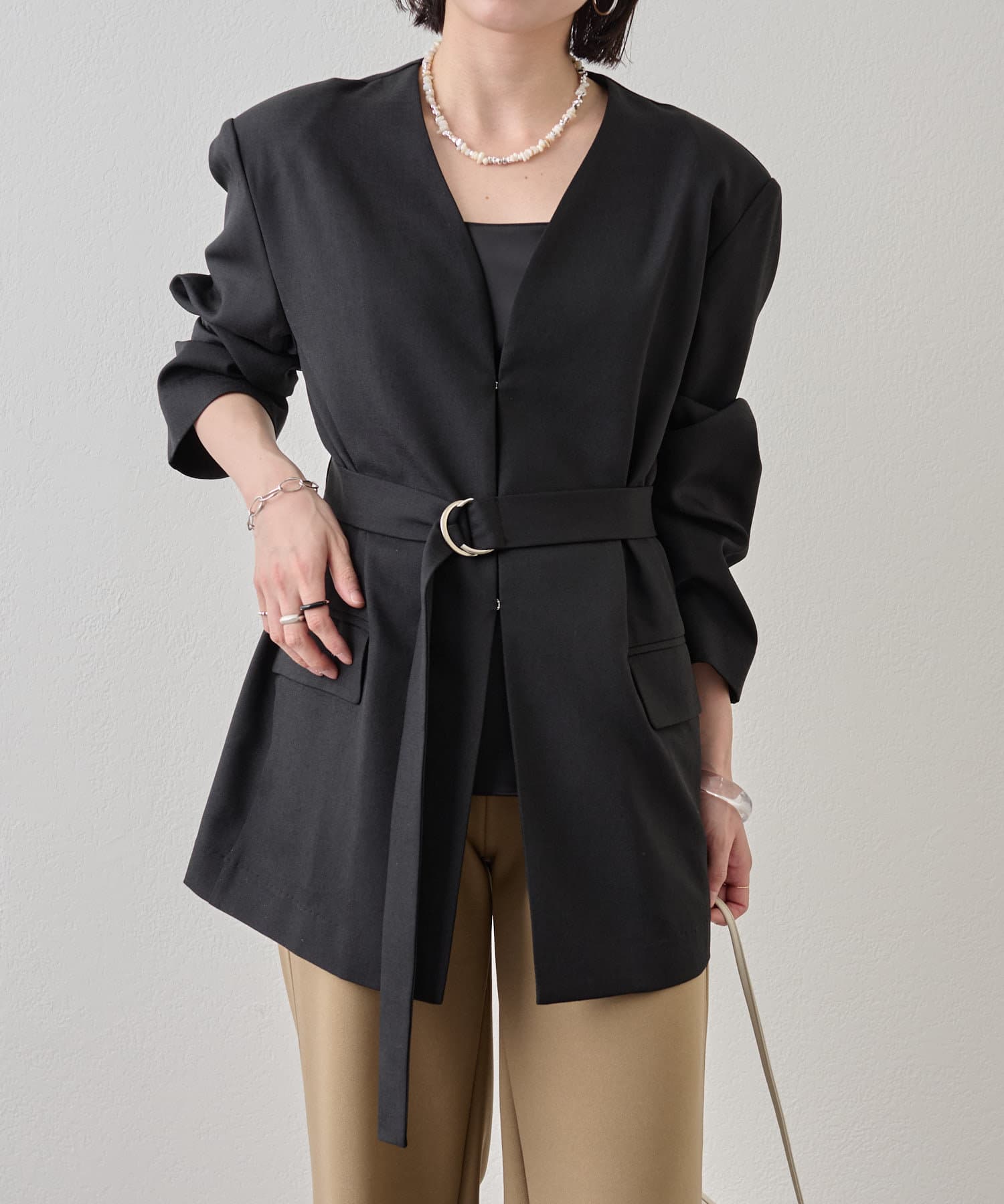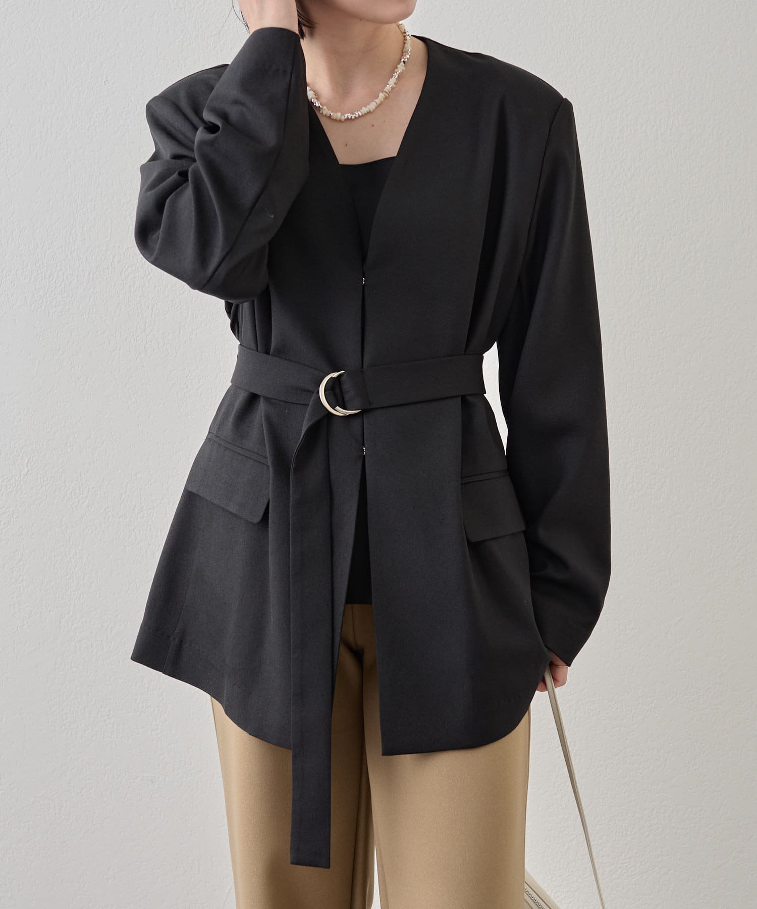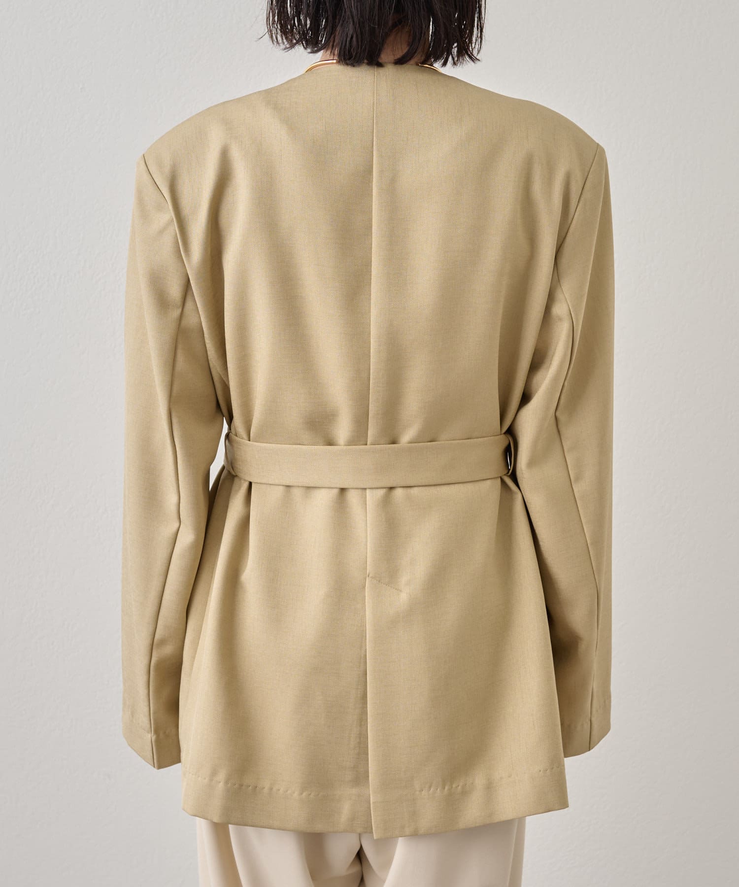 【オンオフ使える◎】ベルト付きノーカラージャケット