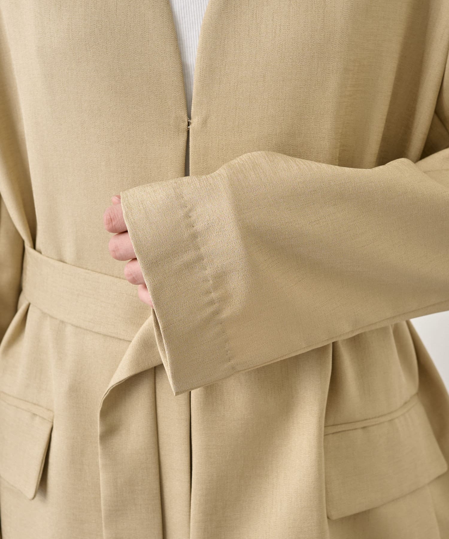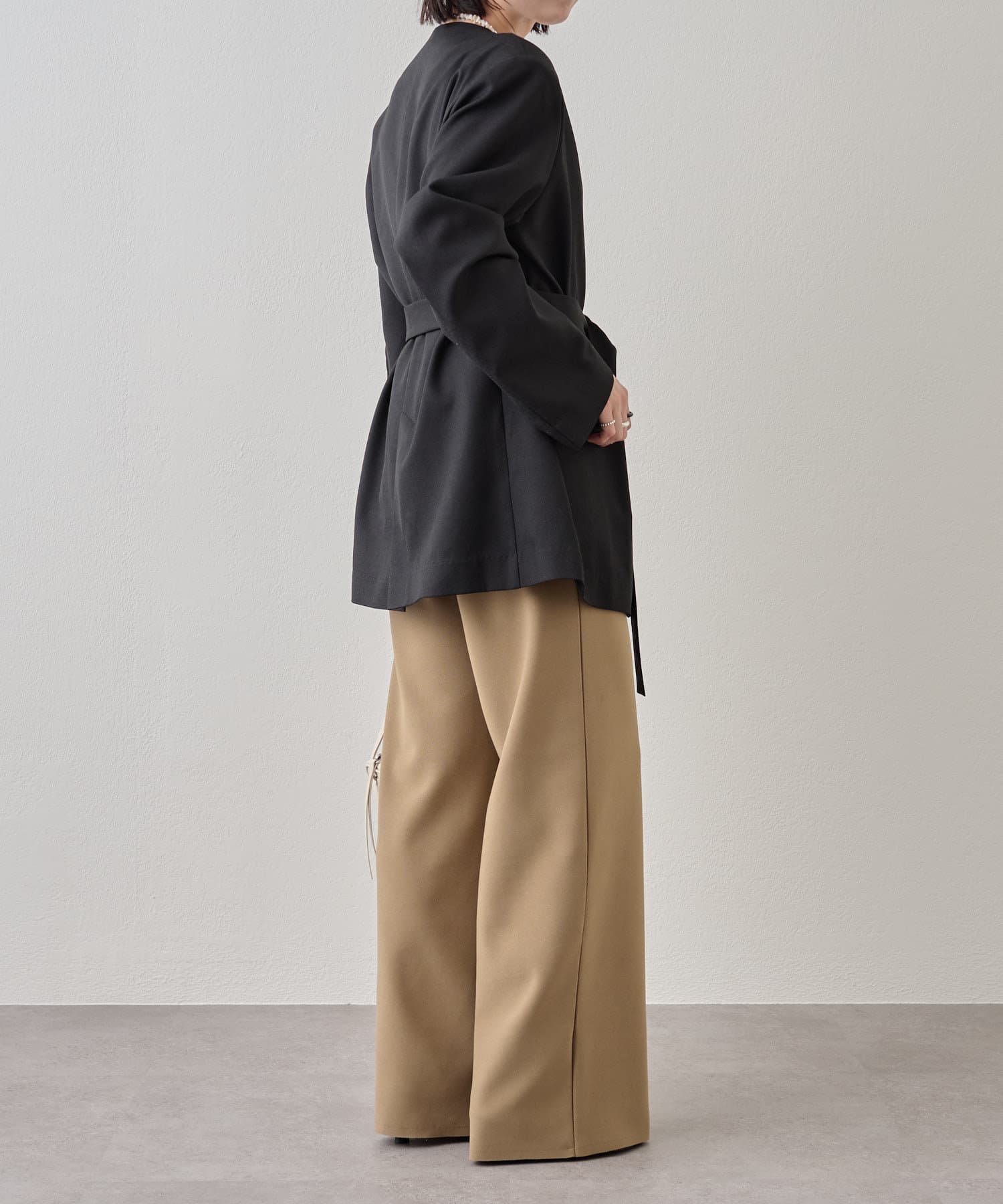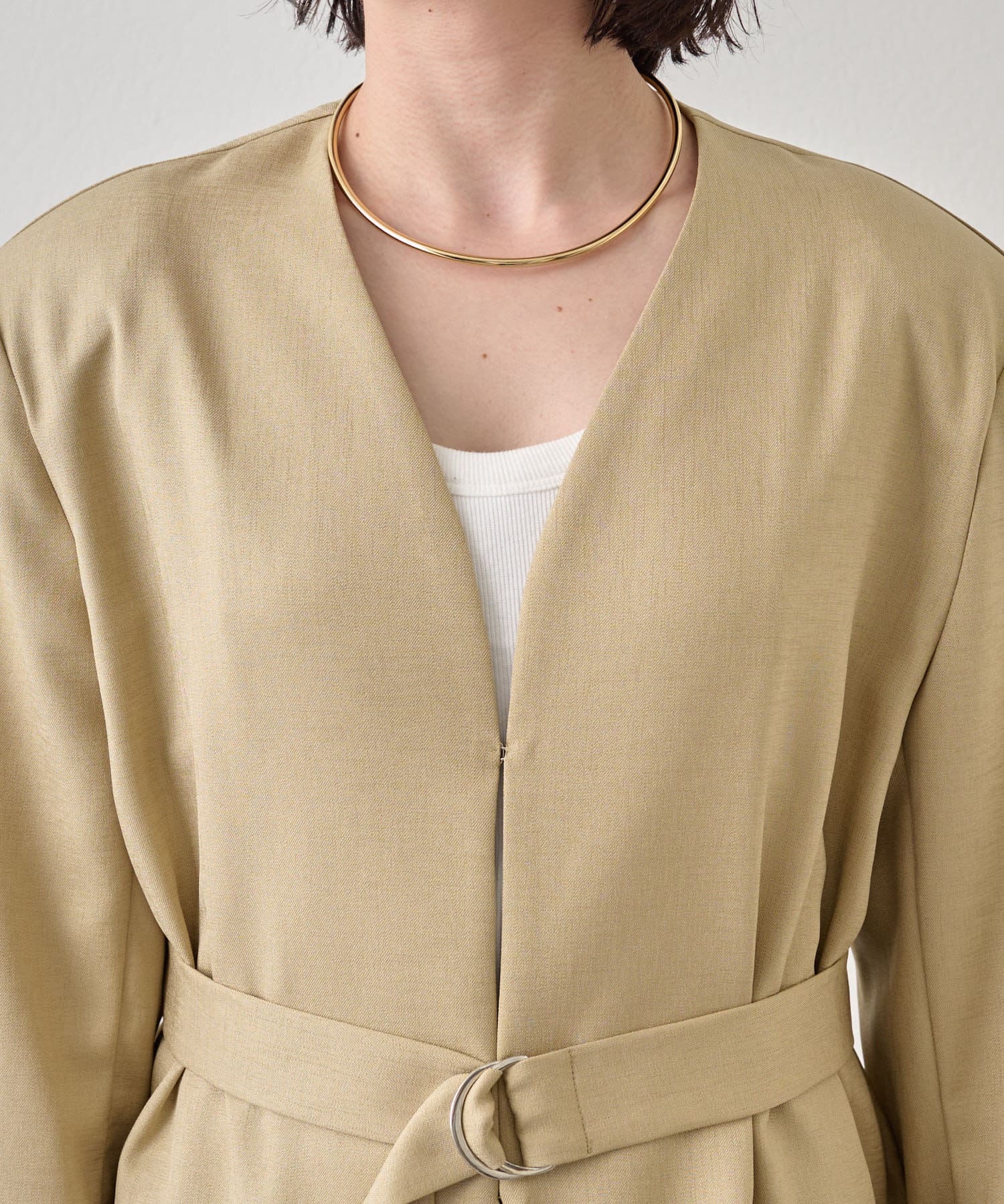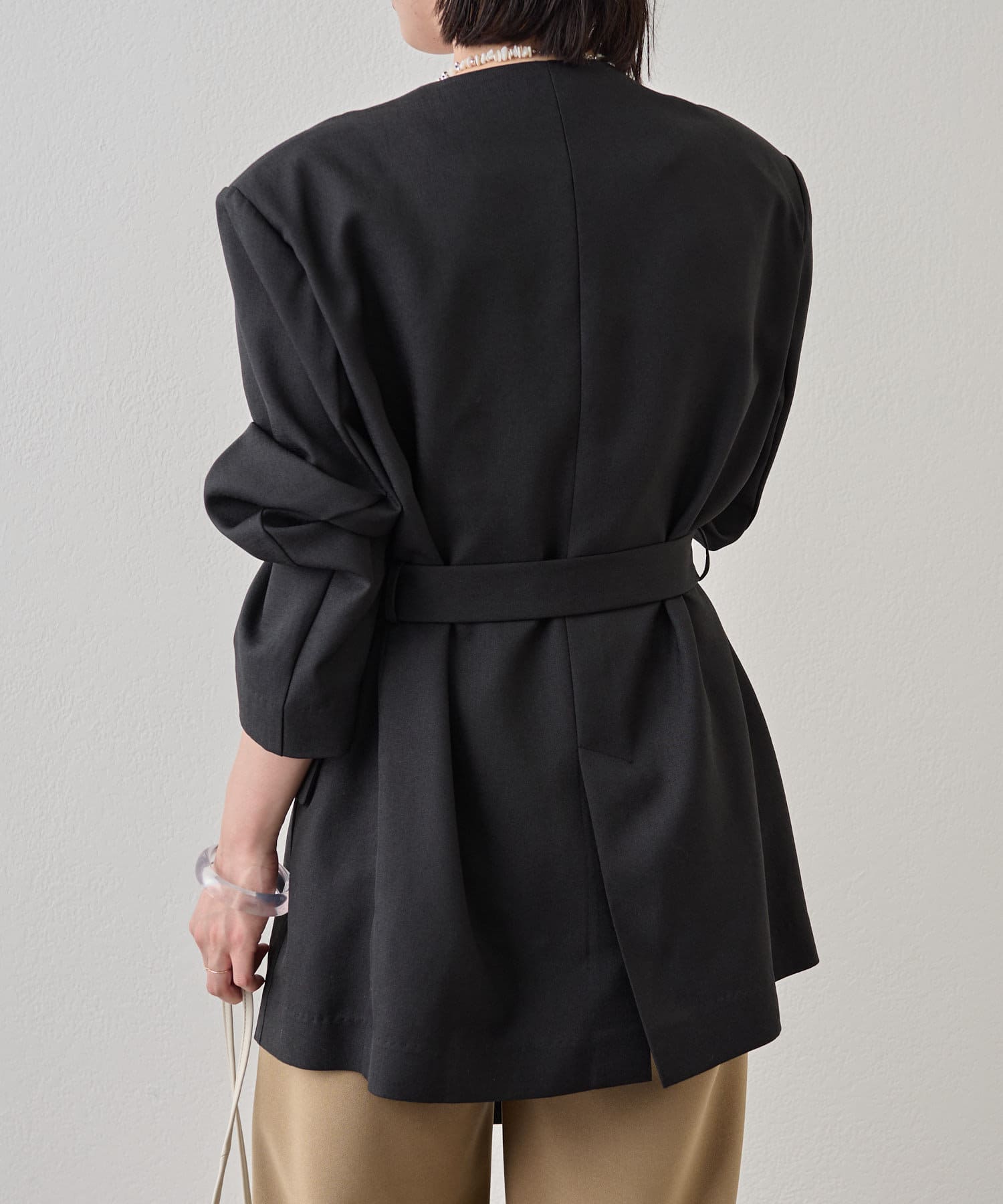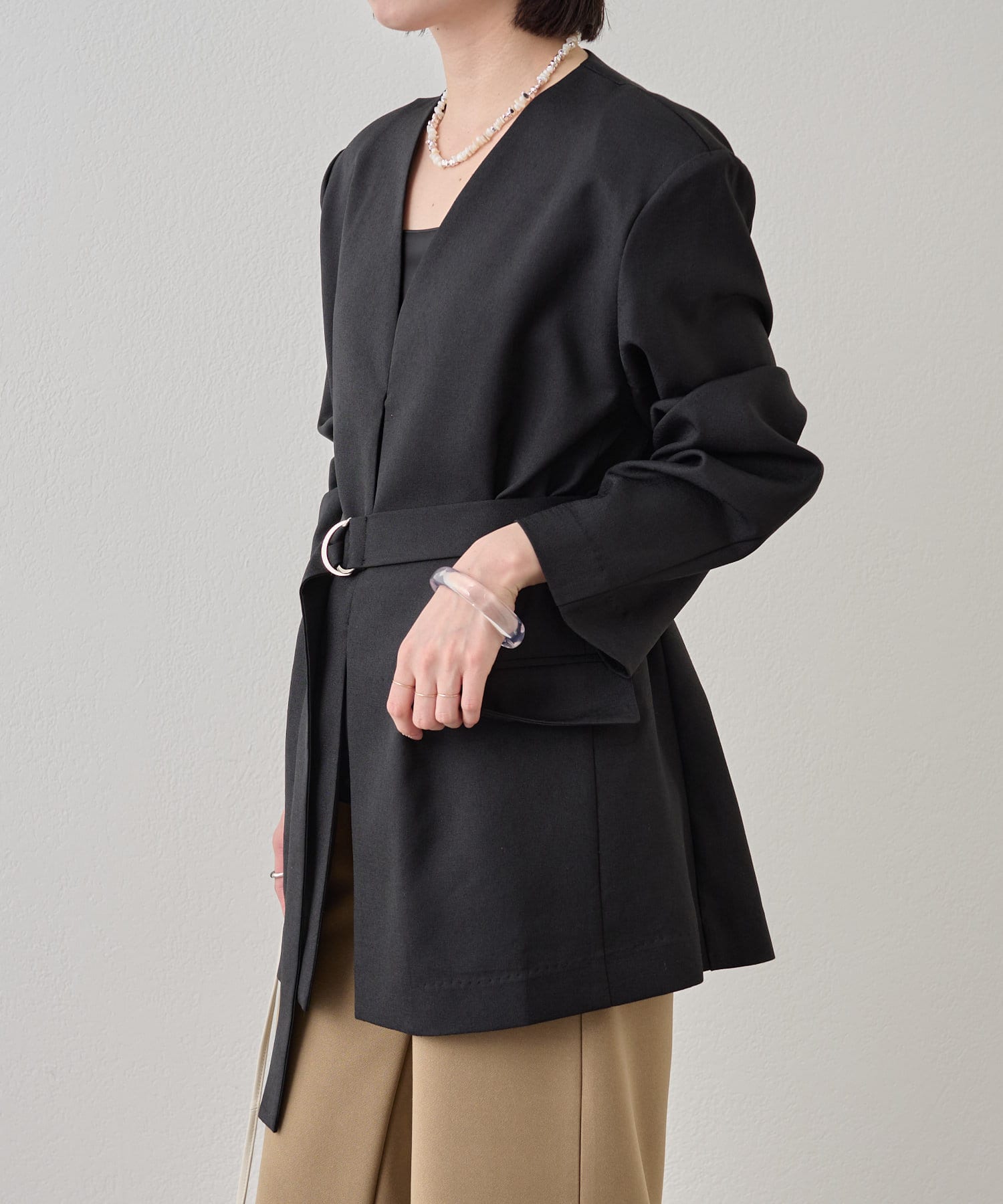 【オンオフ使える◎】ベルト付きノーカラージャケット