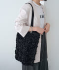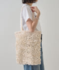 スタイリングのポイントになるフラワーデザインのトートバッグ
