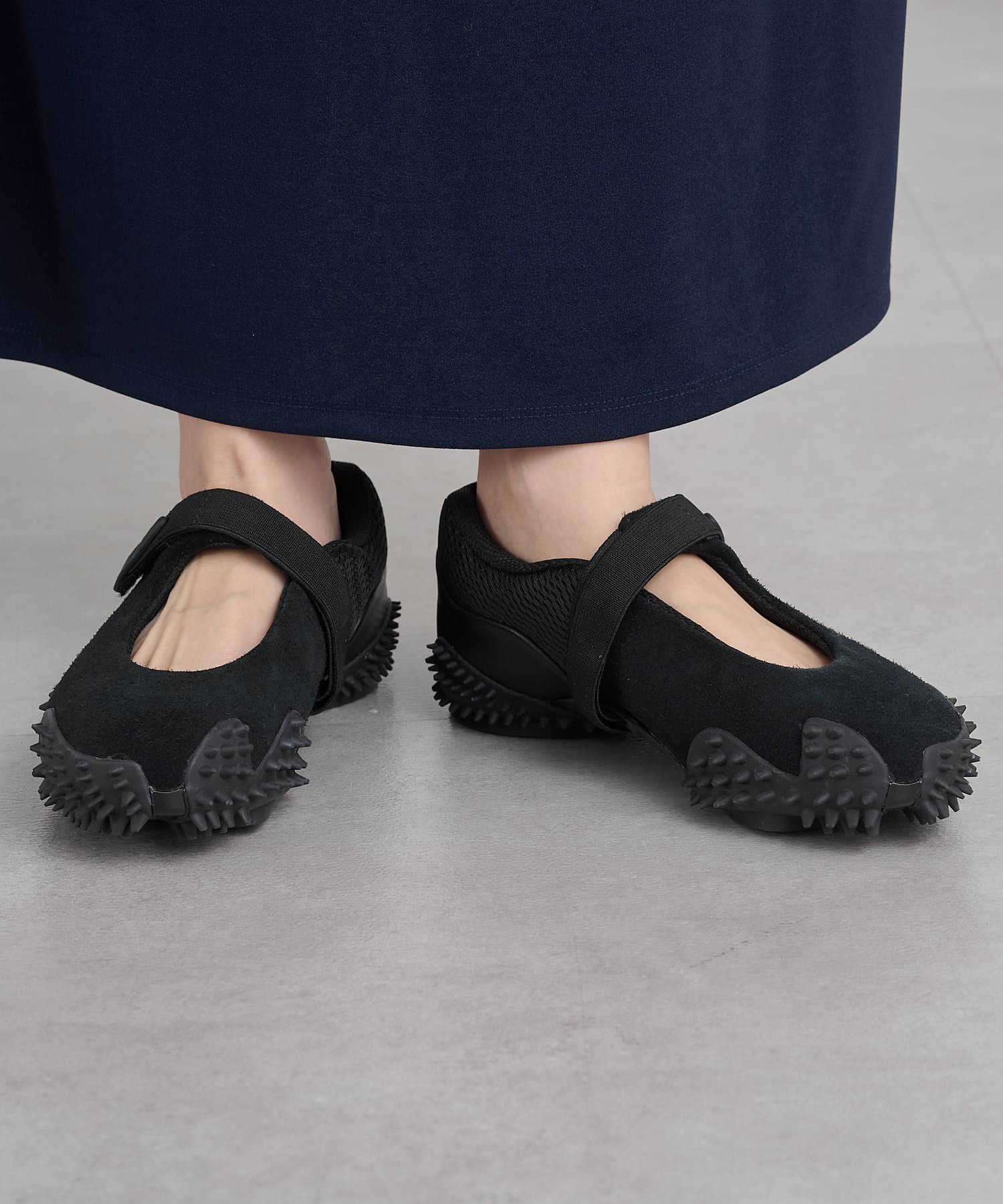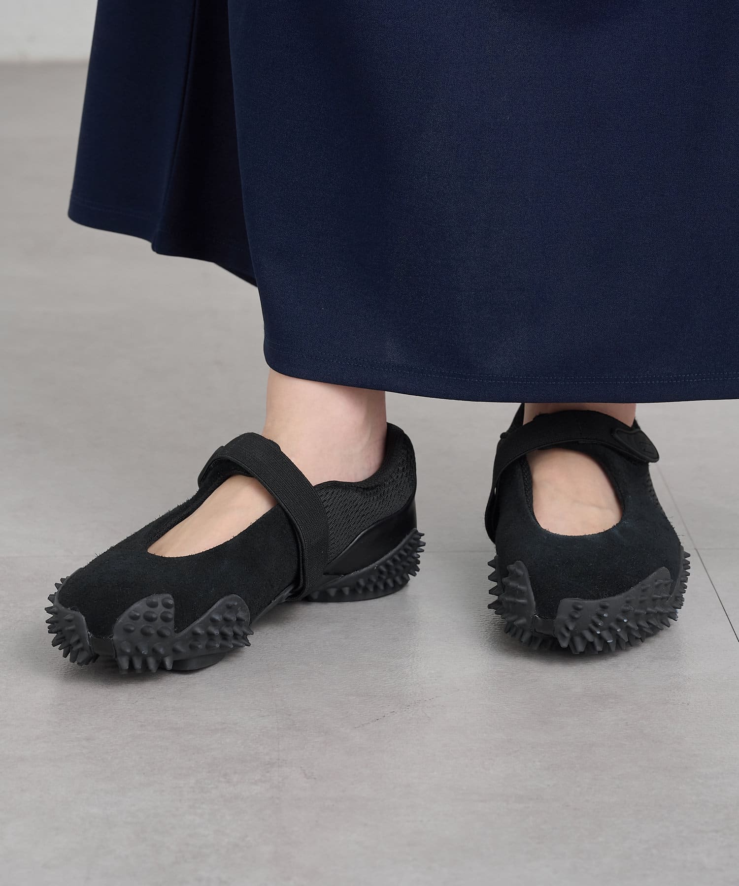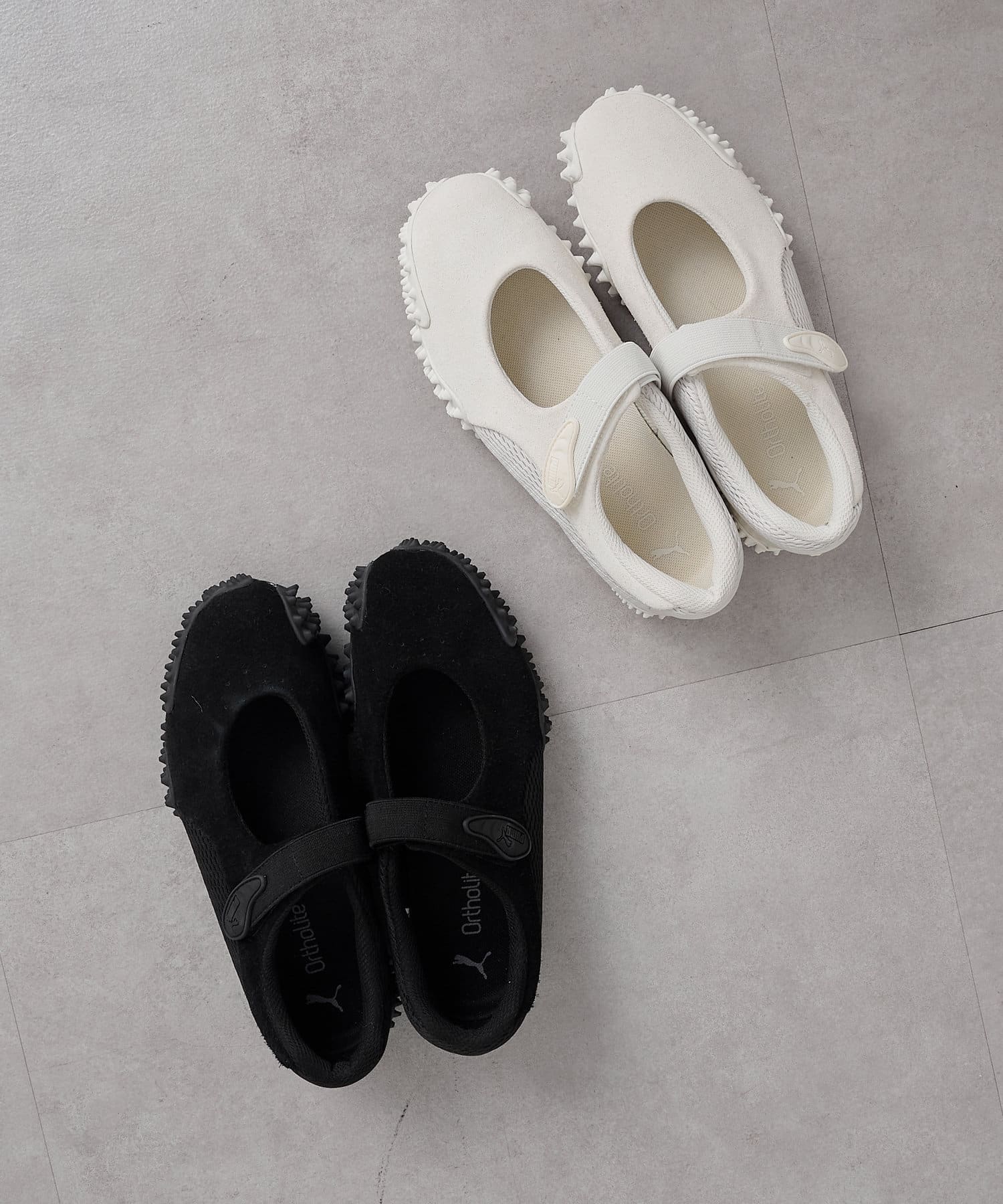 今回のバージョンでは、シューズの特徴である大胆なデザインと繊細なメリージェーンシルエットを組み合わせ、まったく新しいルックに仕上げています。