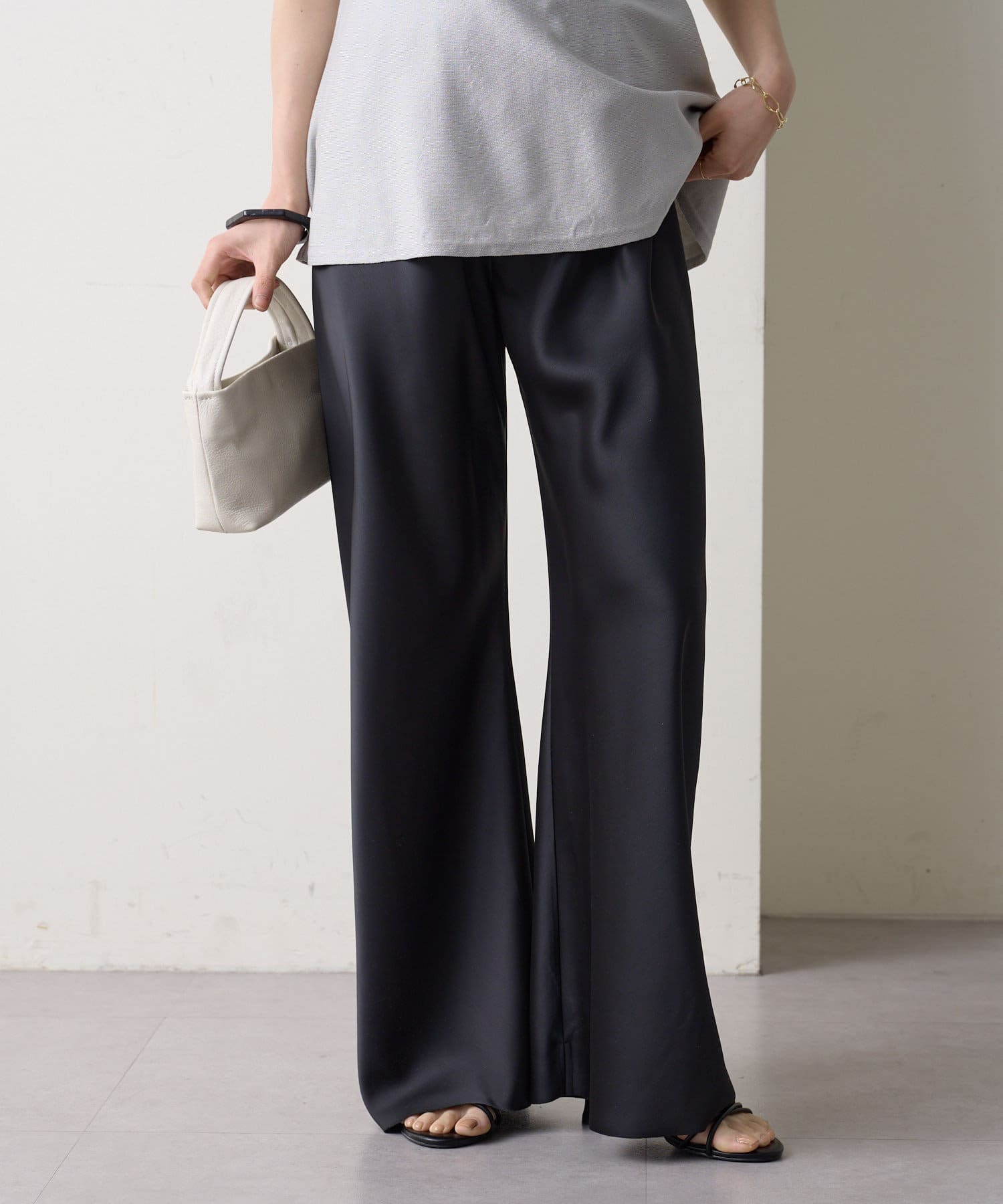 サテンイージーバイアスパンツ