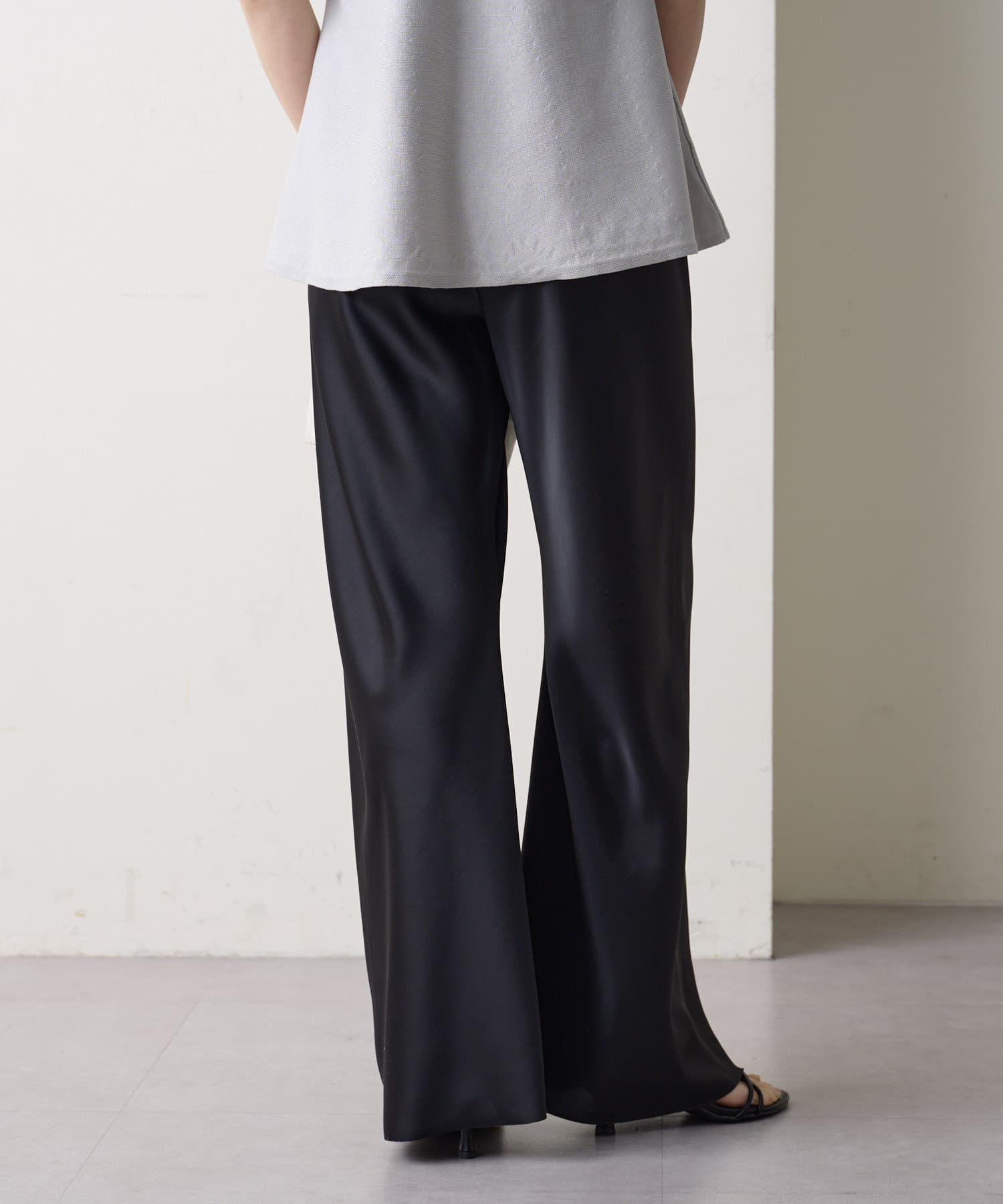 大人のツヤ感が魅力的なサテンパンツ