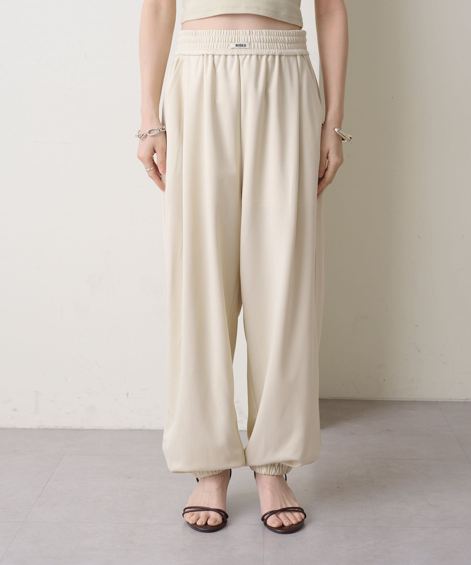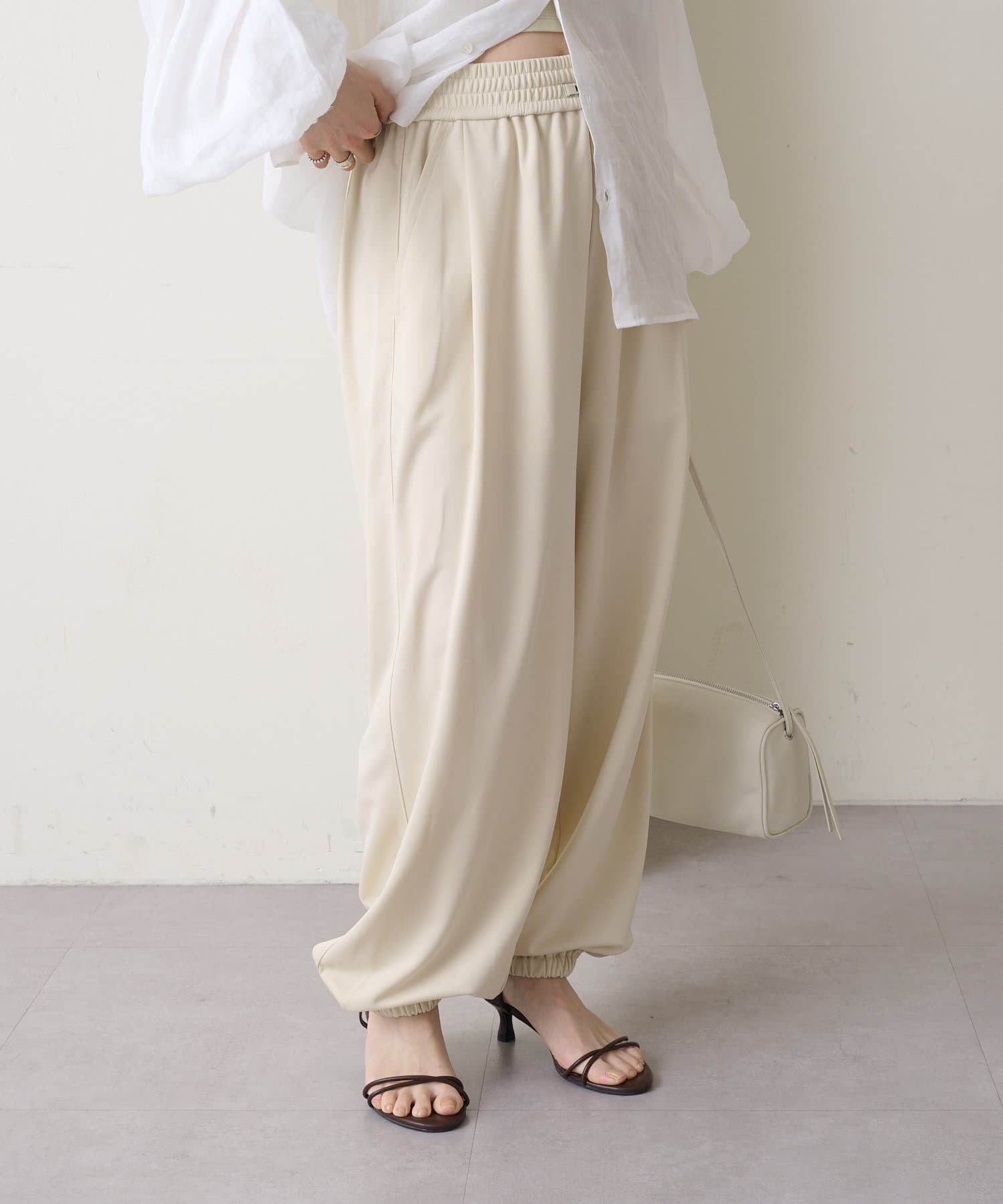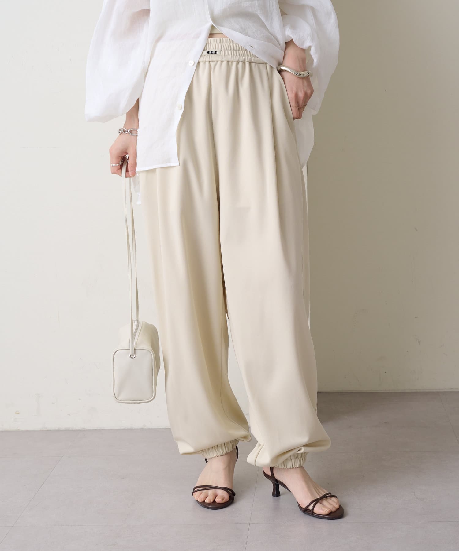 ・ウエストは総ゴムでストレスフリーな履き心地。内側はサイズ調整ができるドロスト仕様。