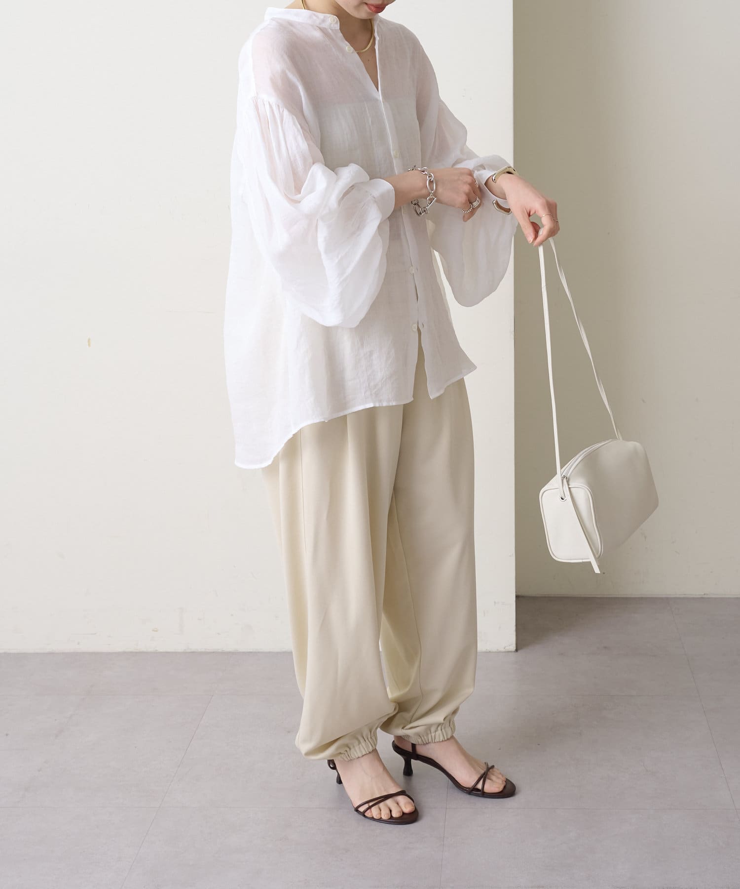 ・ゆったりとした着心地ながらも、裾がすぼまっているのでスタイルアップに◎
