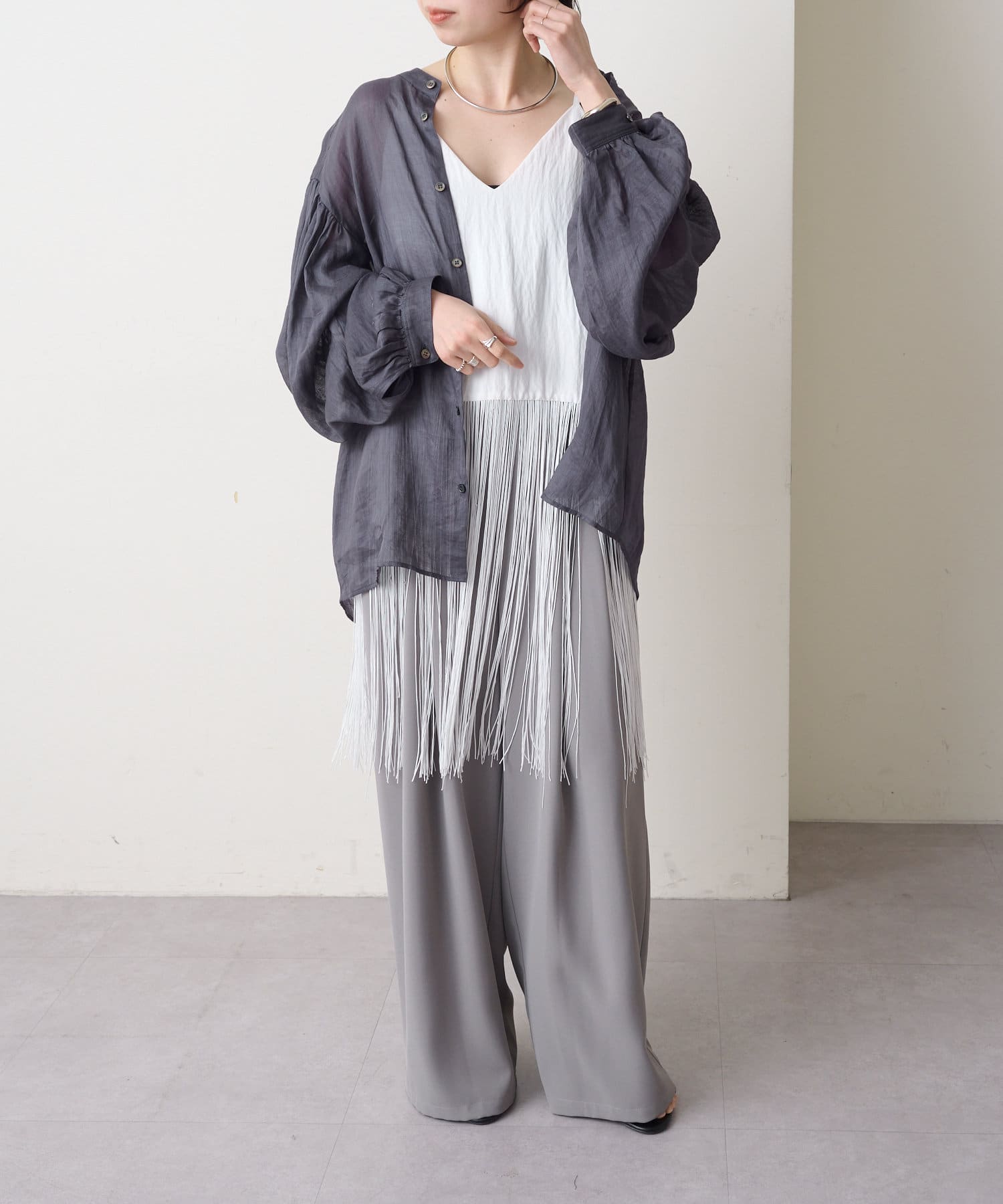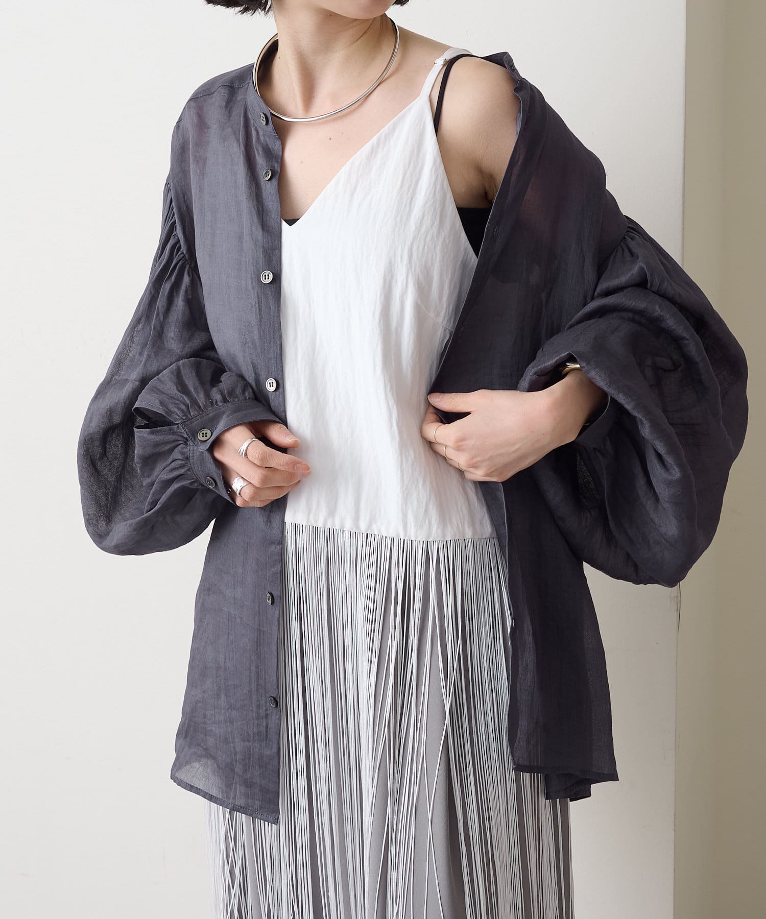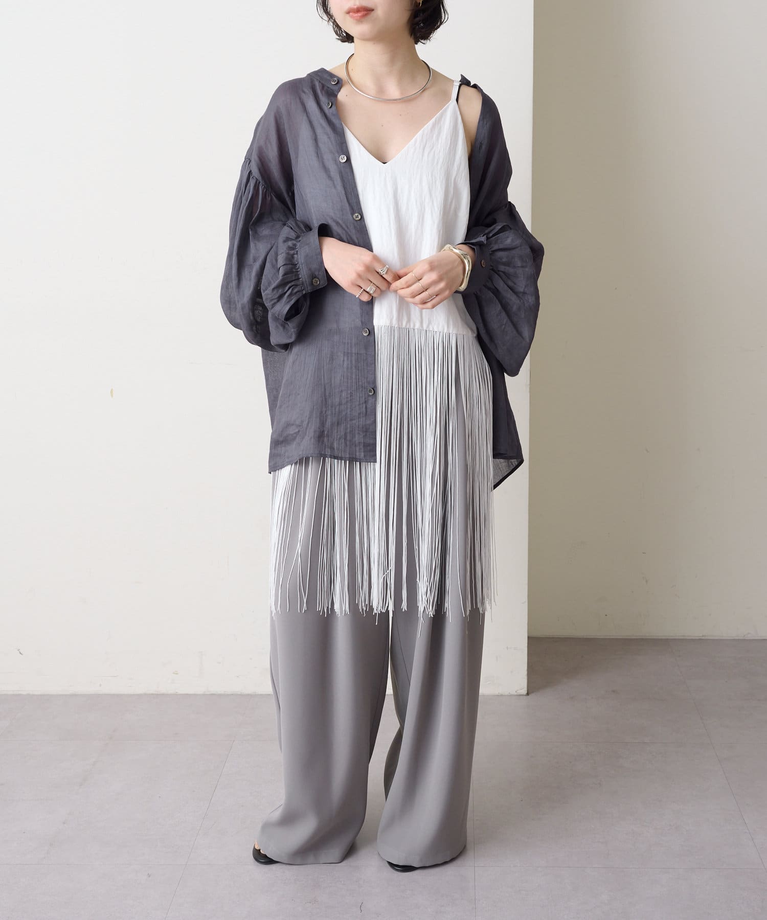 ・ナチュラル感のあるリネン素材がリラクシーなムードを演出する一枚。