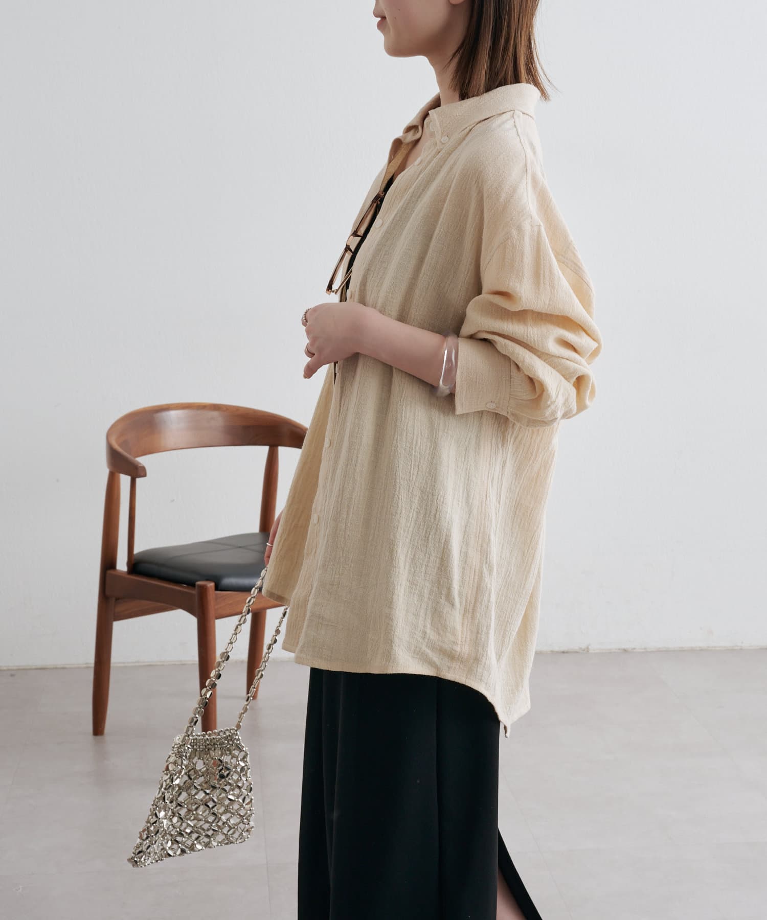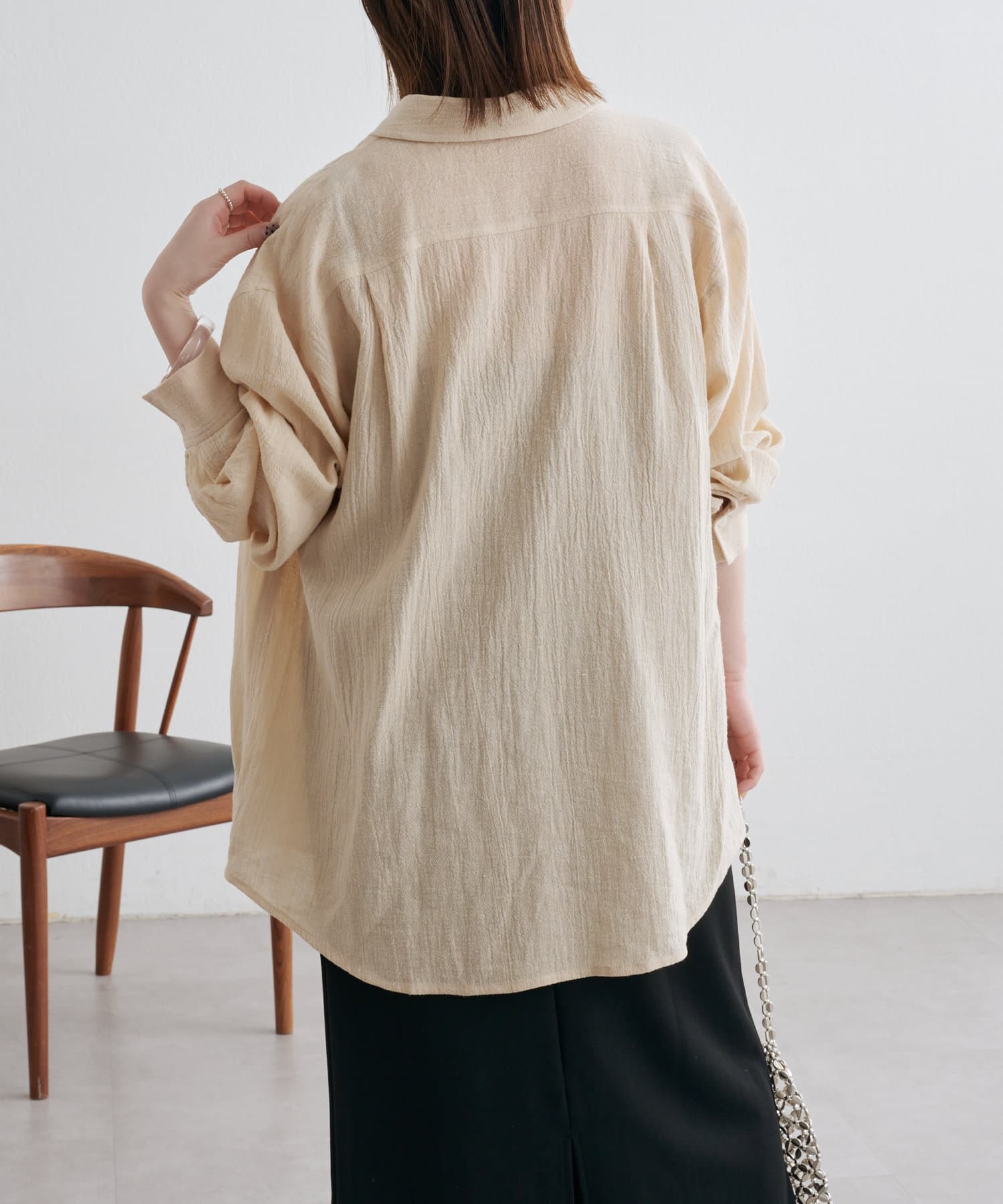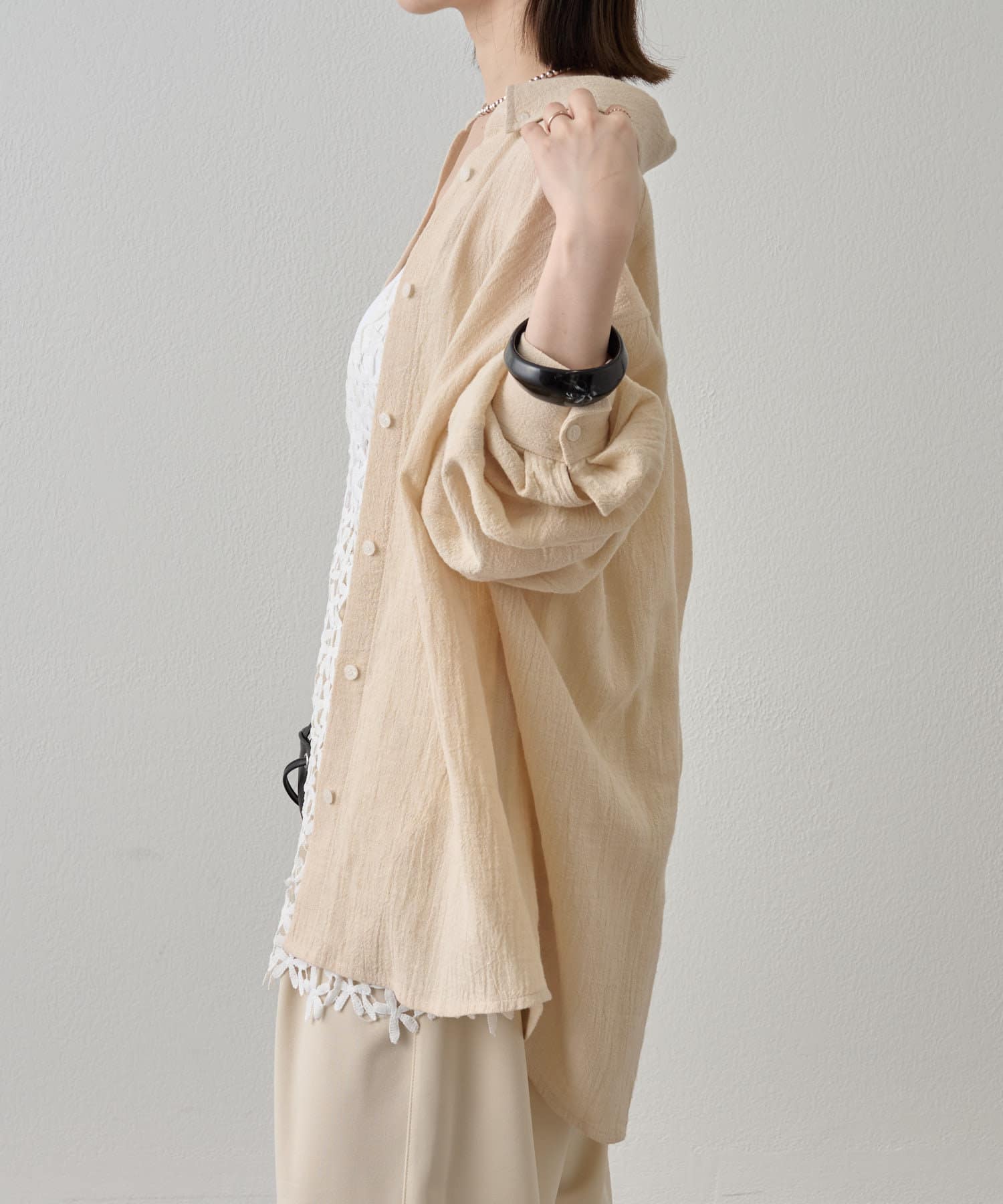 ・ゆったりとしたルーズなサイズ感なので、一枚で着るのはもちろん羽織りものとしても活躍します。
