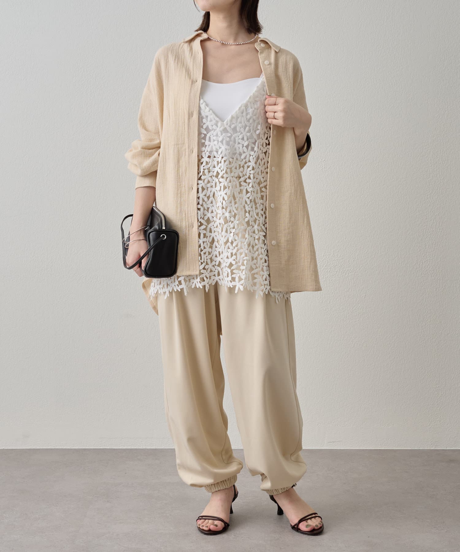 【イエロー②】NUDEDジャージーパンツ/レースオーバーキャミソール