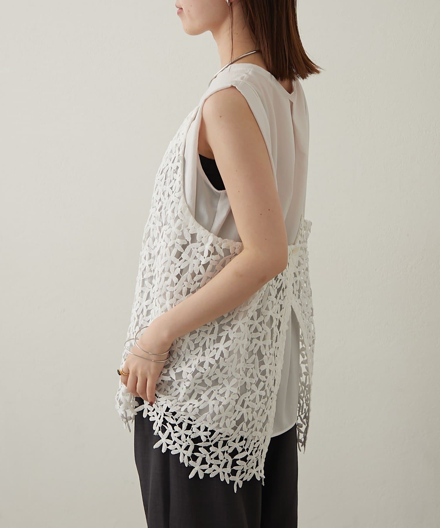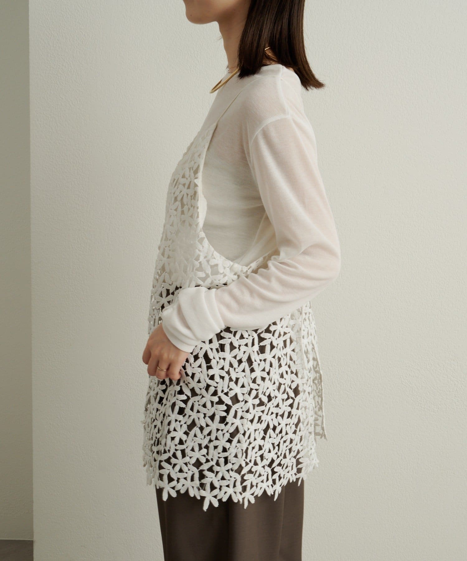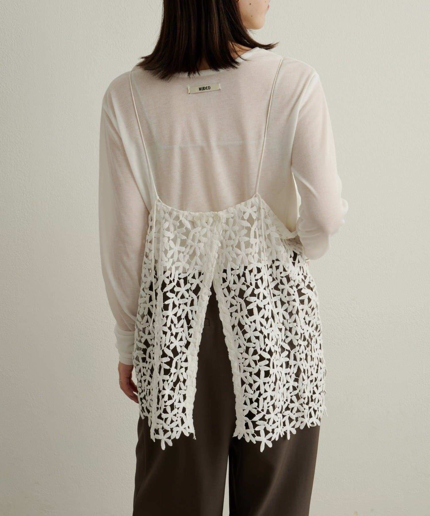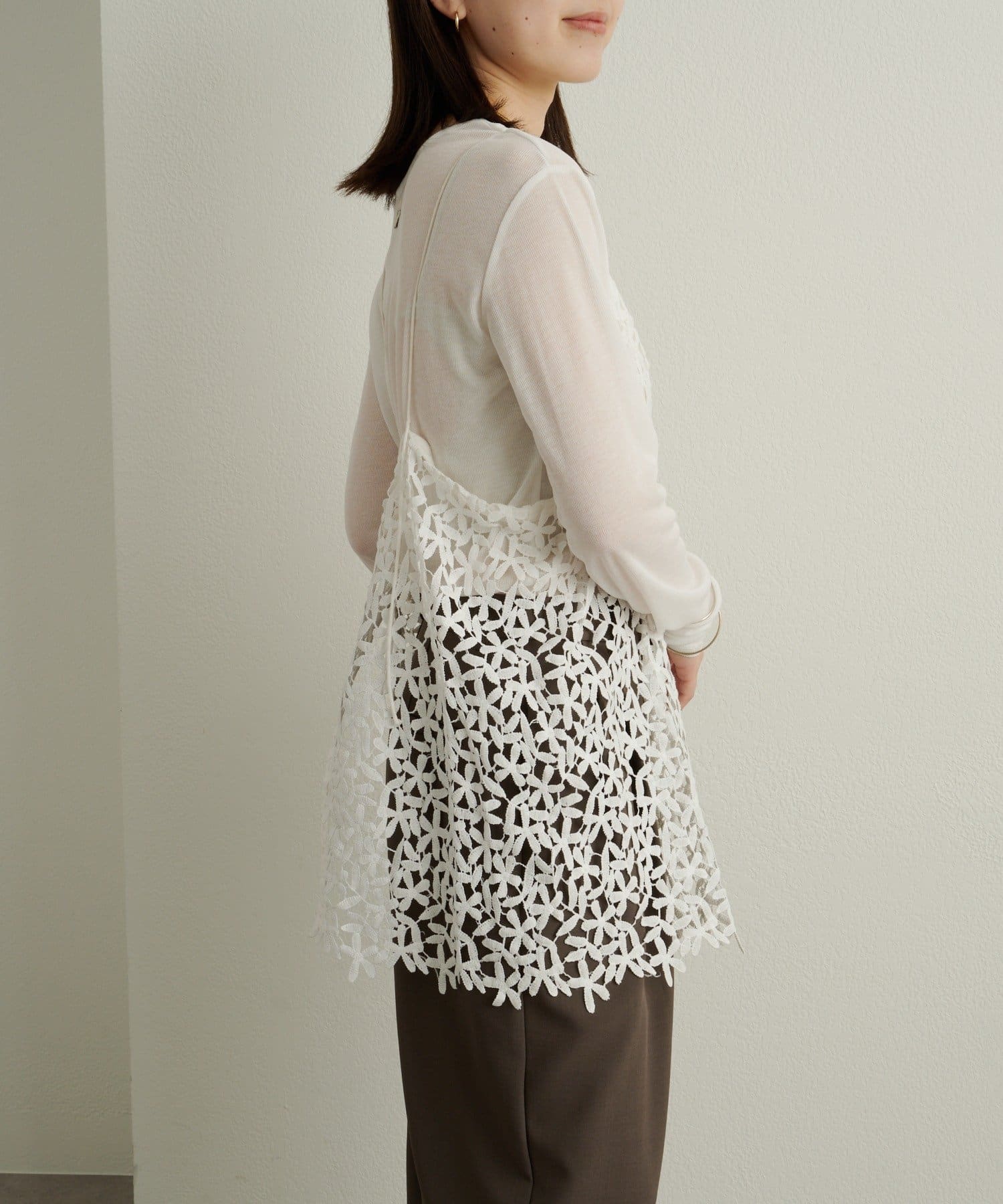 ・花模様のレースデザインがスタイリングを華やかに魅せてくれる一枚。