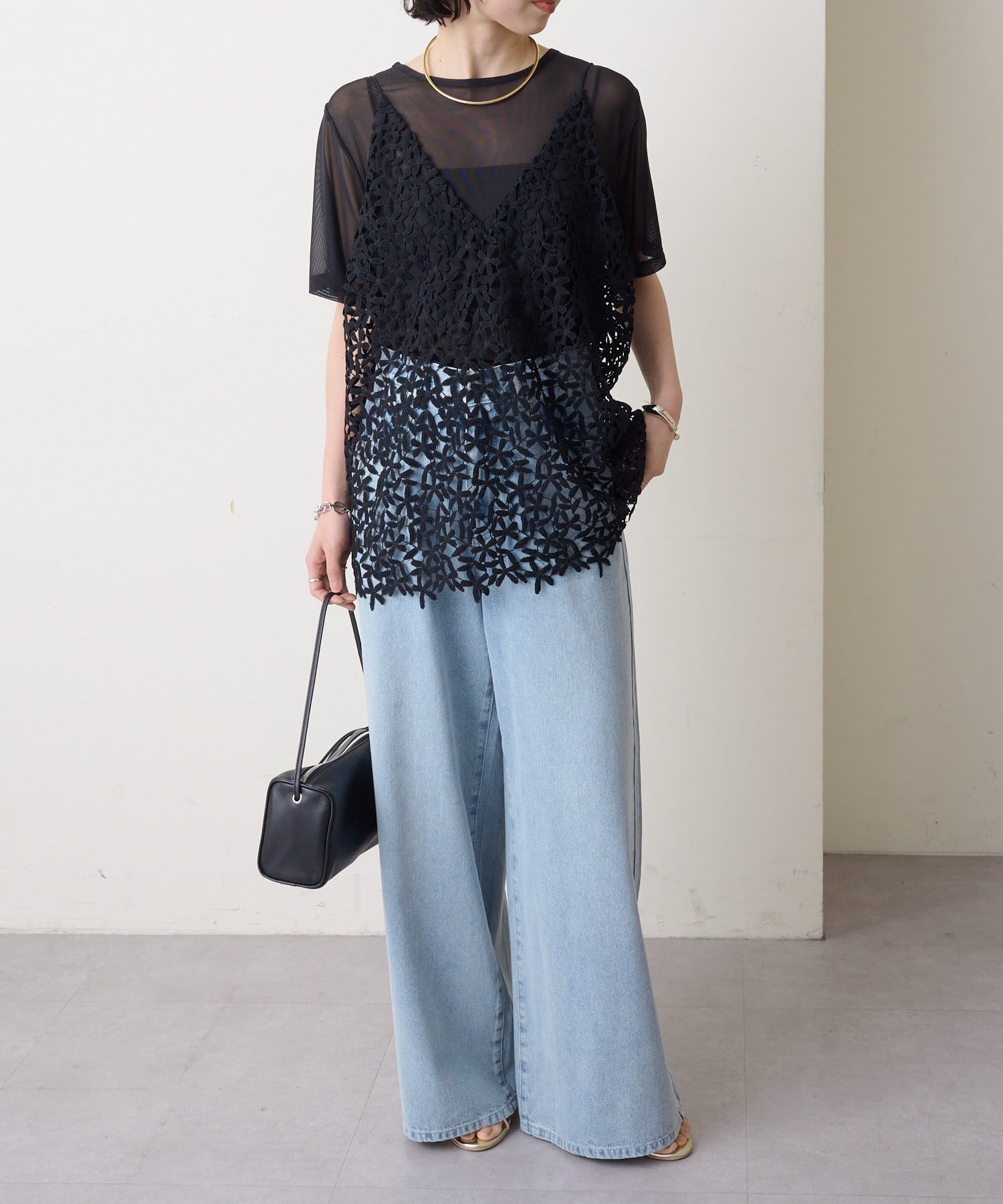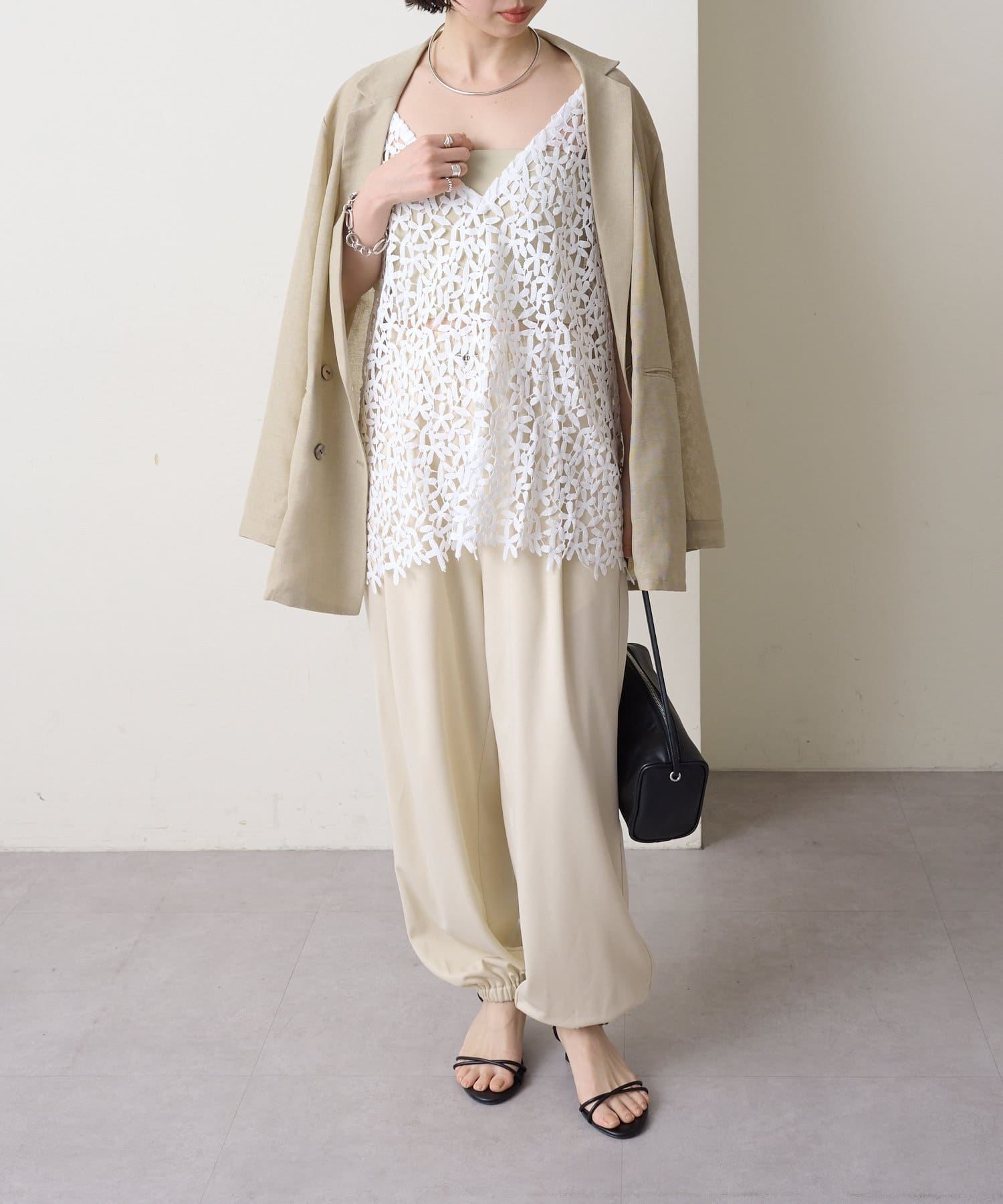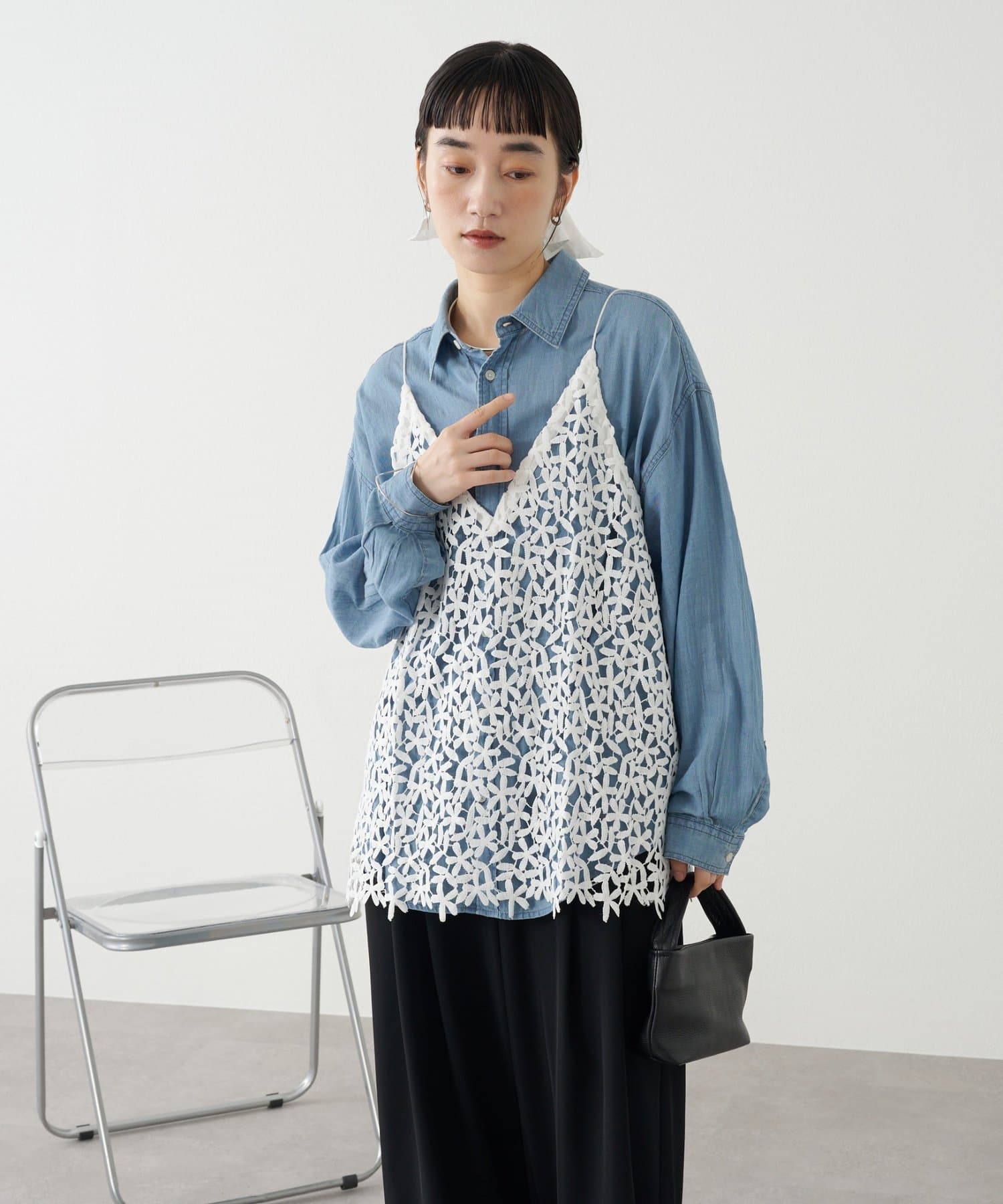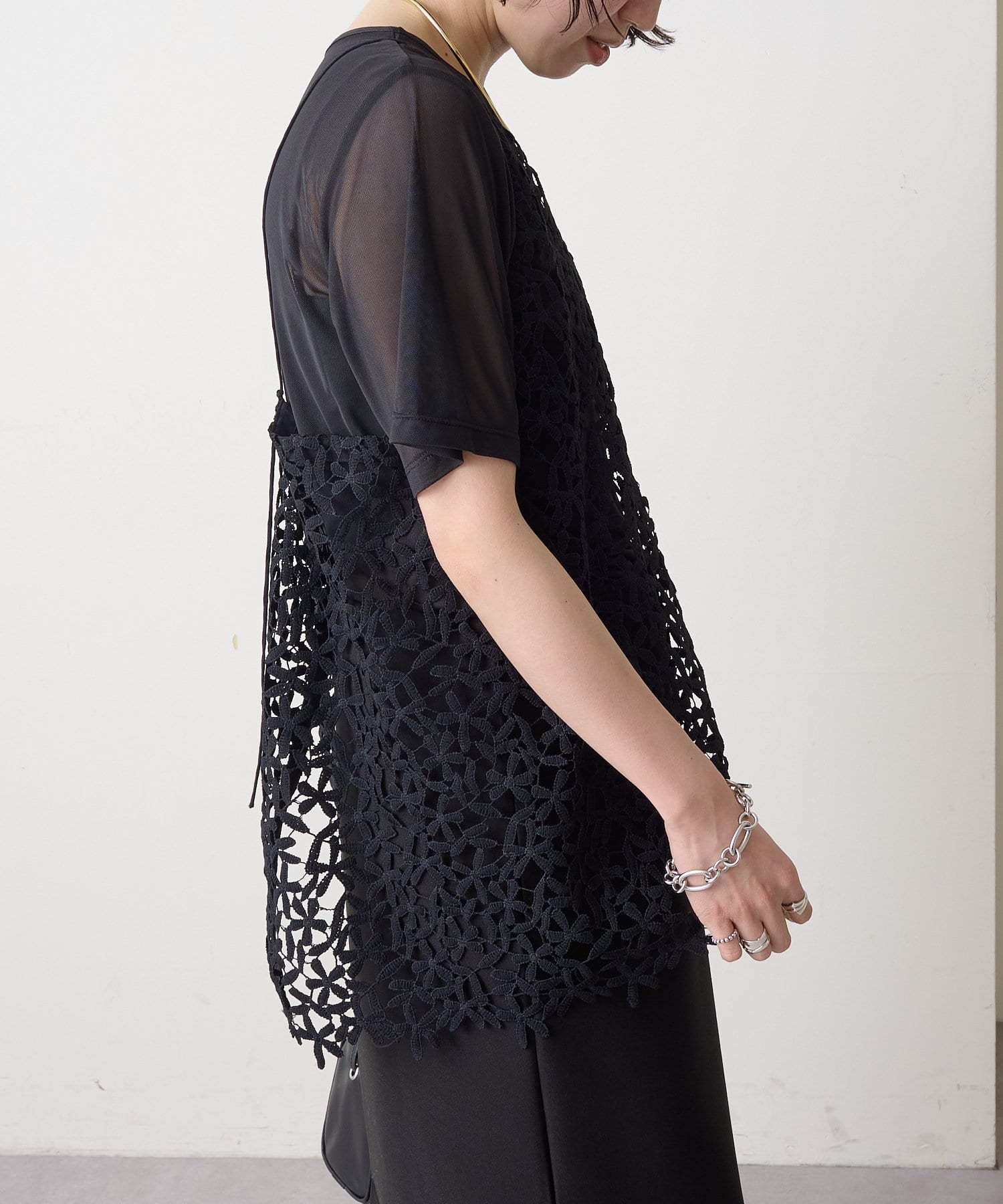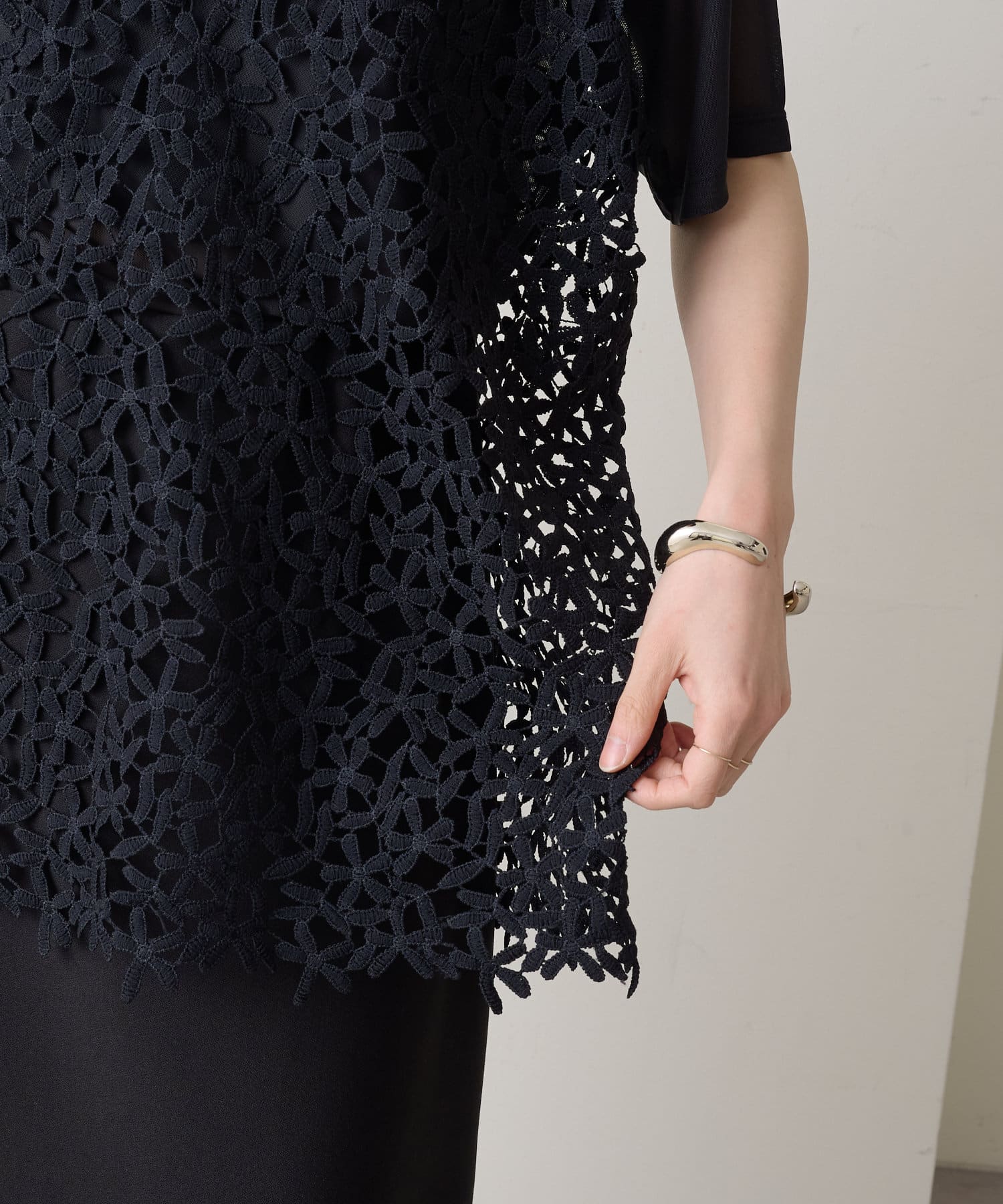 ・花模様のレースデザインがスタイリングを華やかに魅せてくれる一枚。