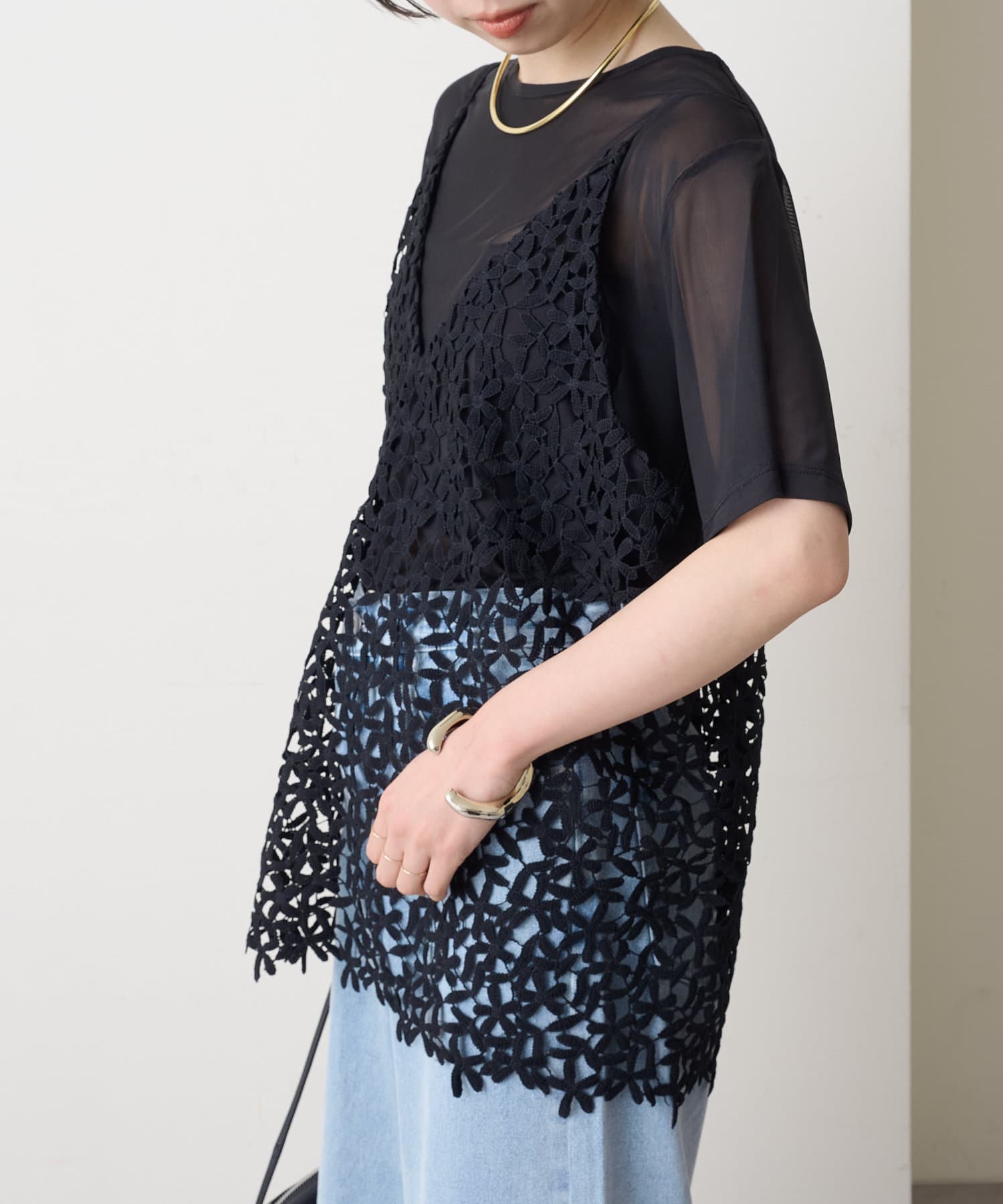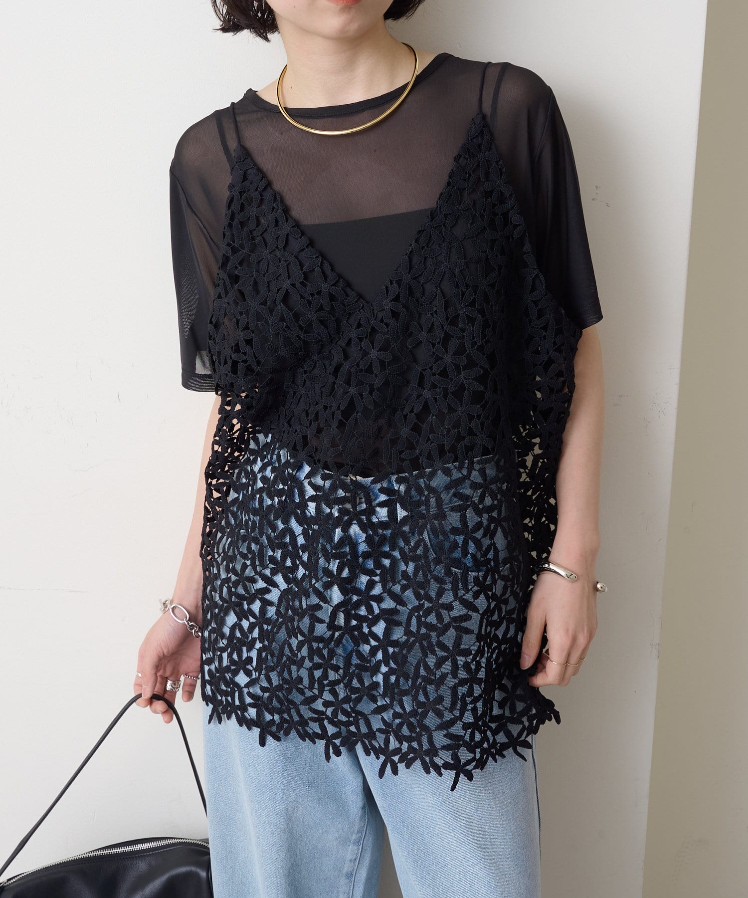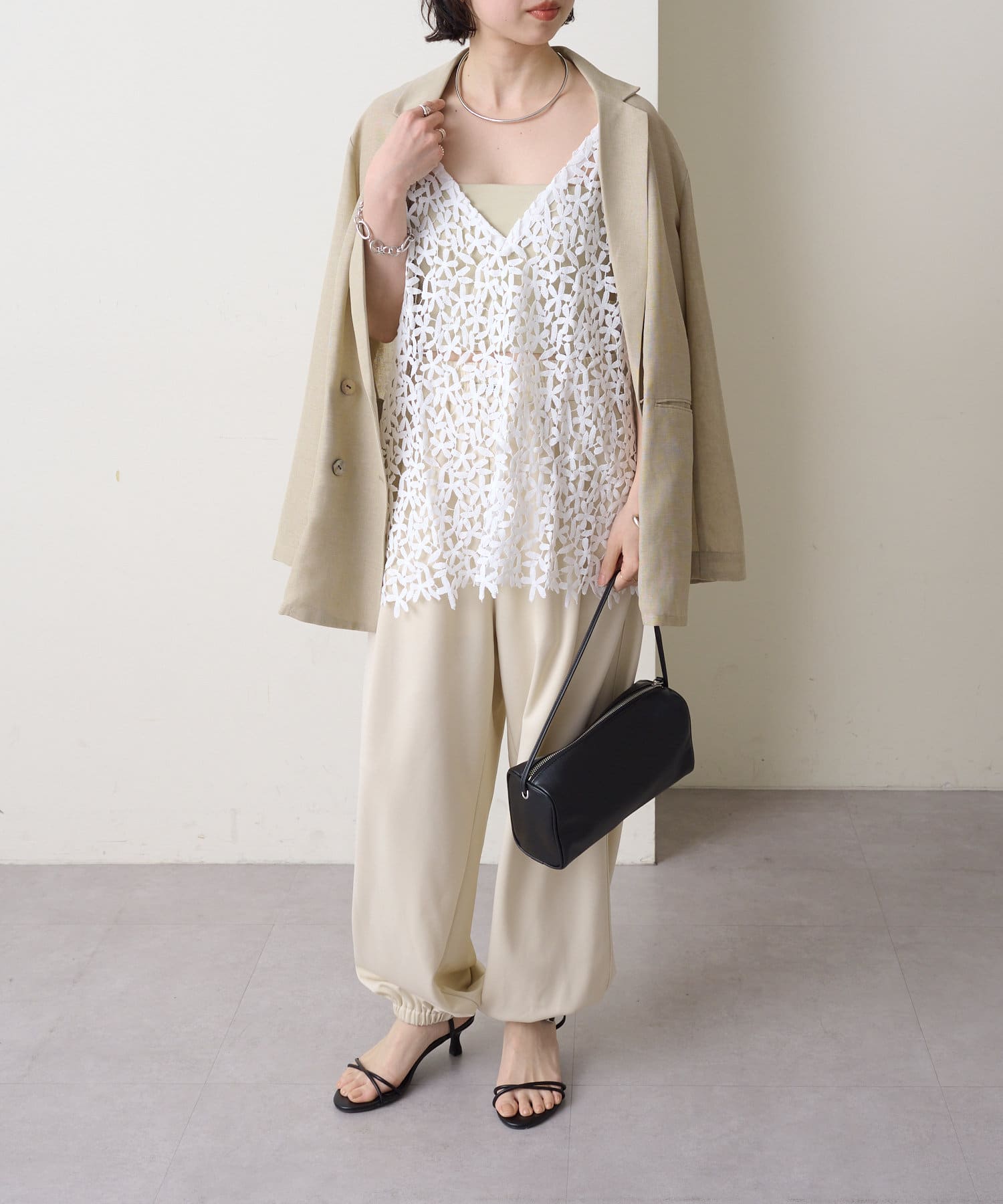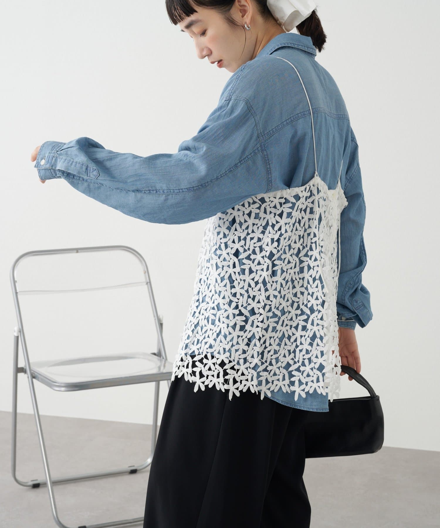 ・花模様のレースデザインがスタイリングを華やかに魅せてくれる一枚。
