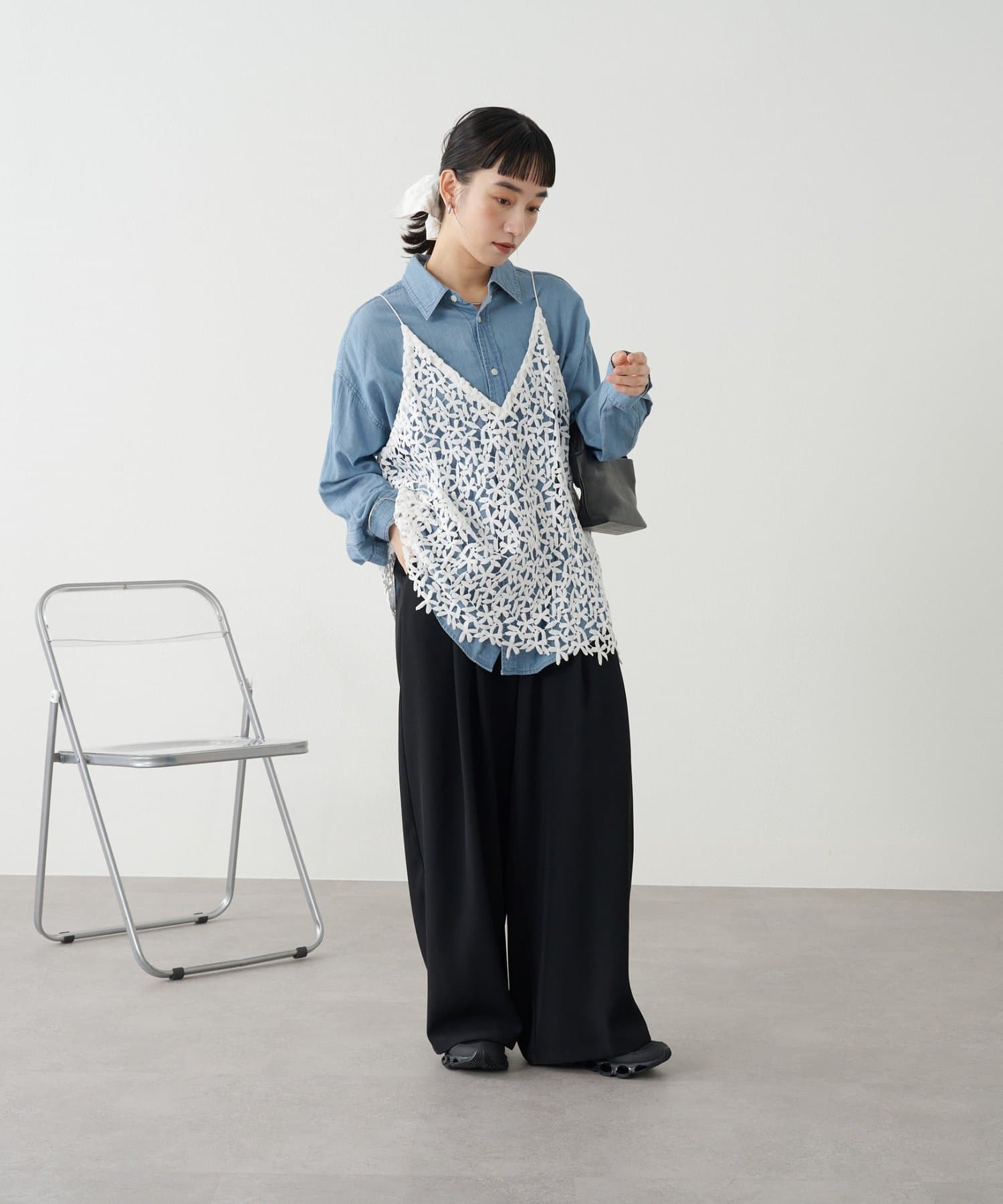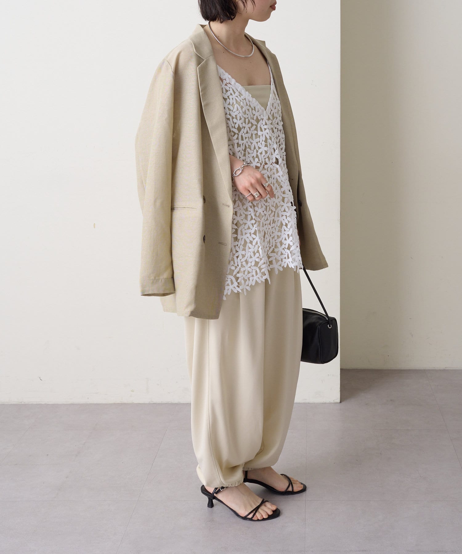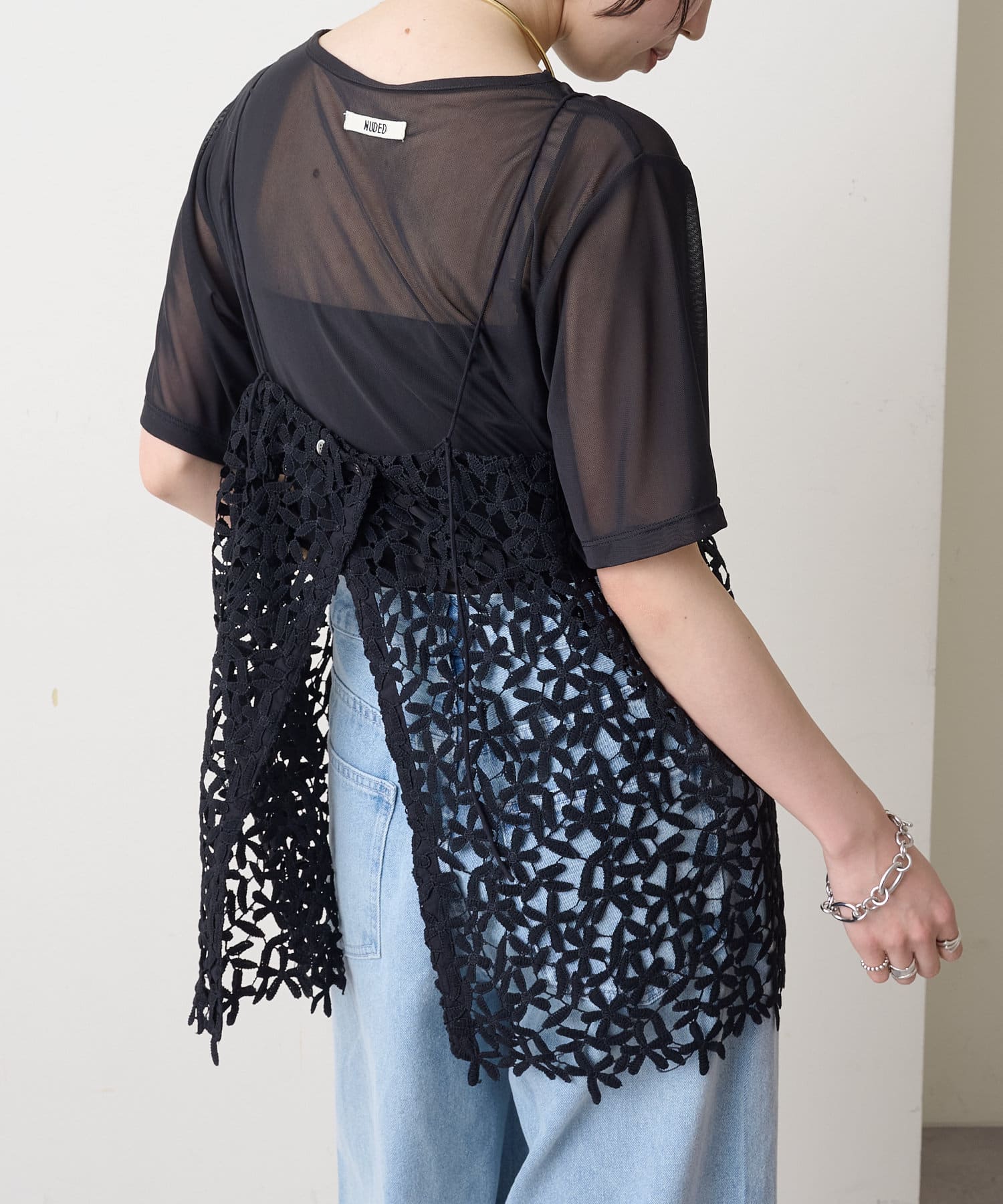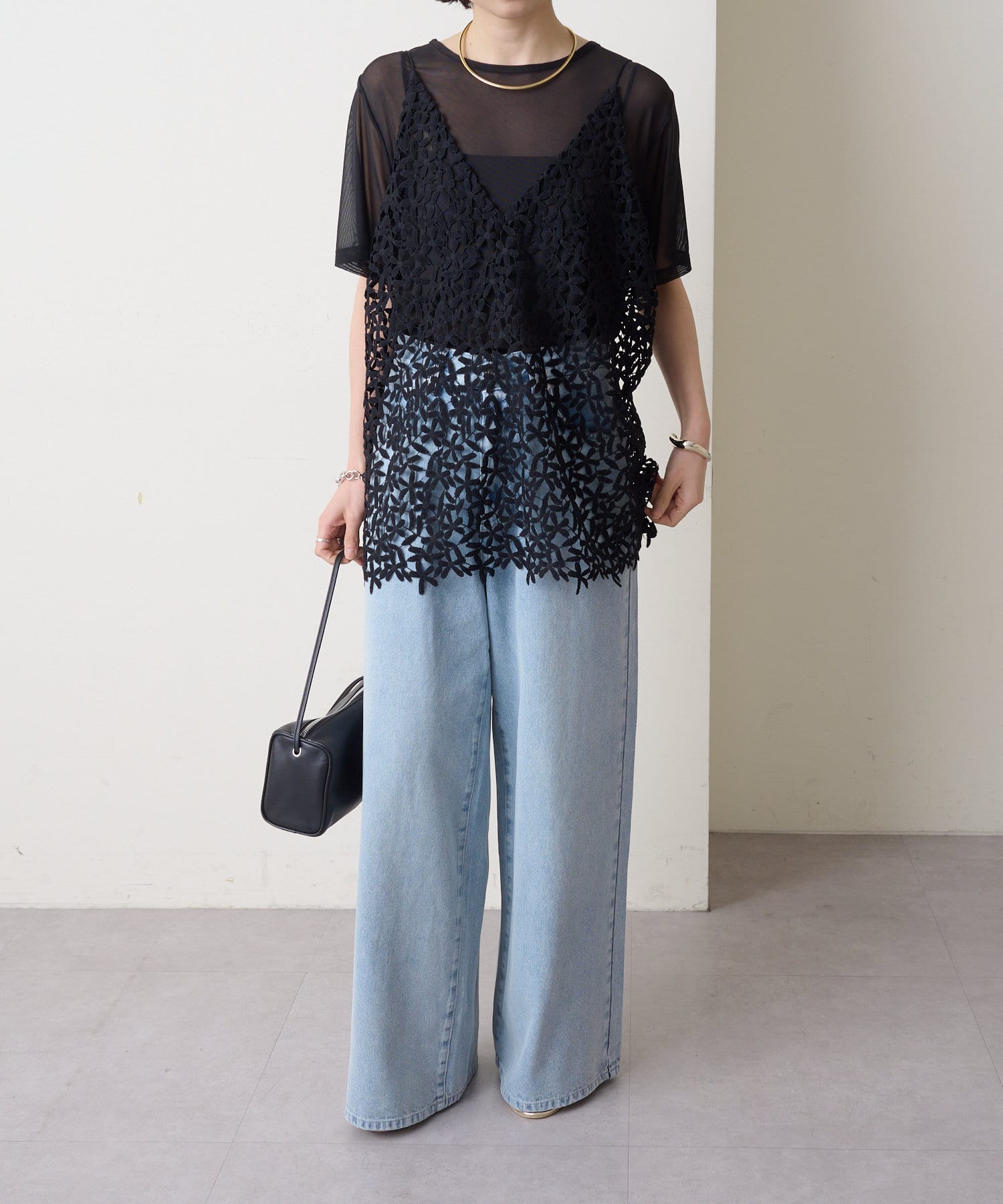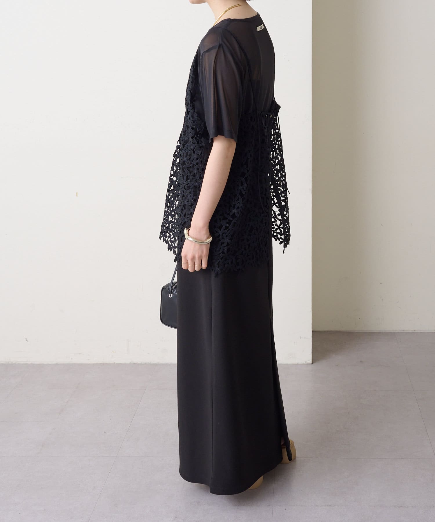 ・花模様のレースデザインがスタイリングを華やかに魅せてくれる一枚。