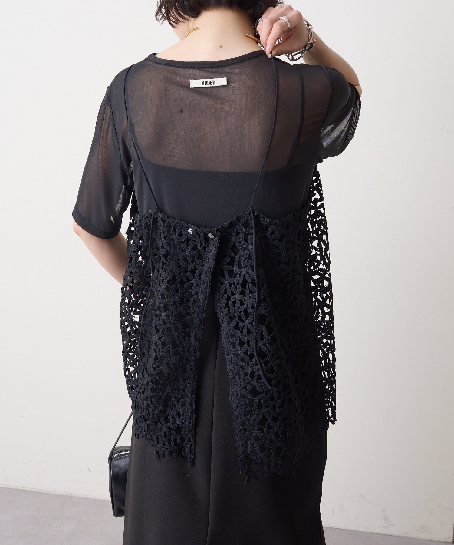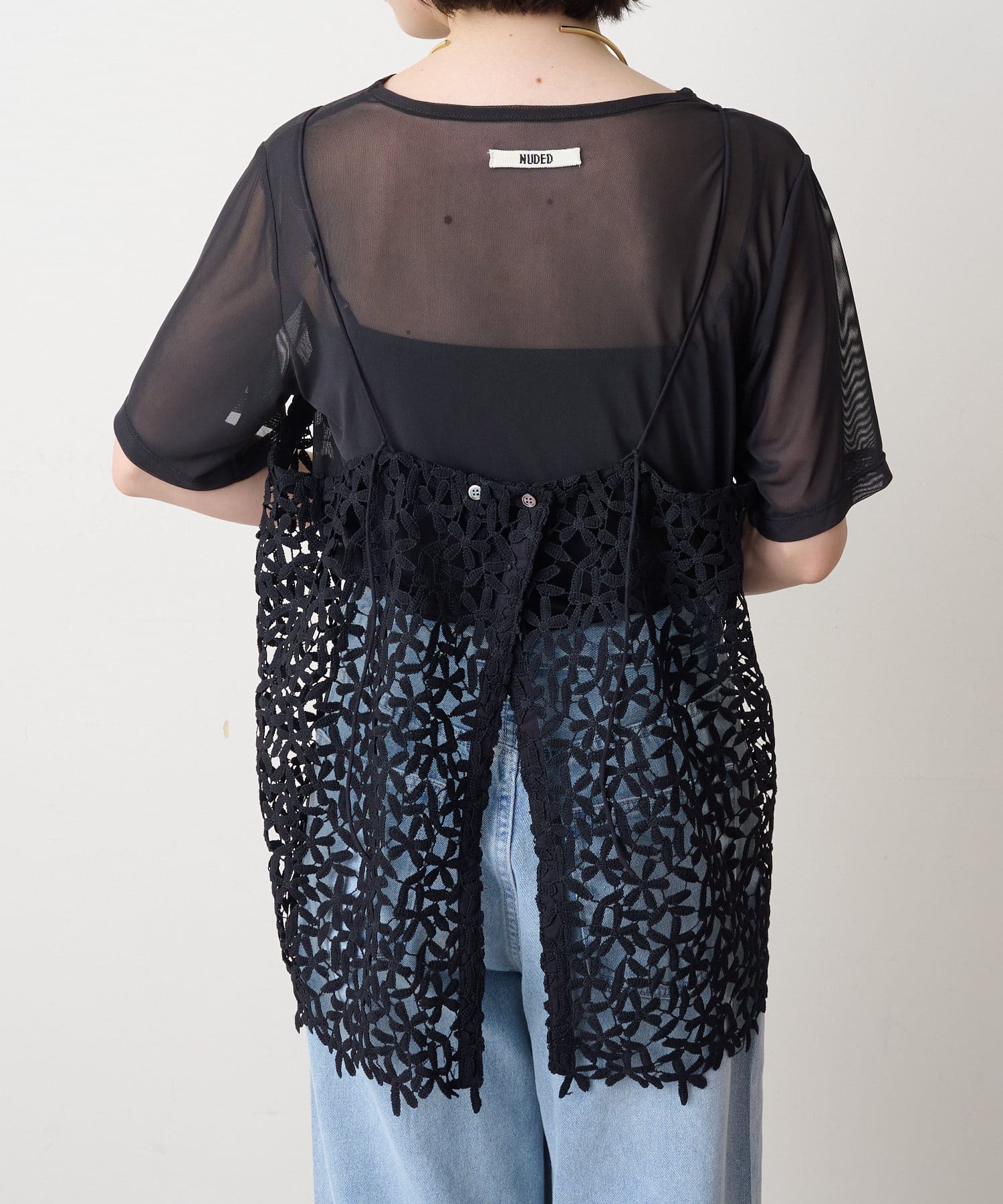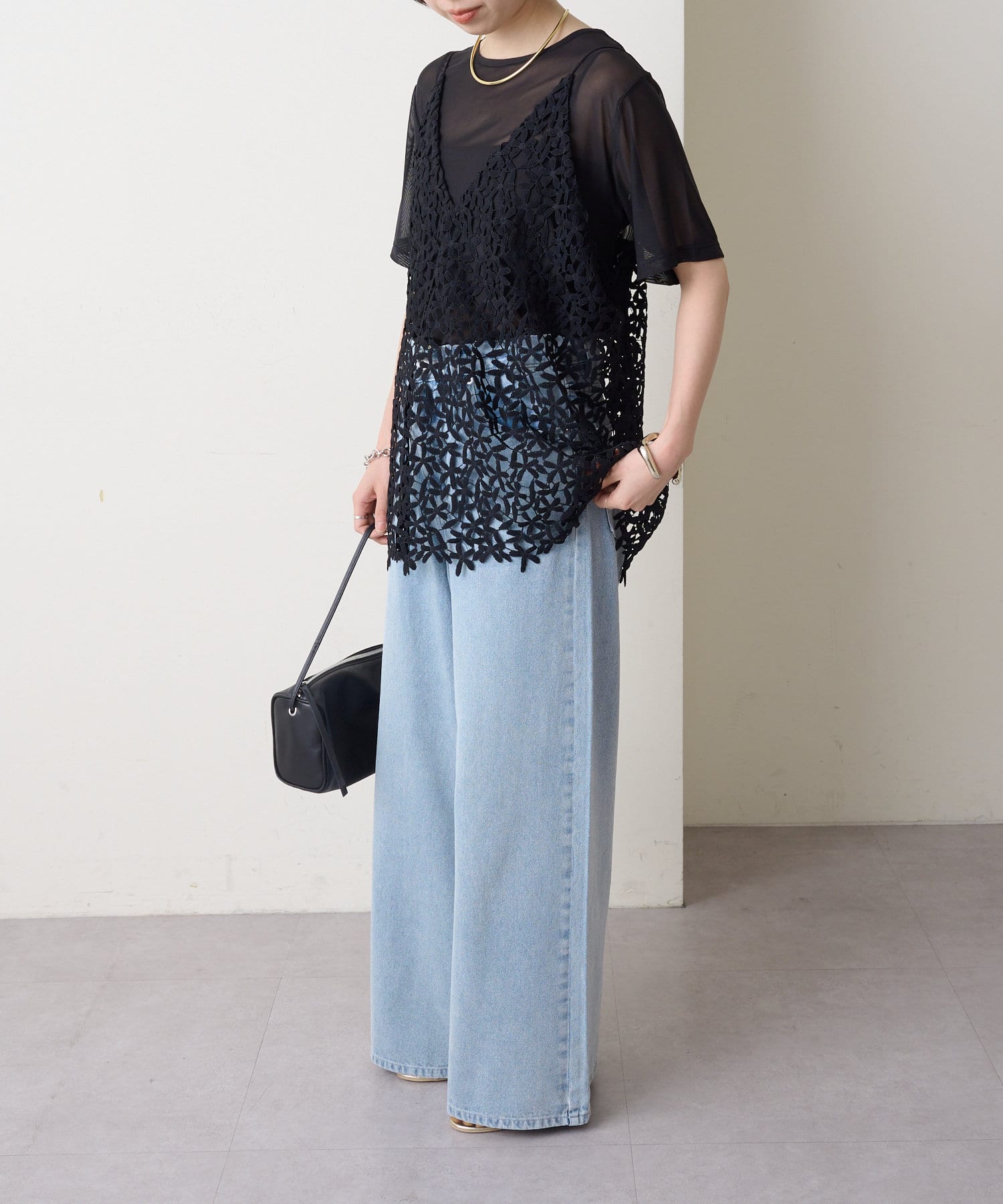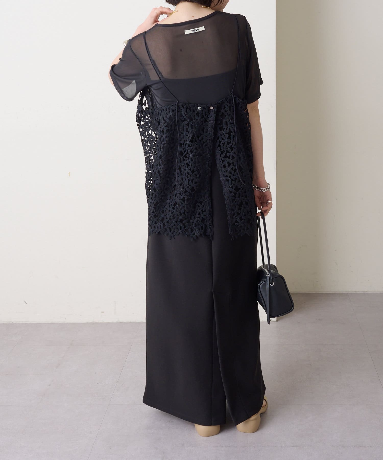 ・花模様のレースデザインがスタイリングを華やかに魅せてくれる一枚。