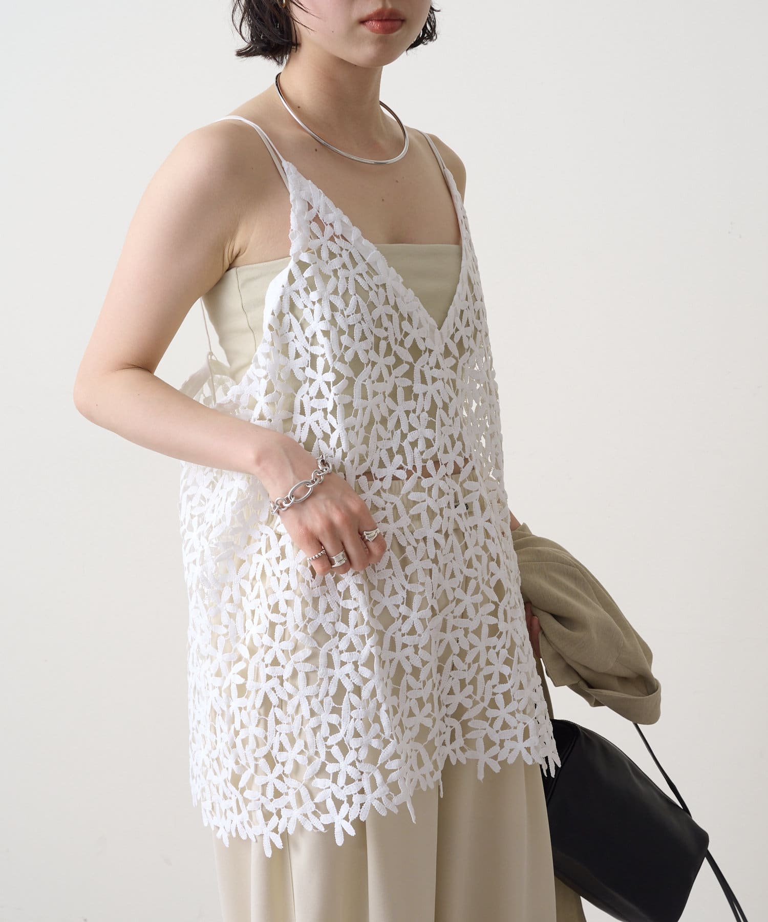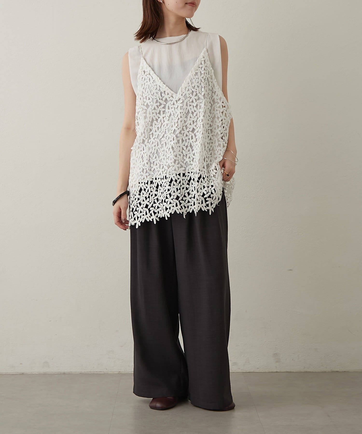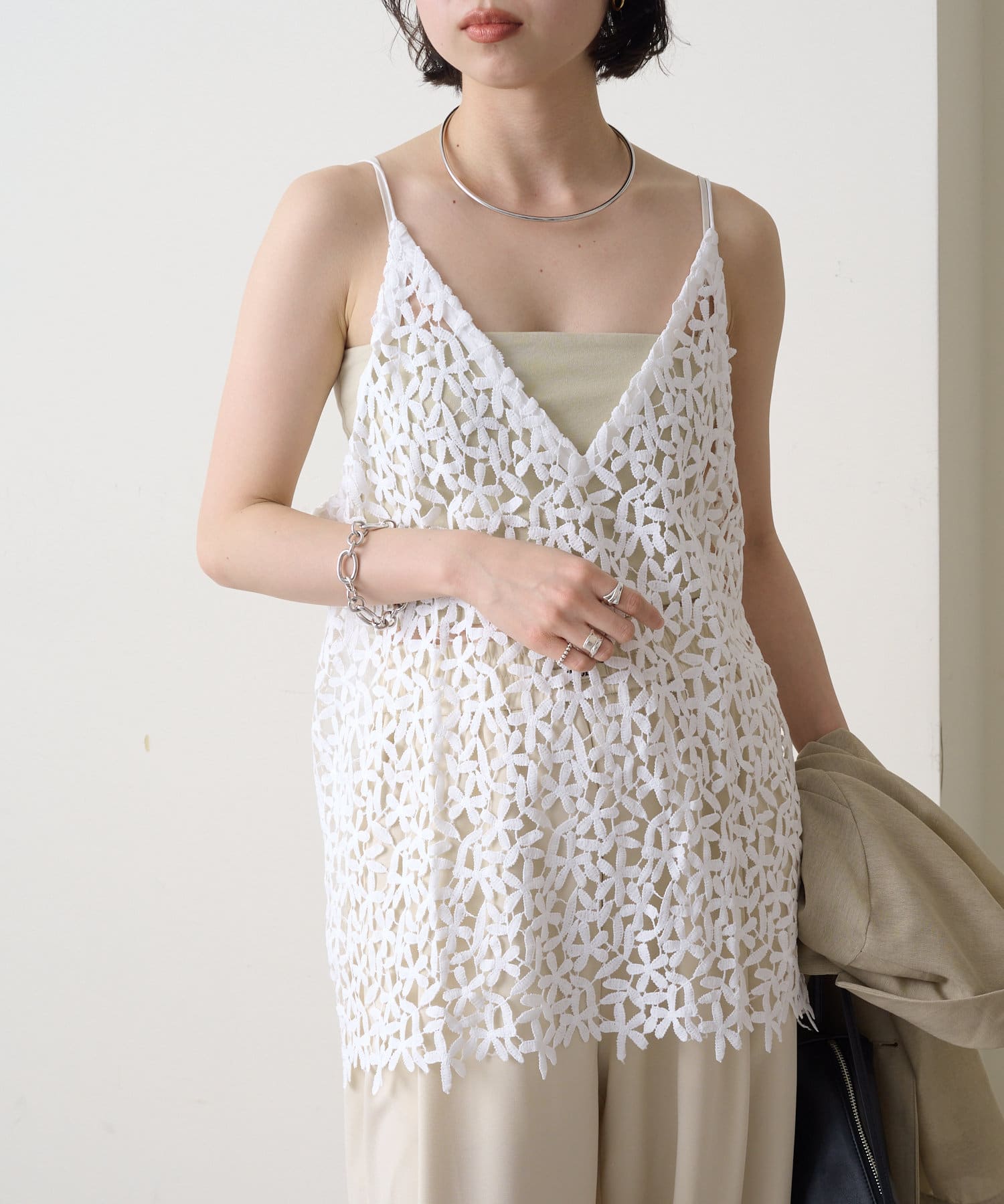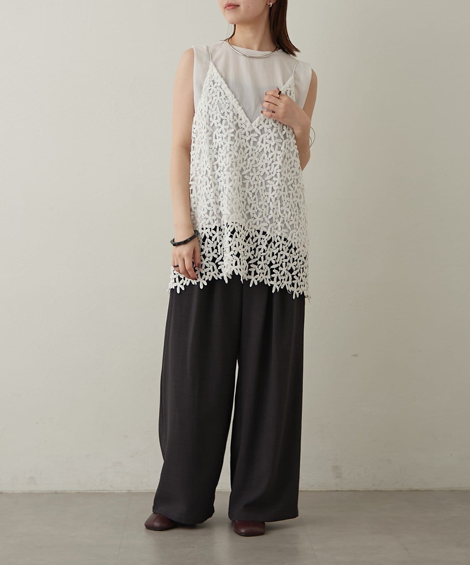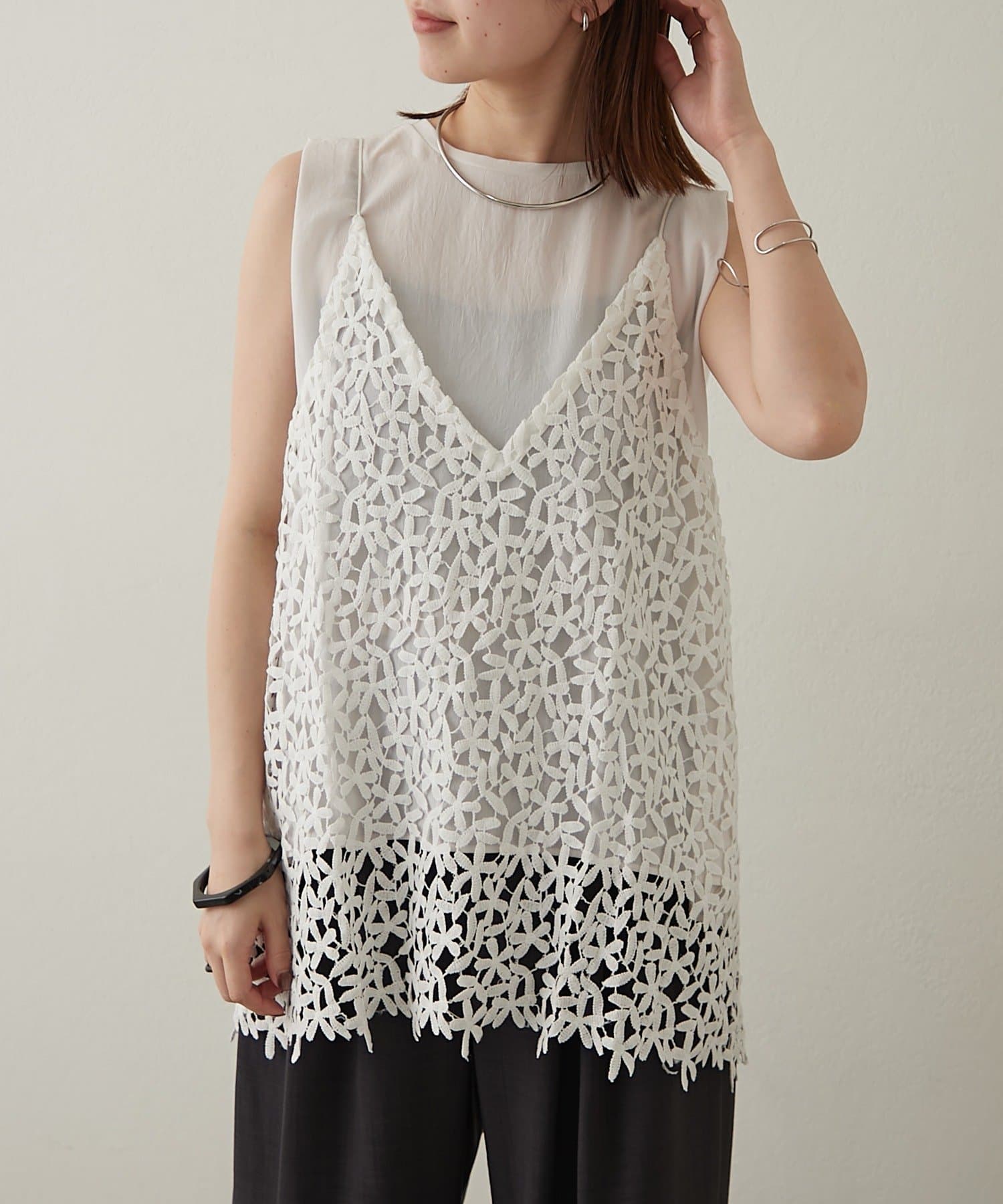 トレンドライクなレイヤードスタイルが叶うレースキャミソール