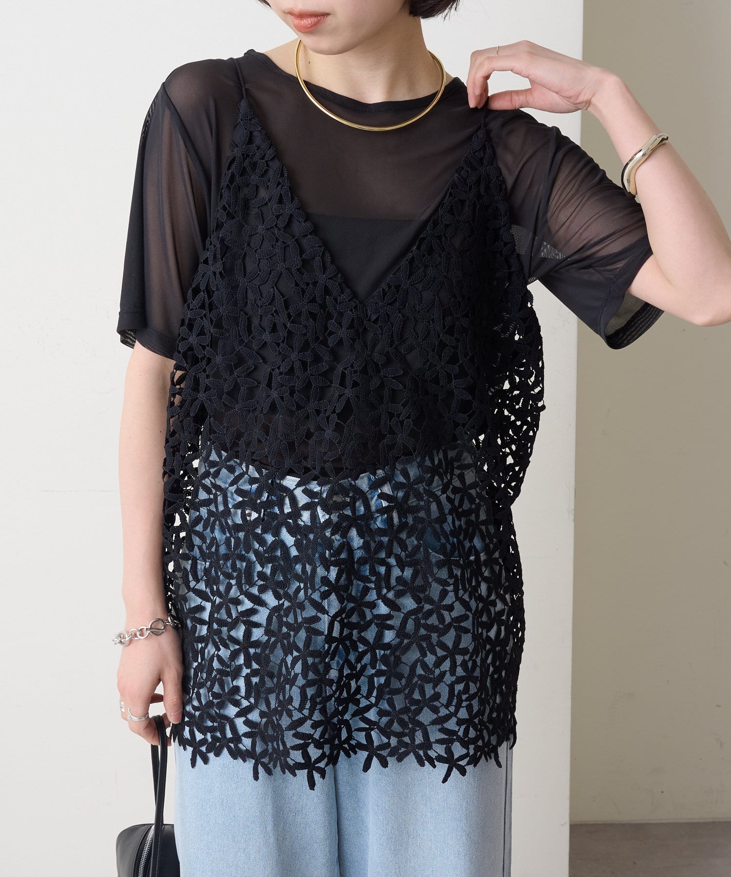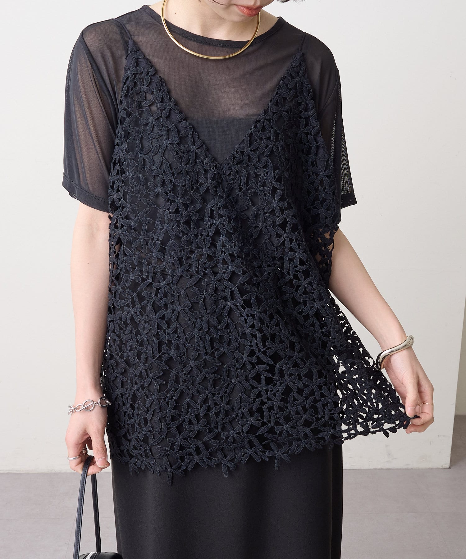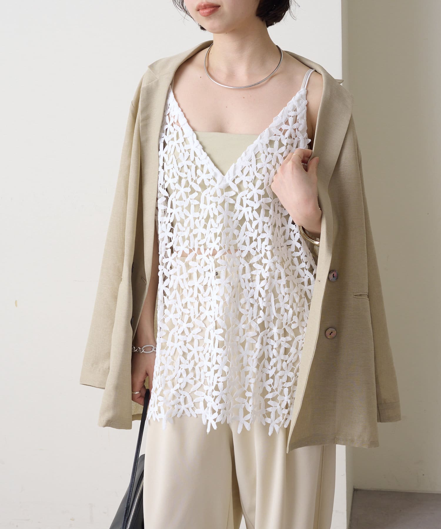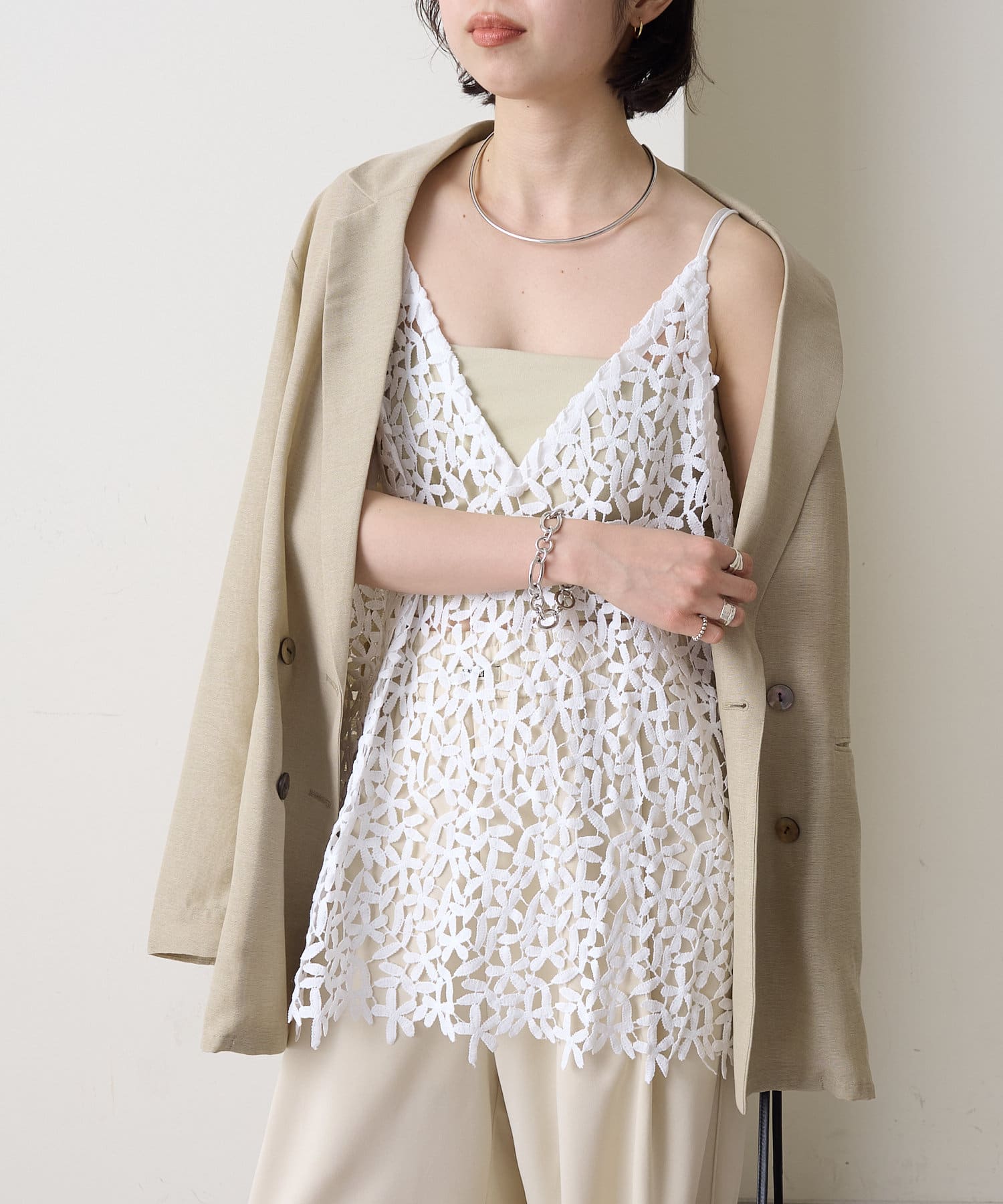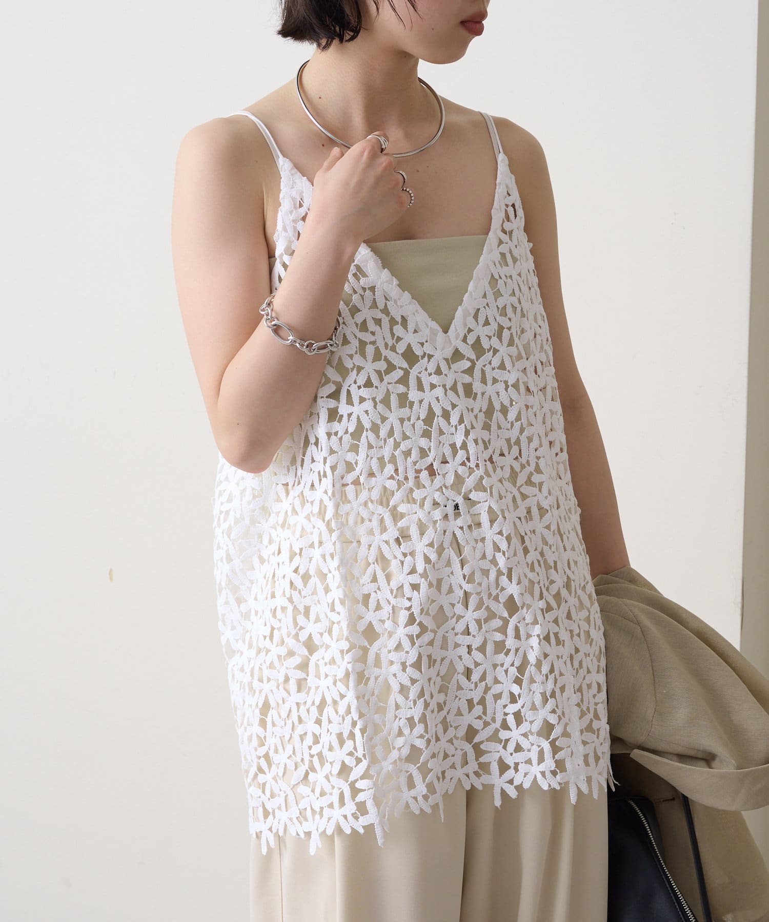 トレンドライクなレイヤードスタイルが叶うレースキャミソール