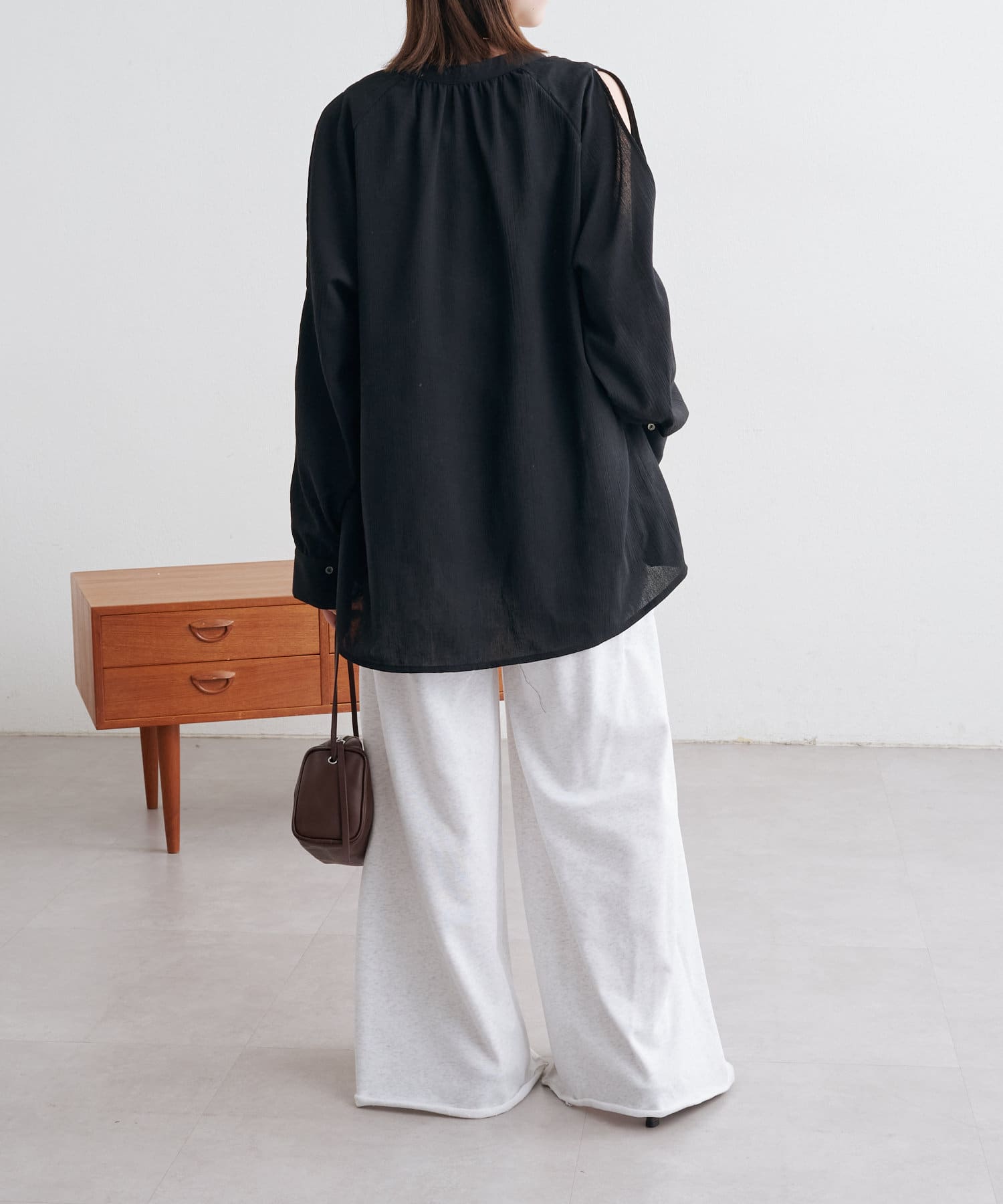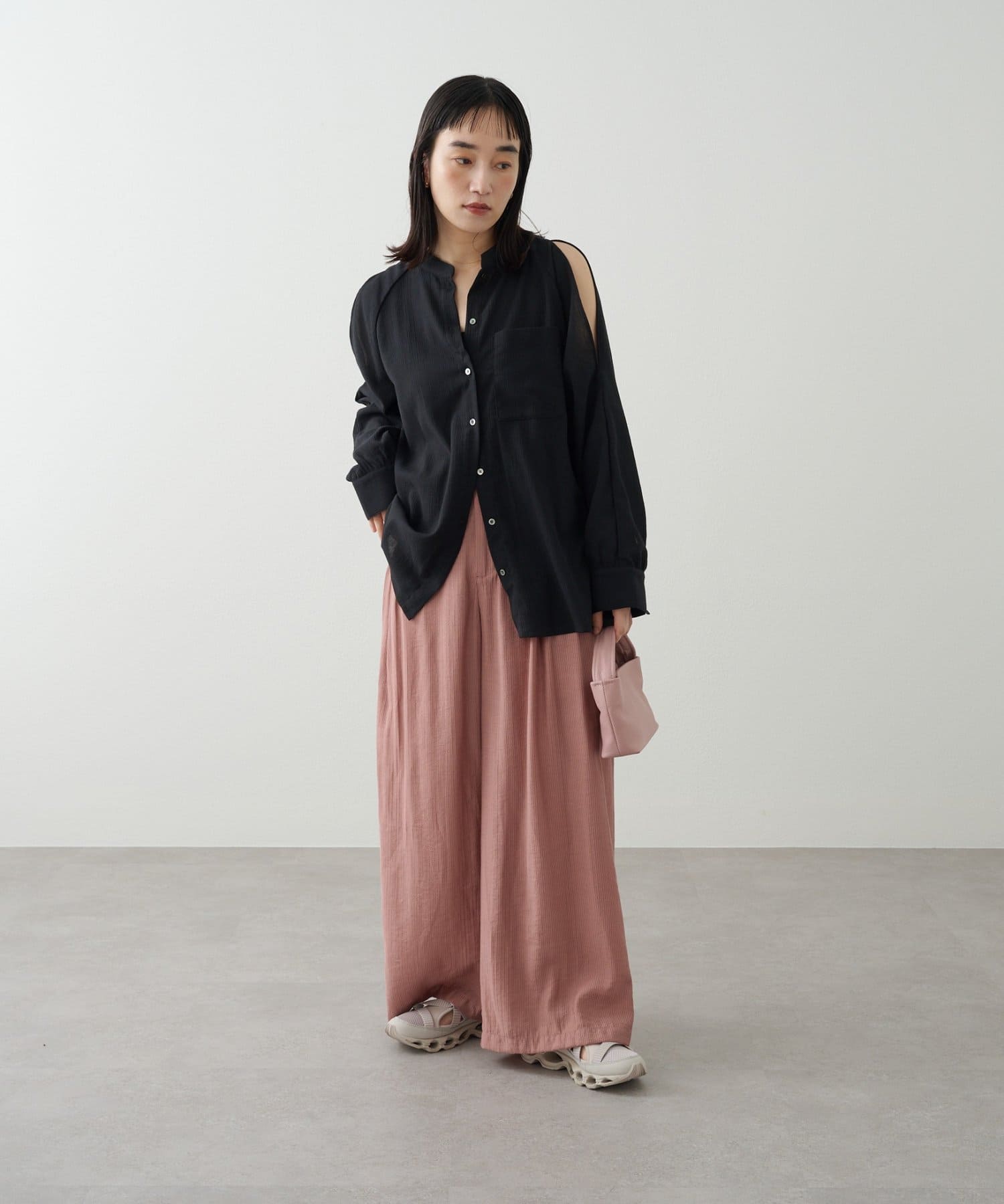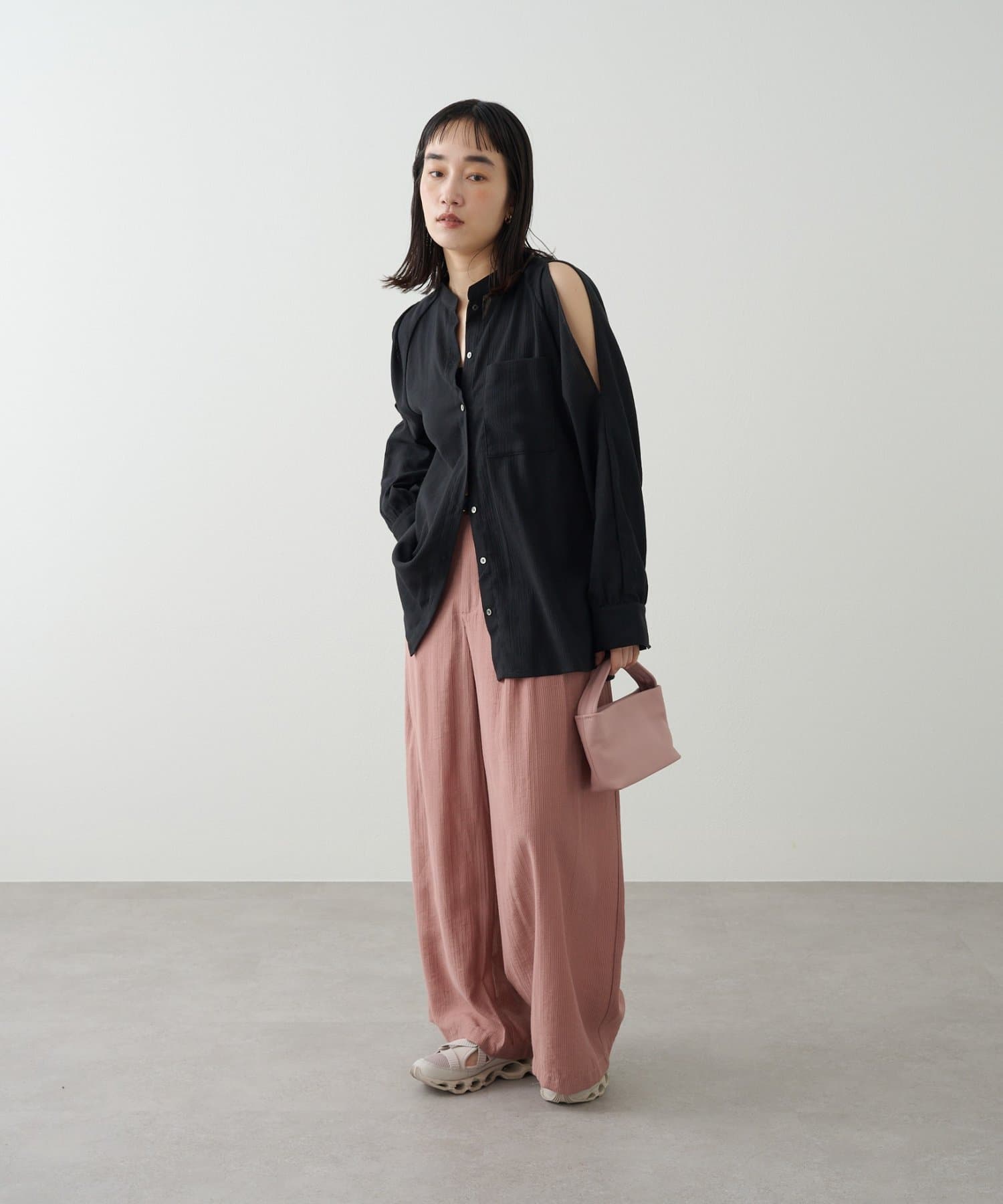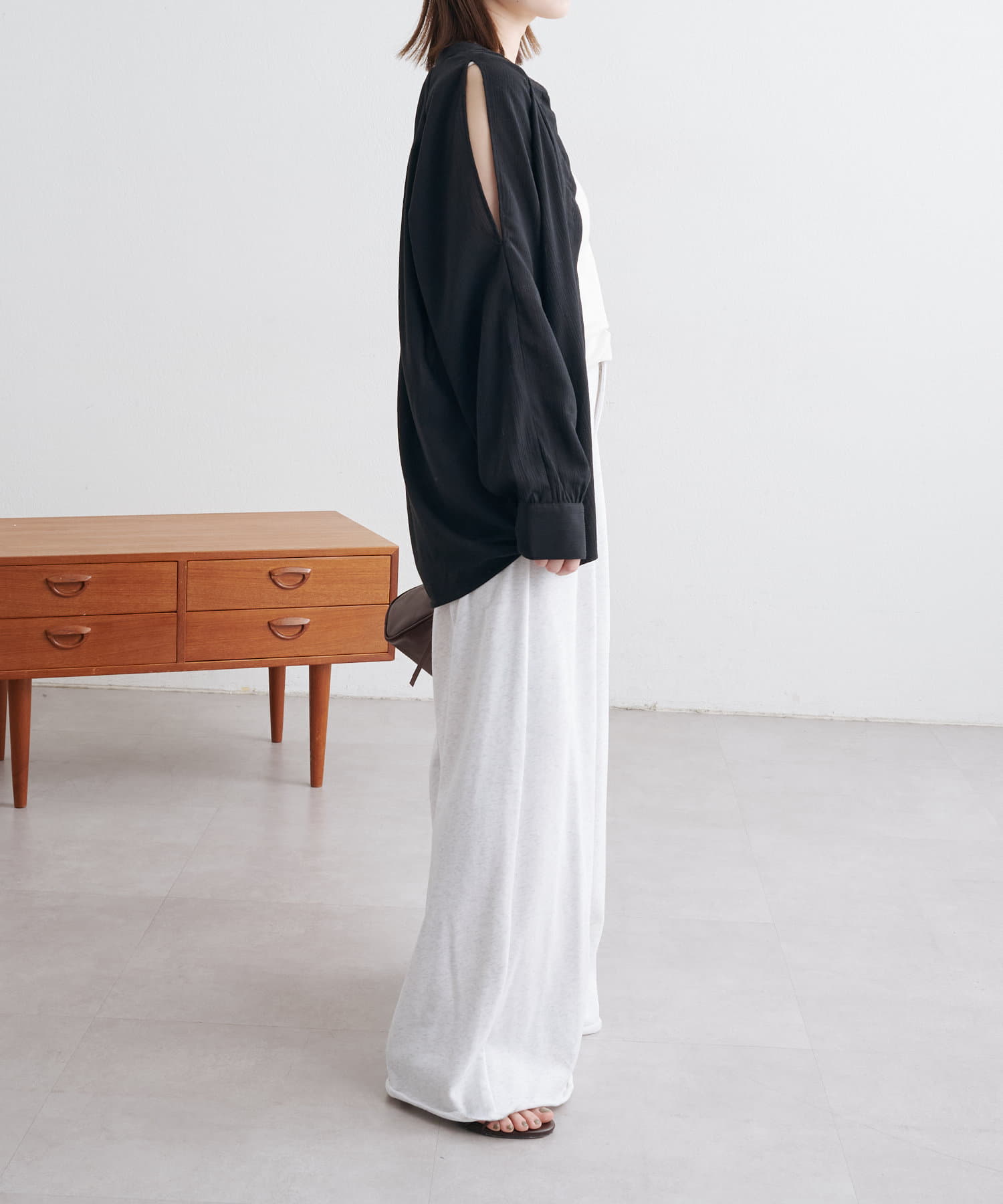 ショルダー部分のスリットがポイントの商品なのでシンプルなボトムスとの相性◎