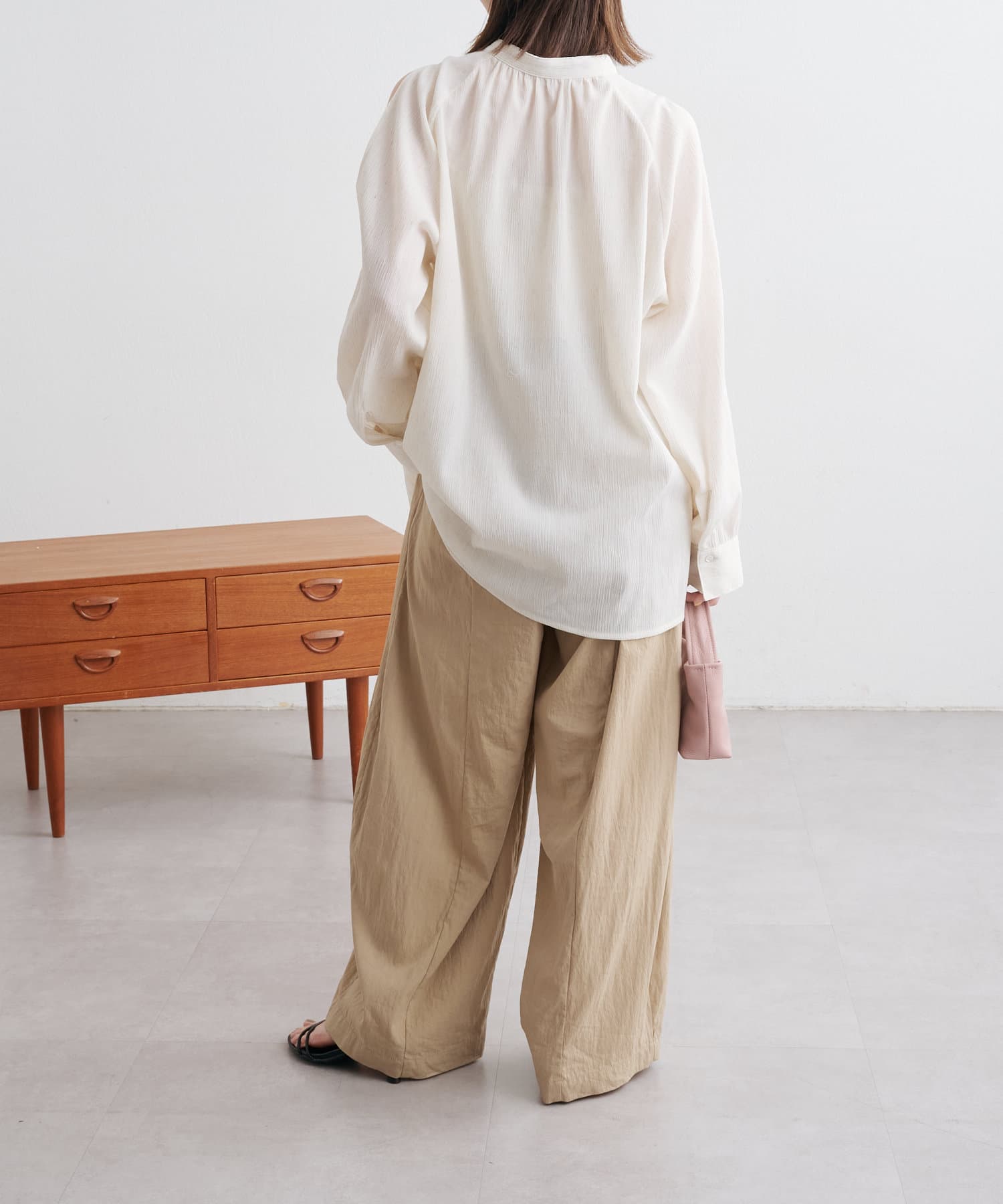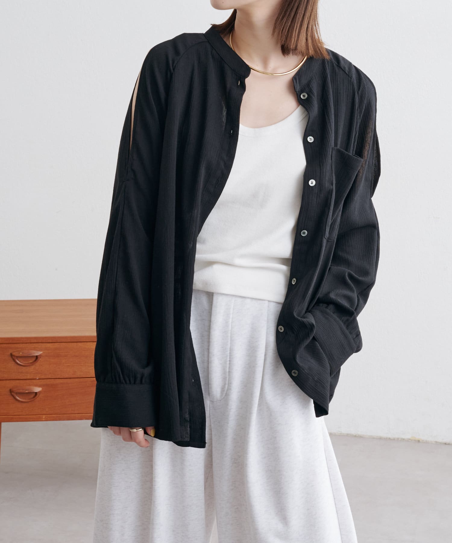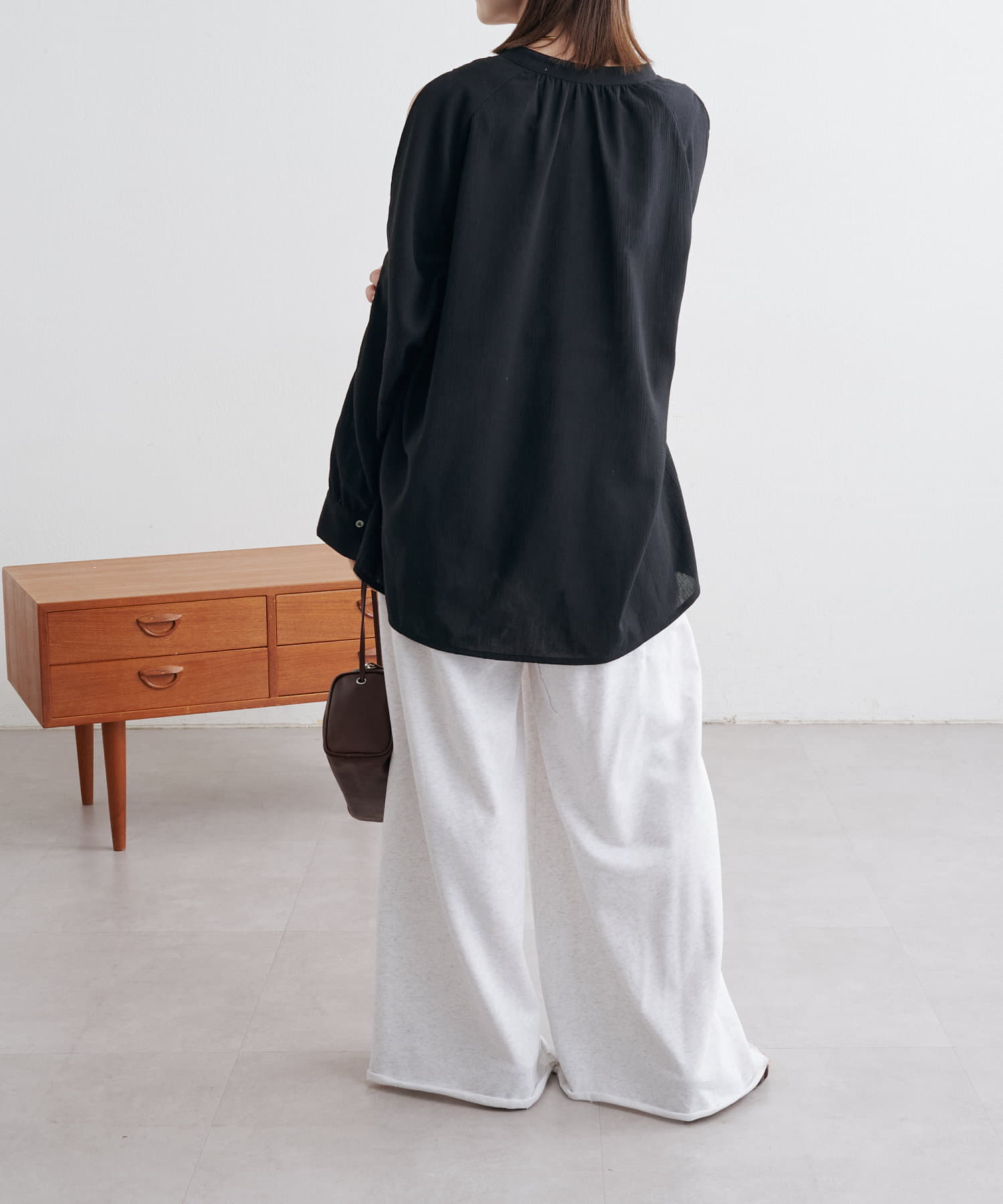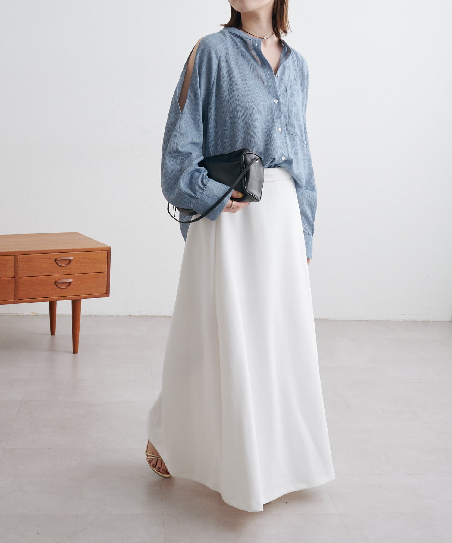 ショルダー部分のスリットがポイントの商品なのでシンプルなボトムスとの相性◎