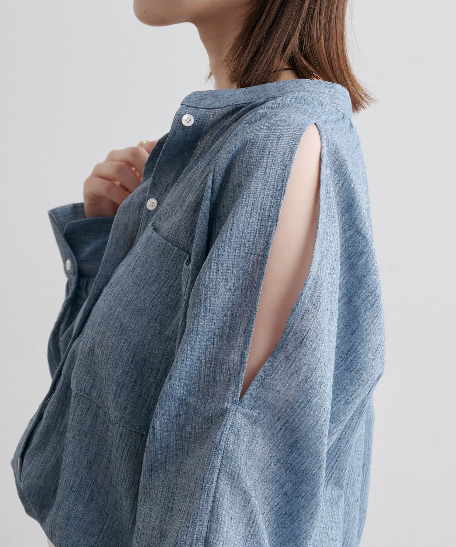 ・袖部分から腕を出してノースリーブとしてアレンジする着こなしも夏時期はおすすめです!