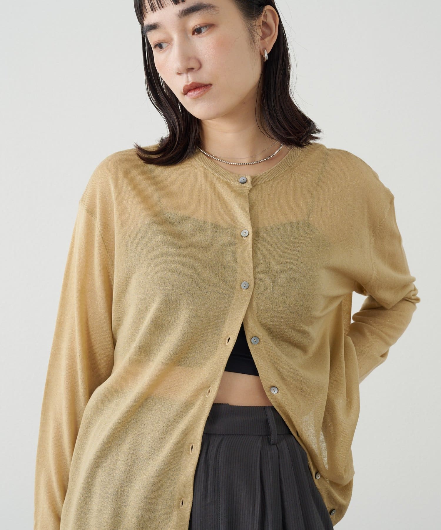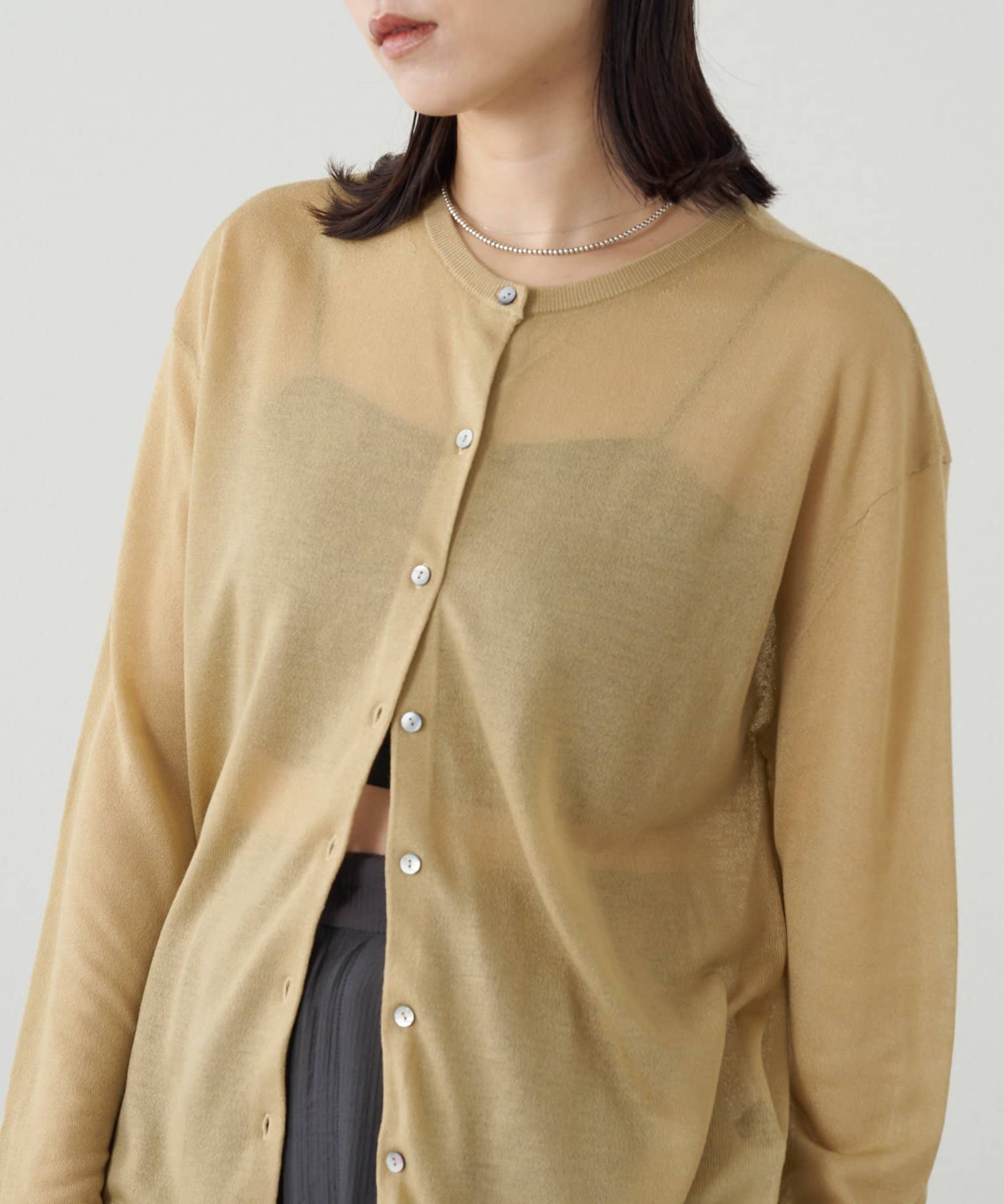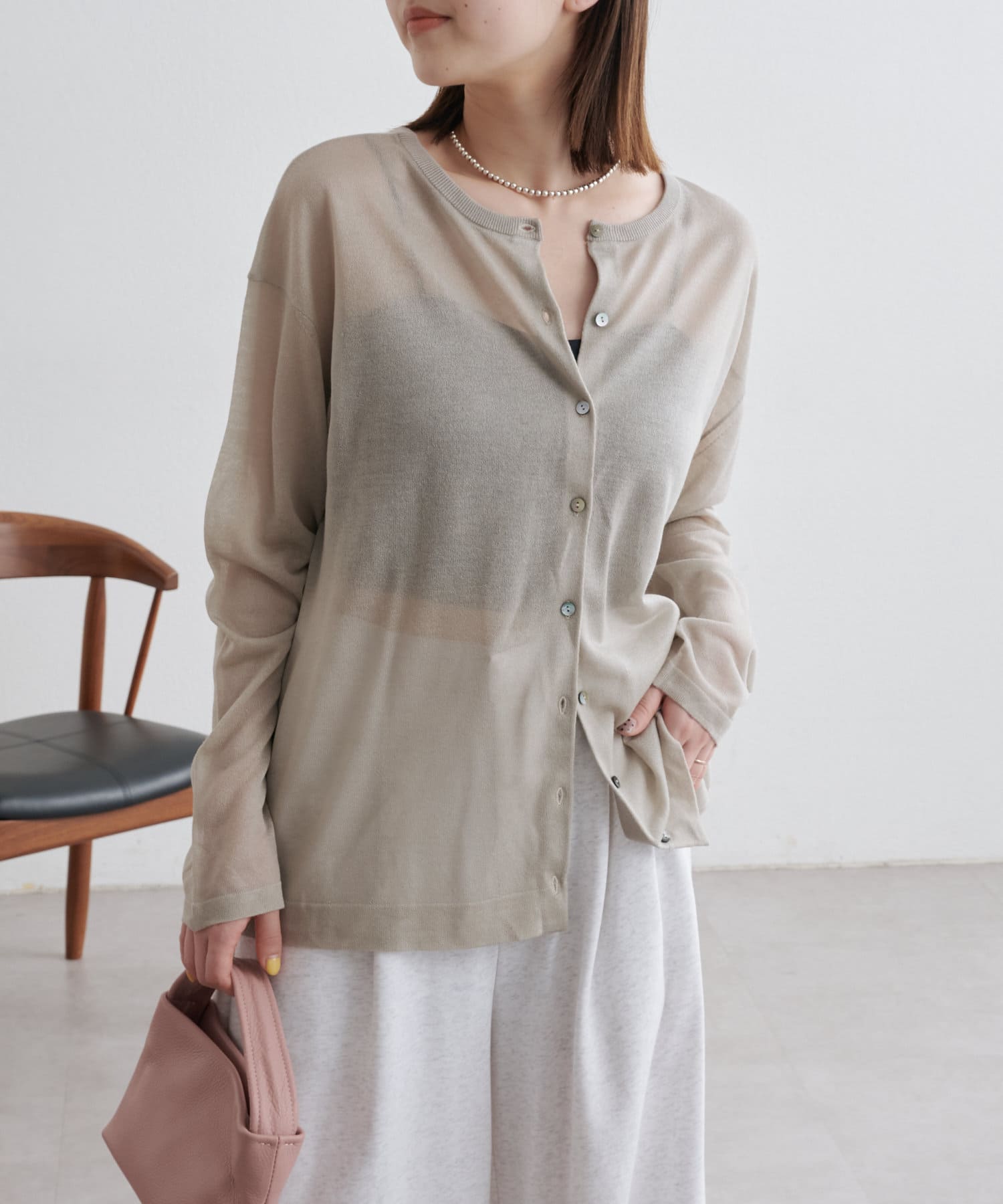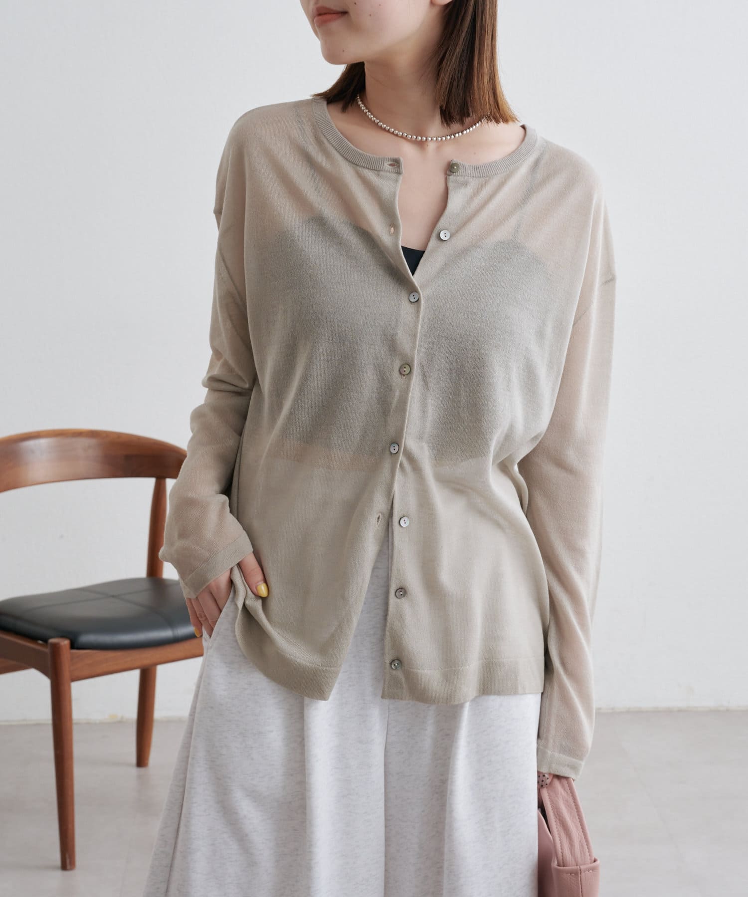 ・さらっと一枚で着こなしたいシアー素材のカーディガン。