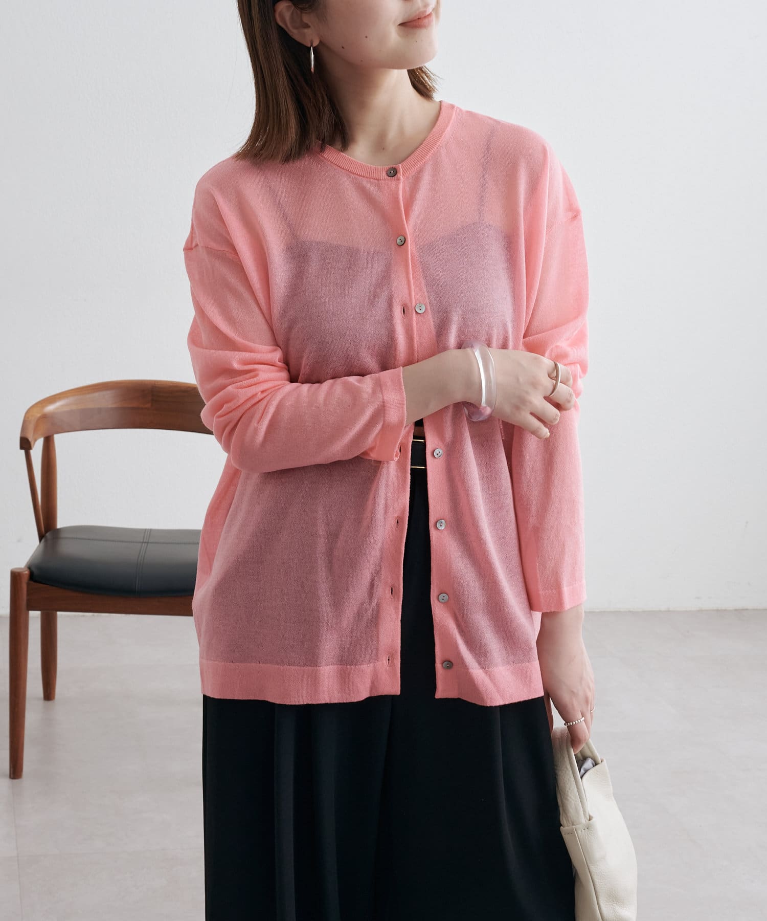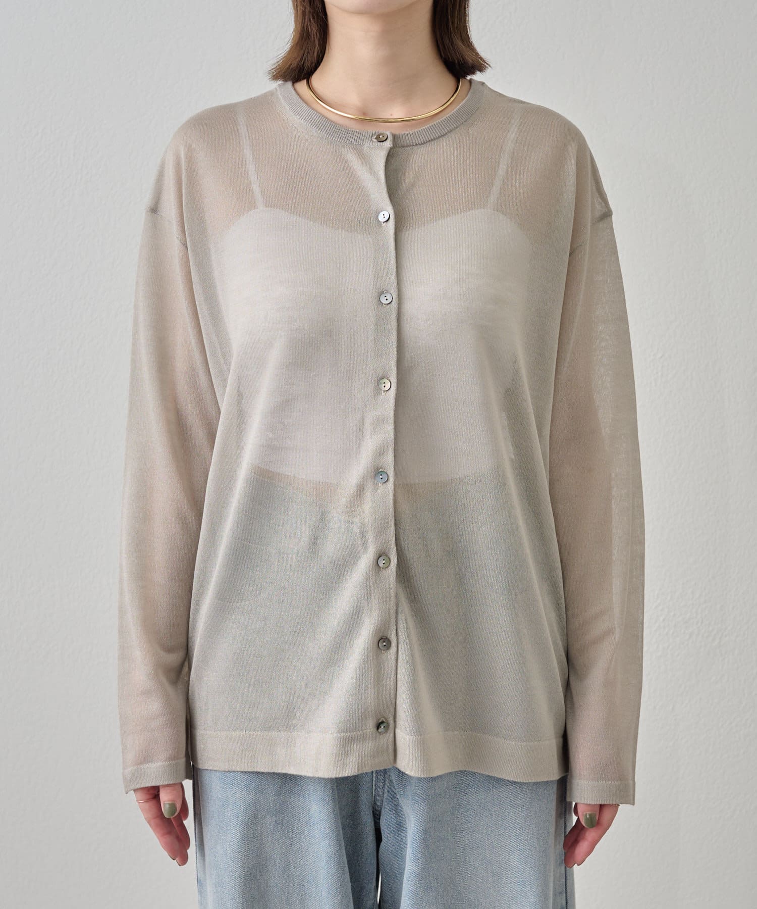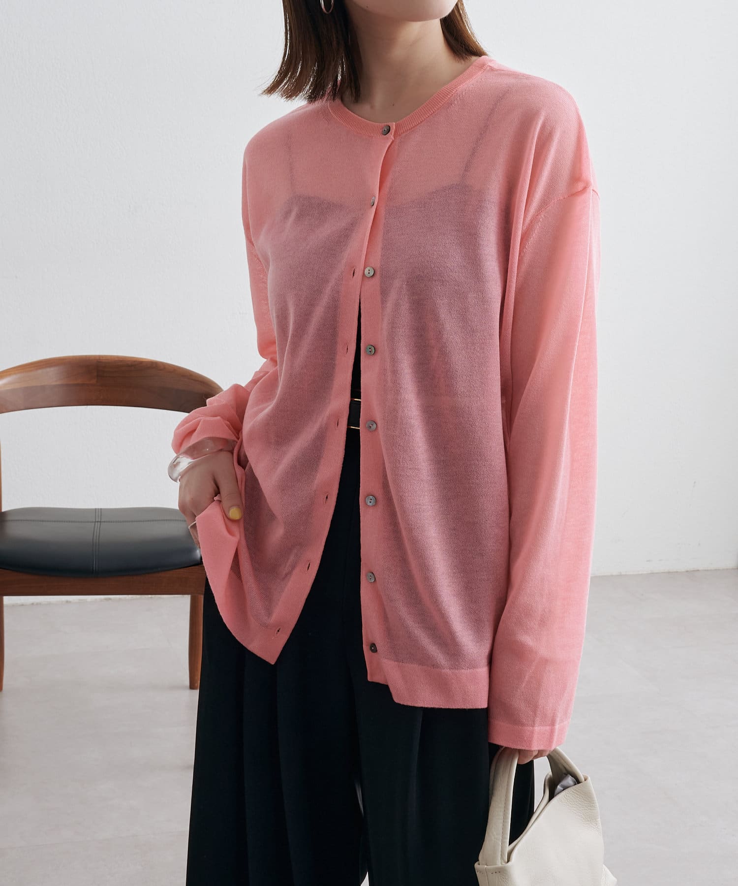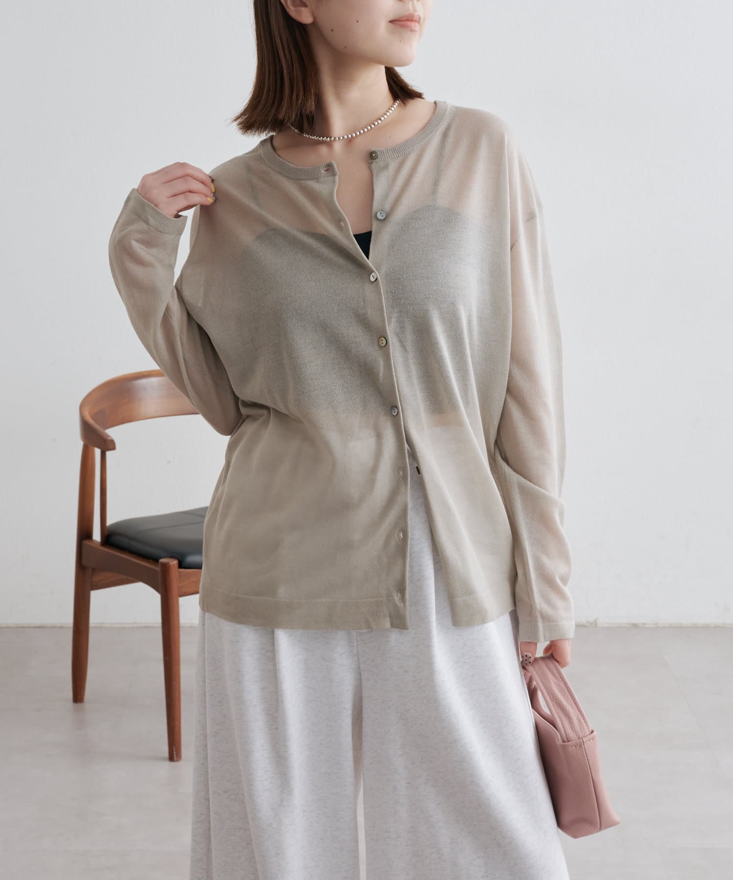 ・さらっと一枚で着こなしたいシアー素材のカーディガン。