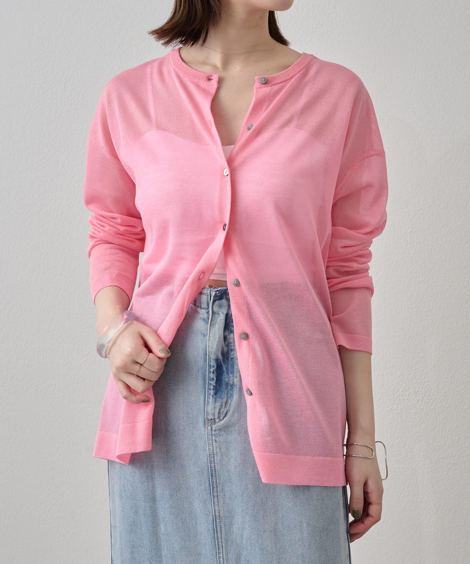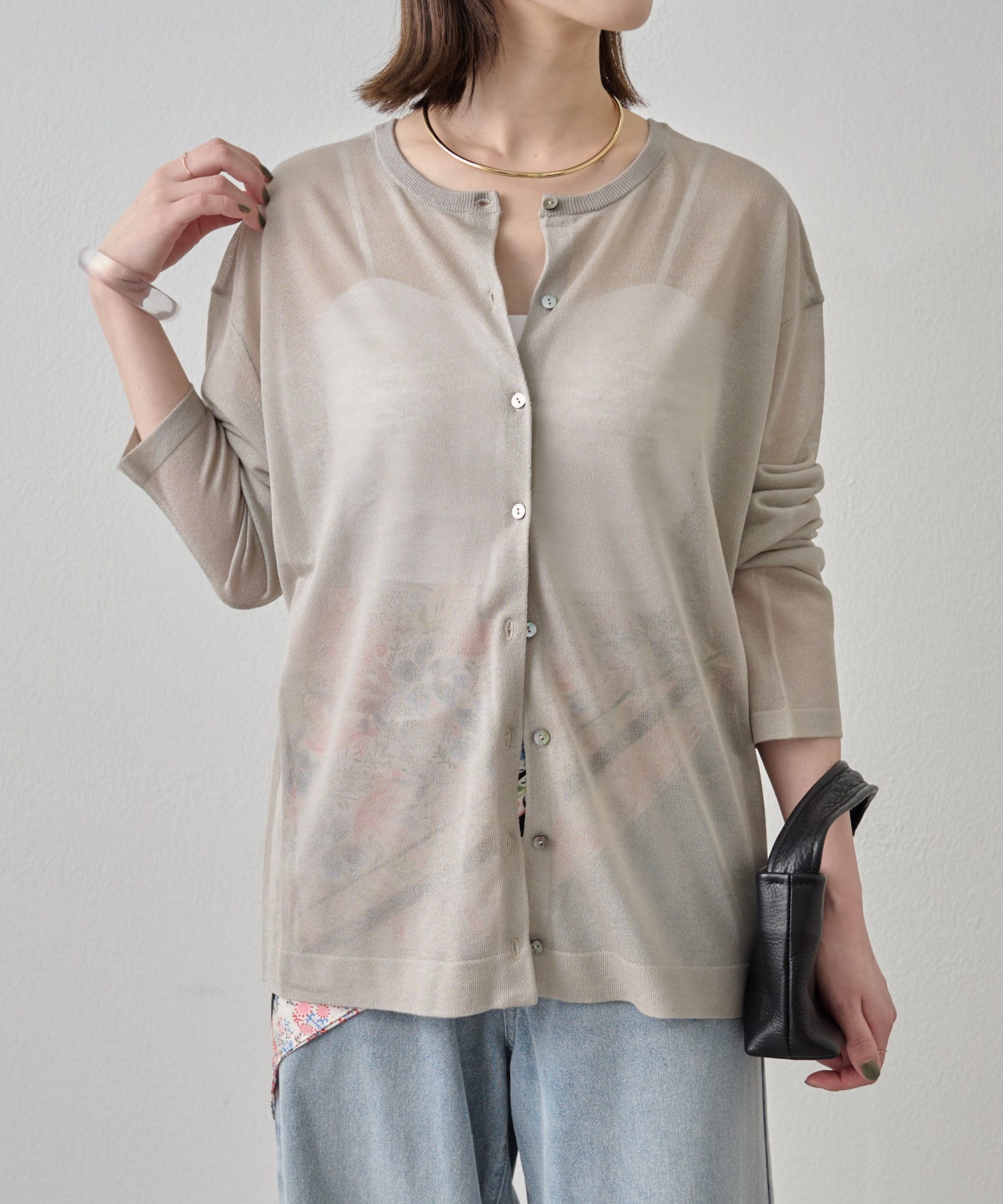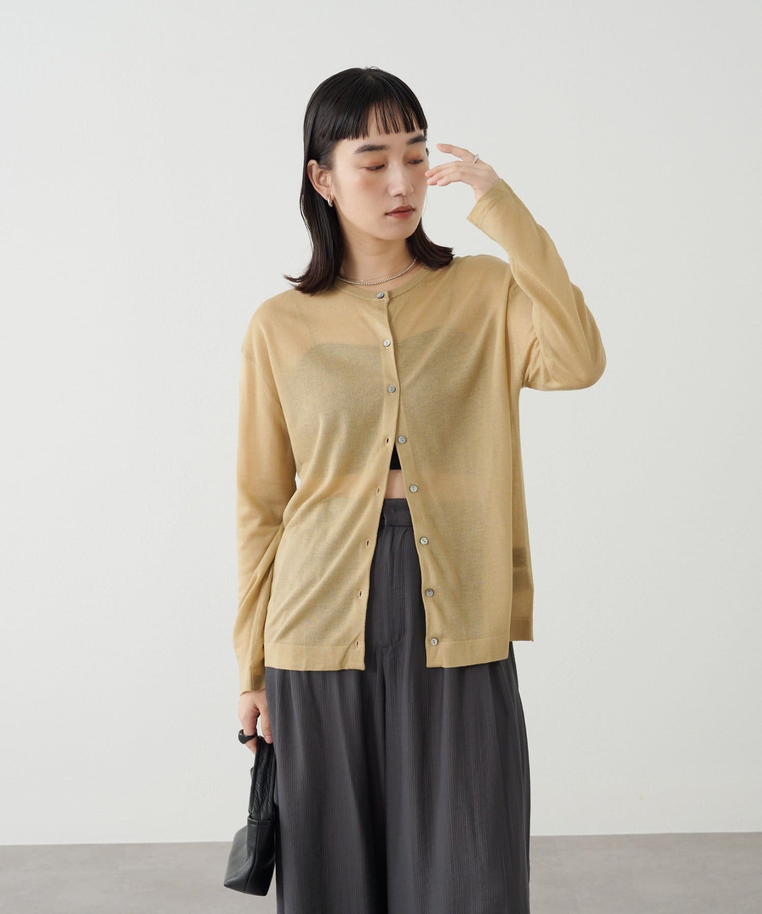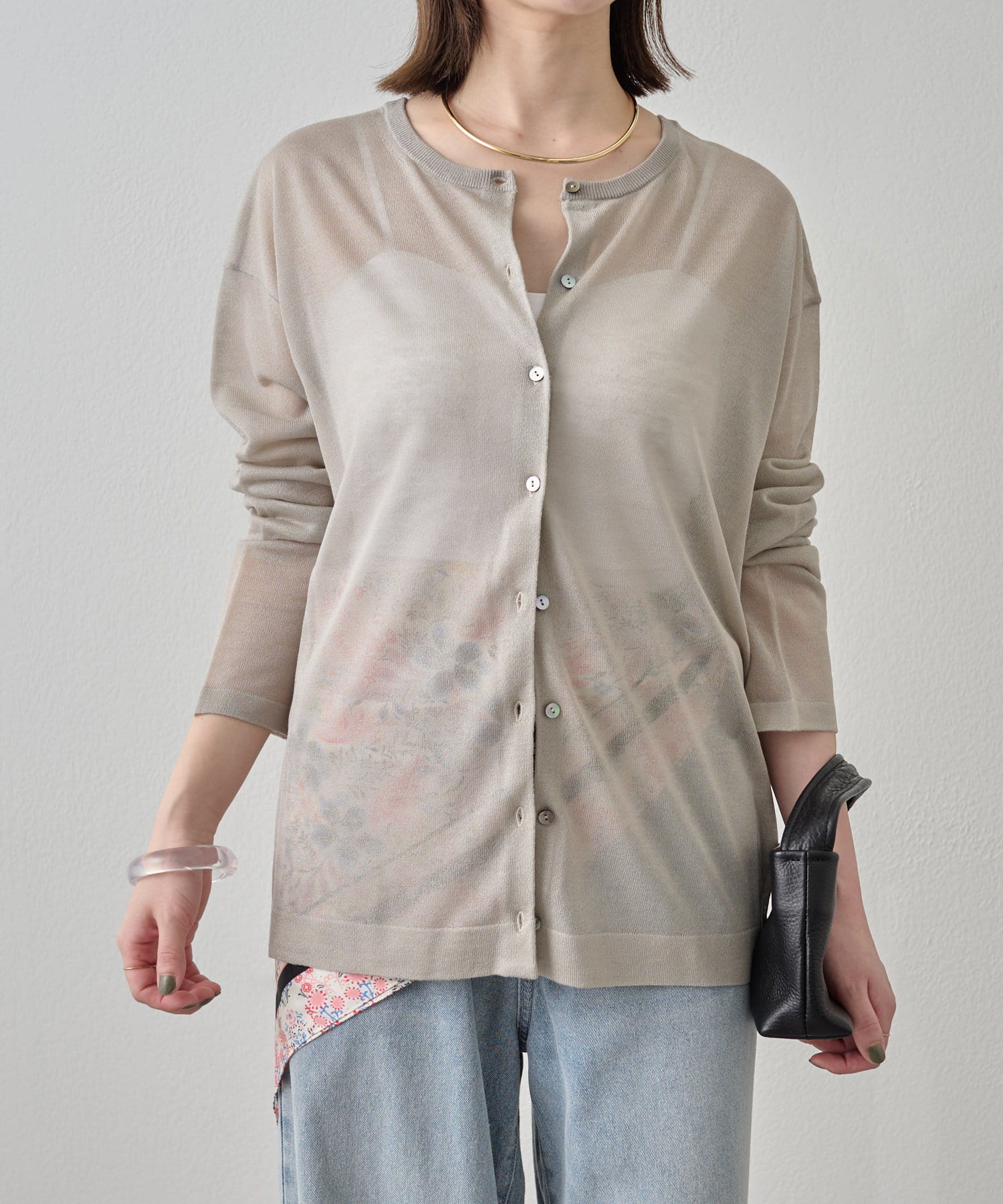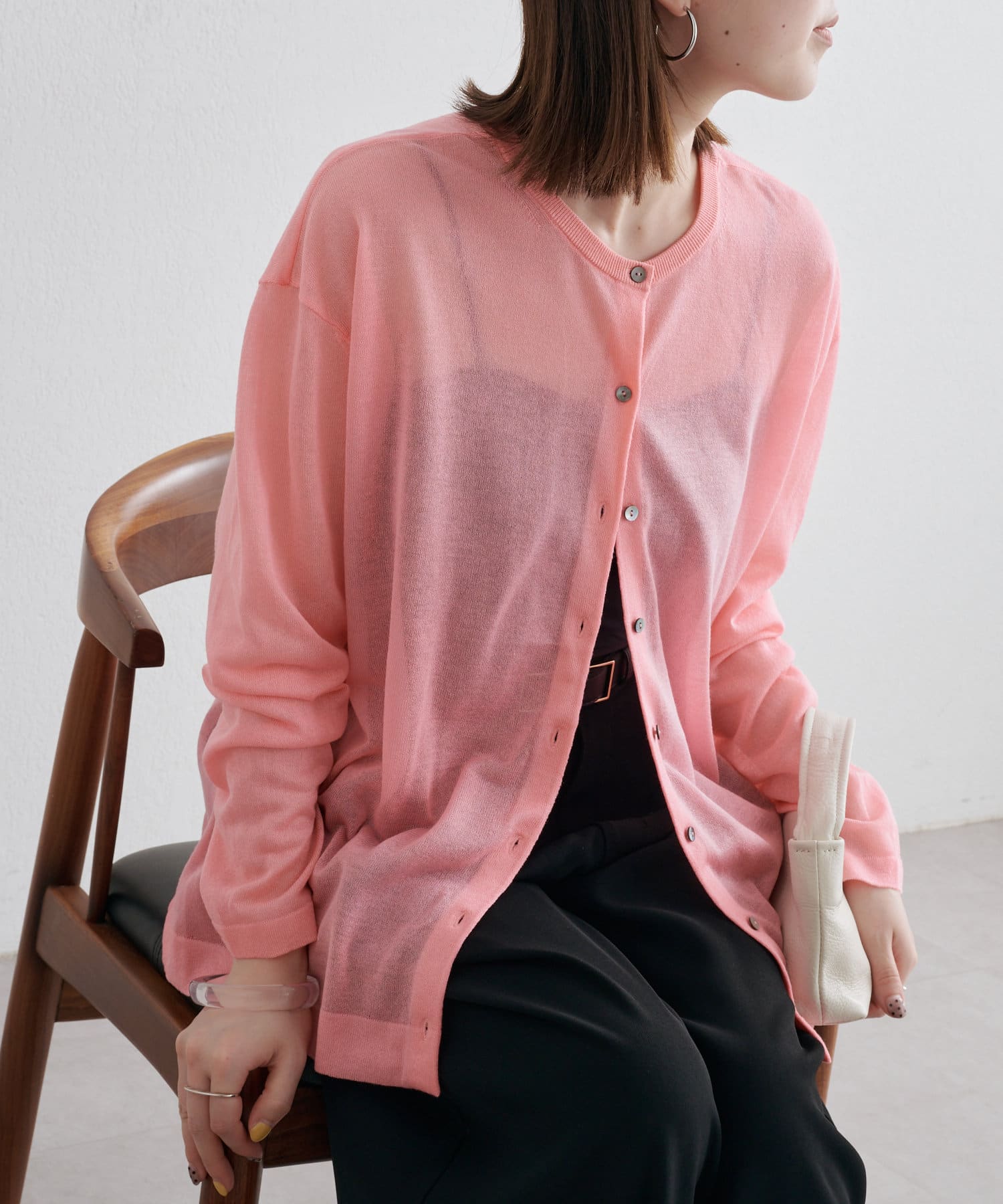 ・さらっと一枚で着こなしたいシアー素材のカーディガン。