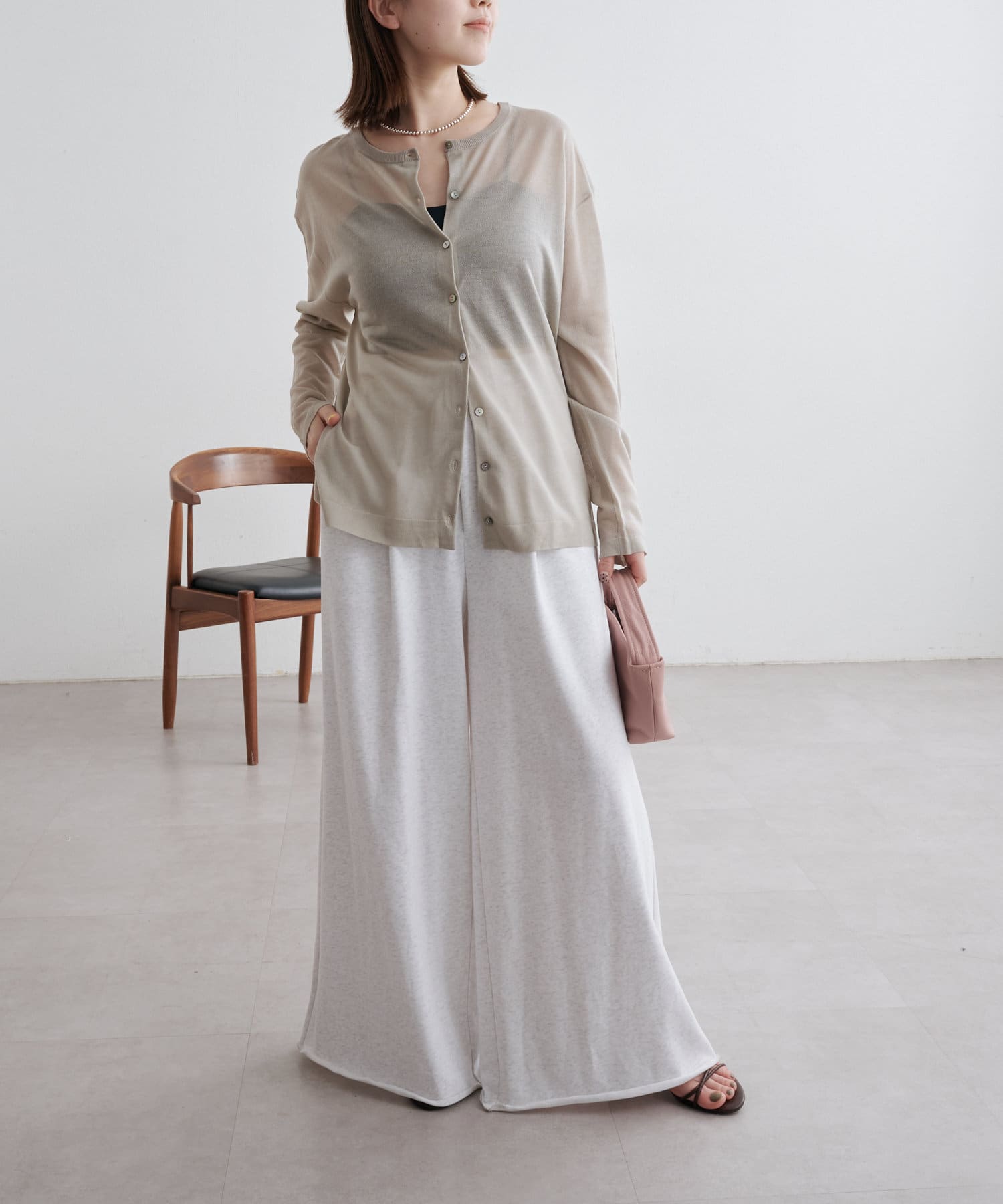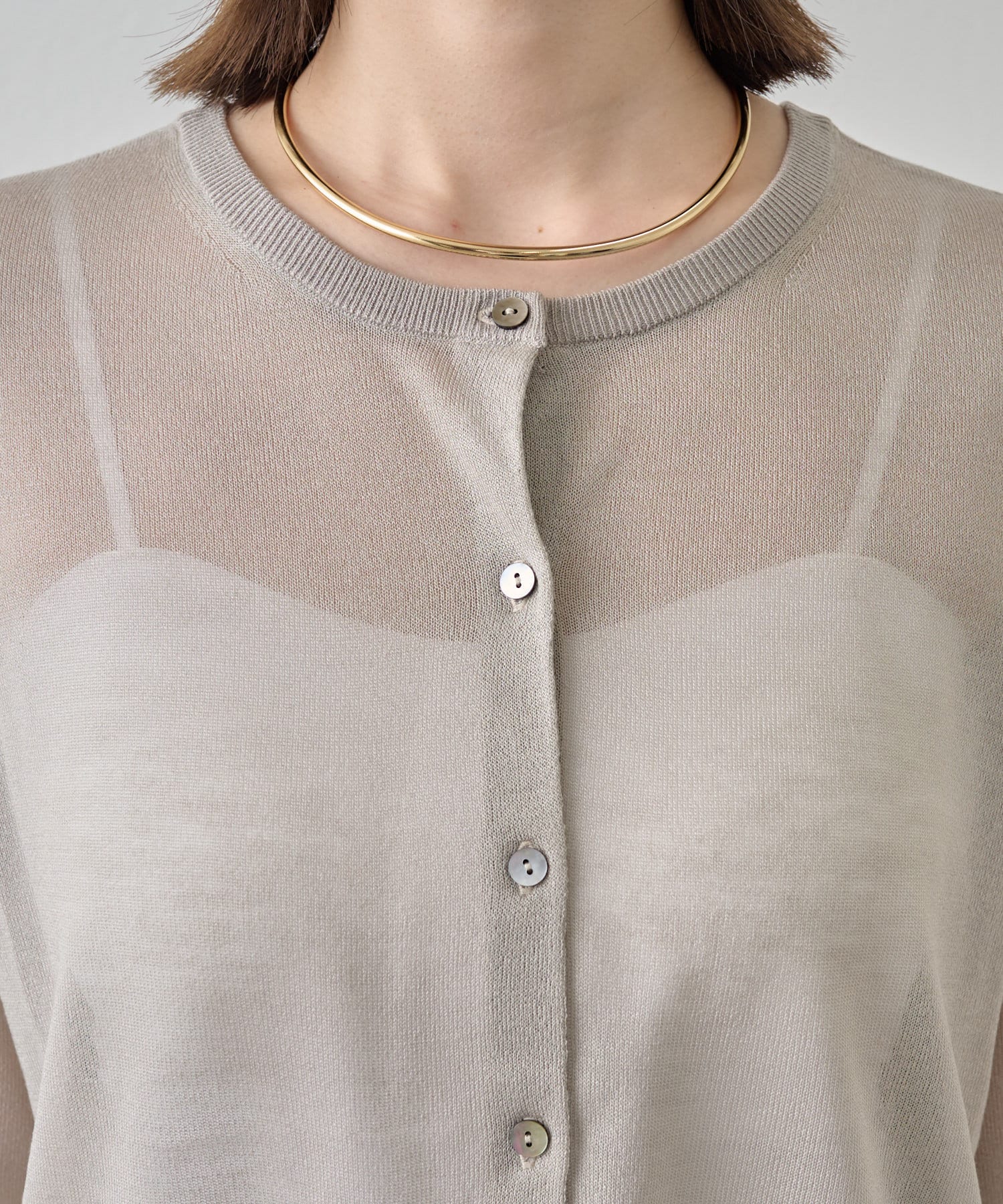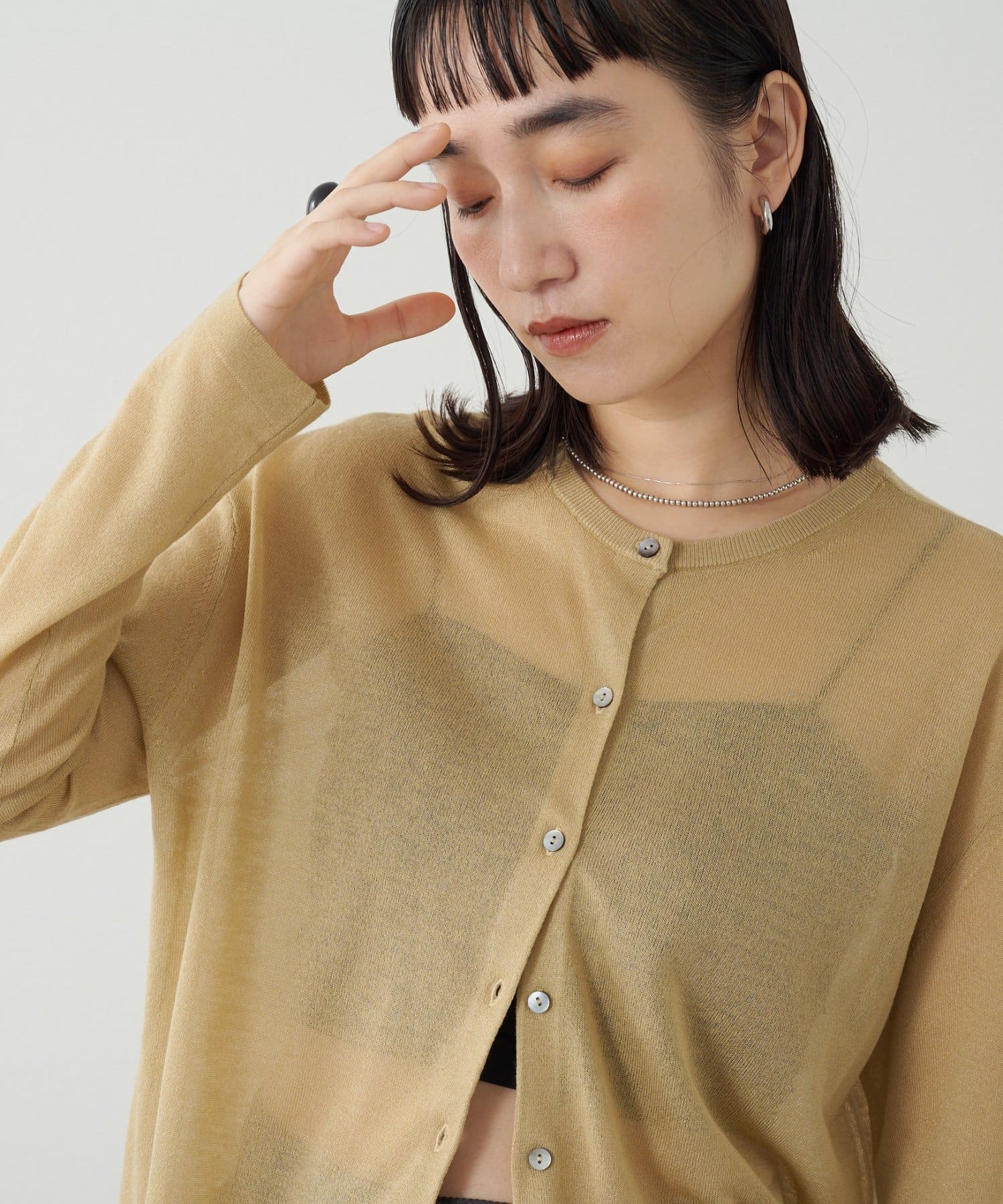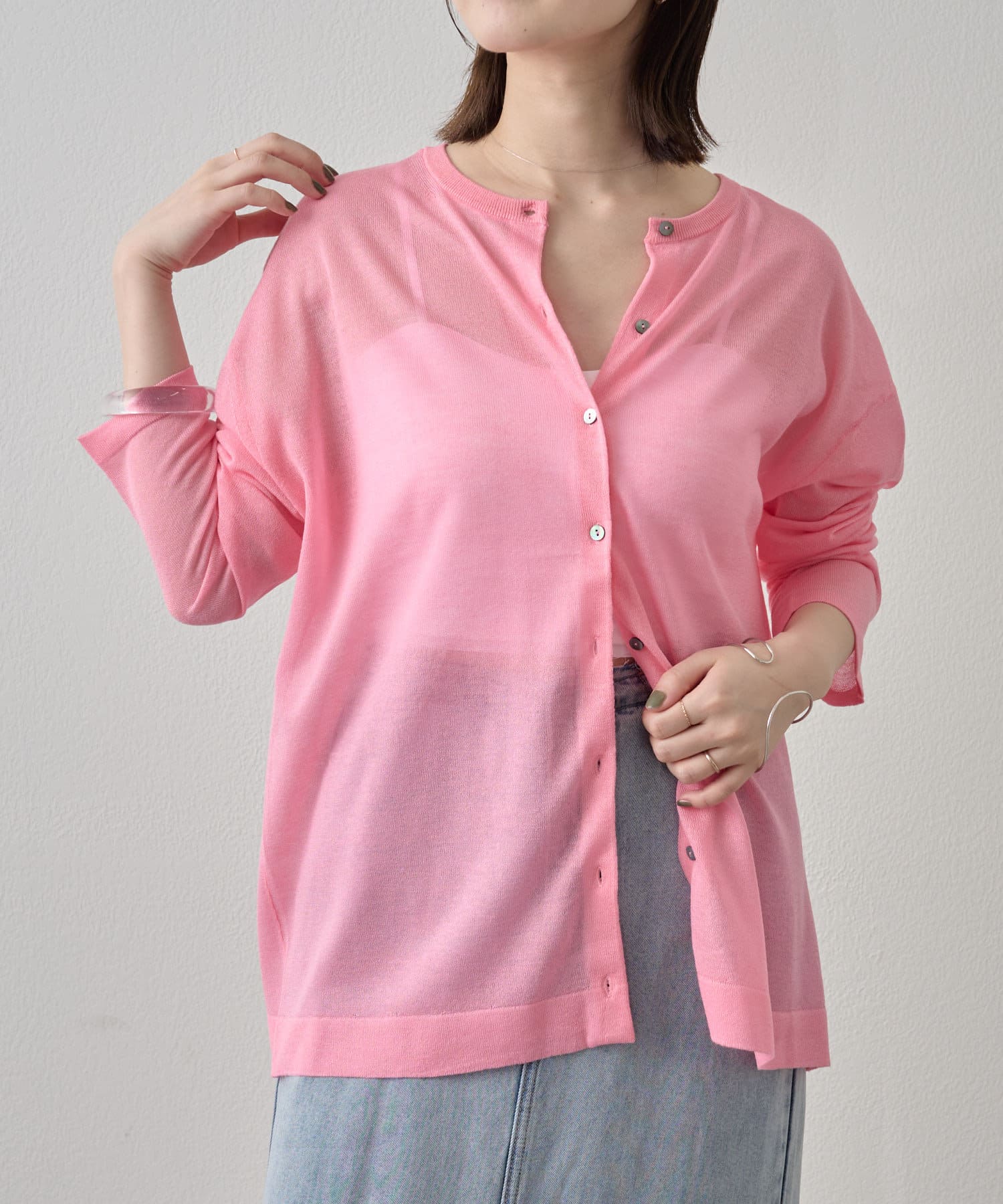 ・さらっと一枚で着こなしたいシアー素材のカーディガン。
