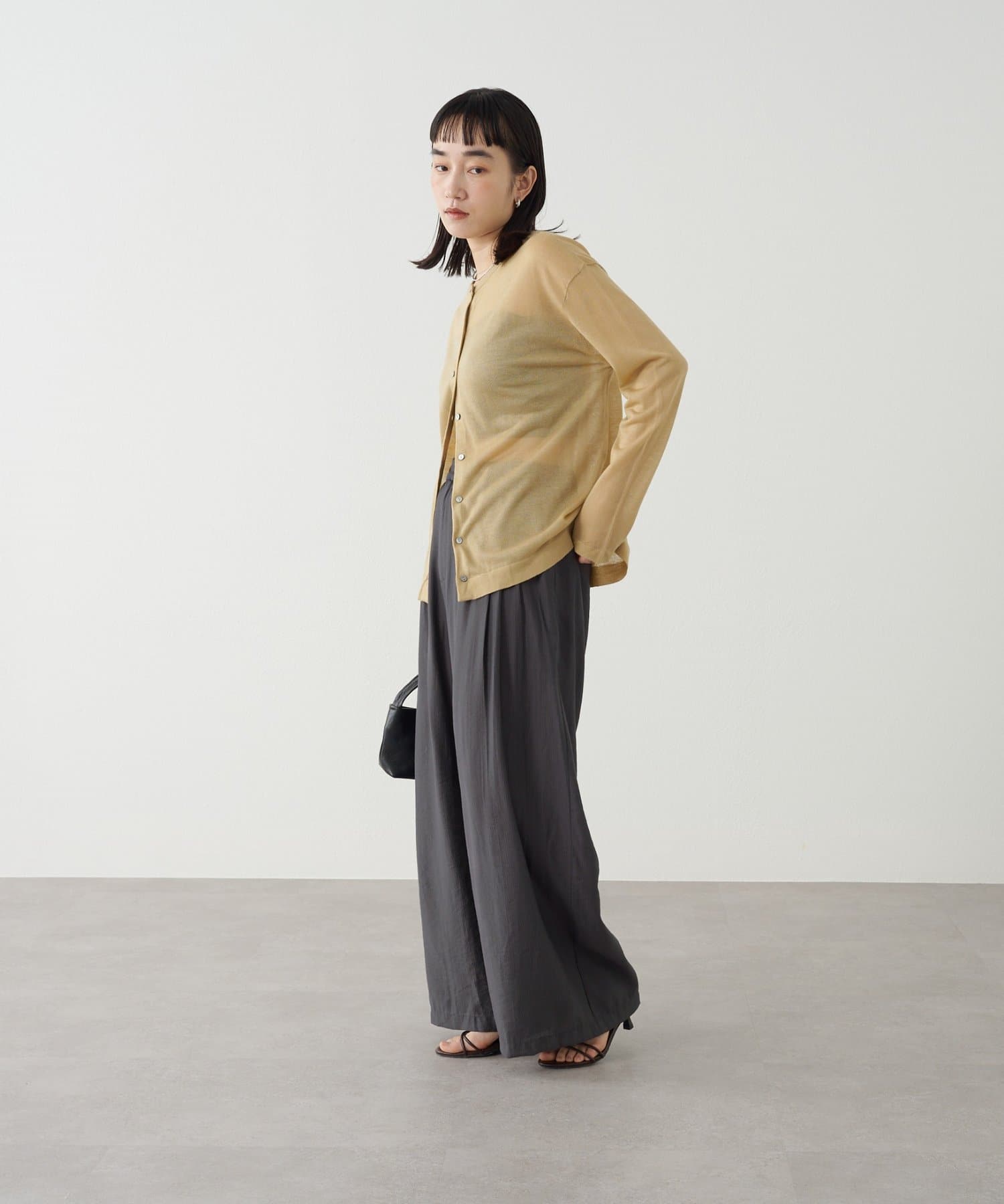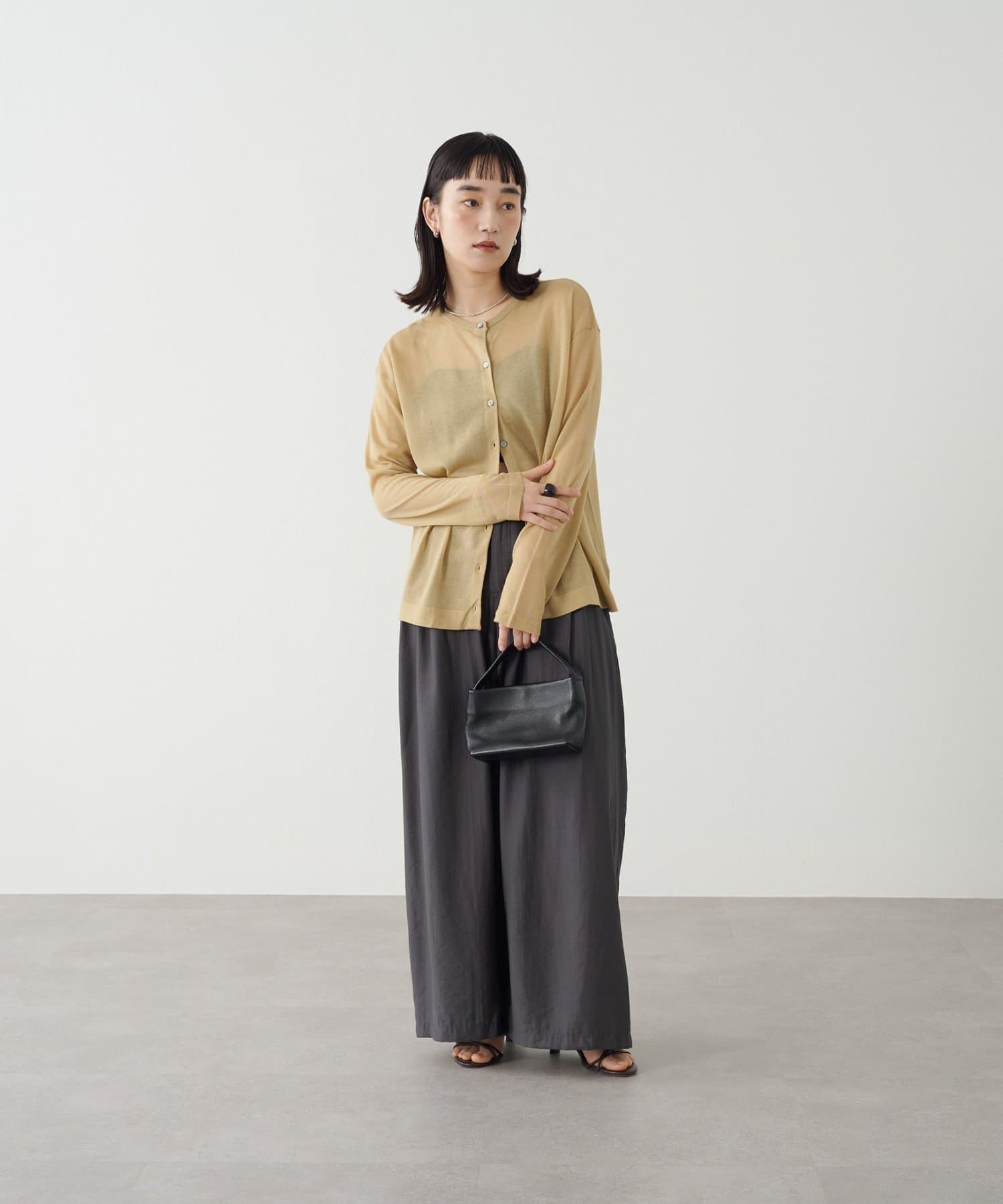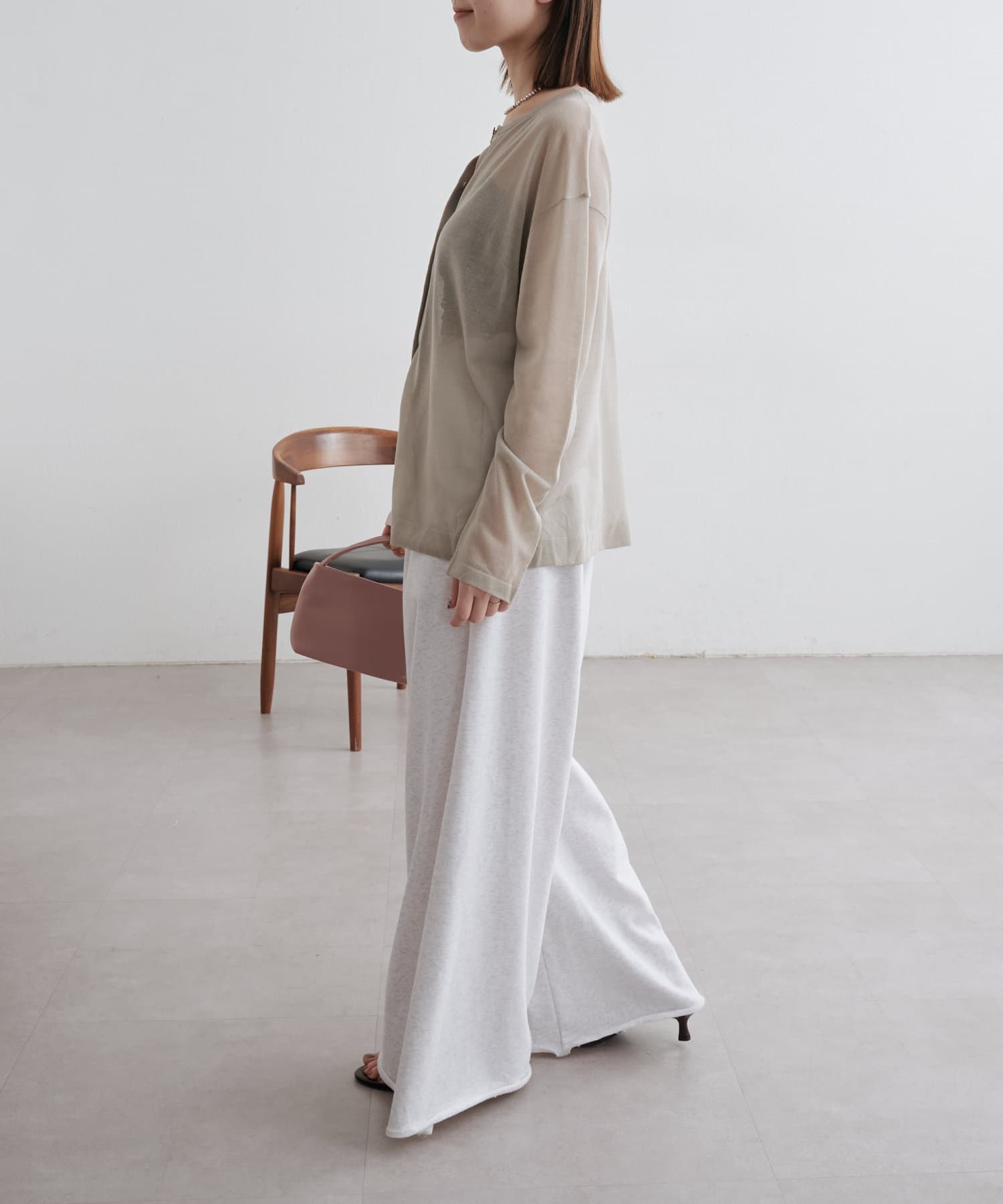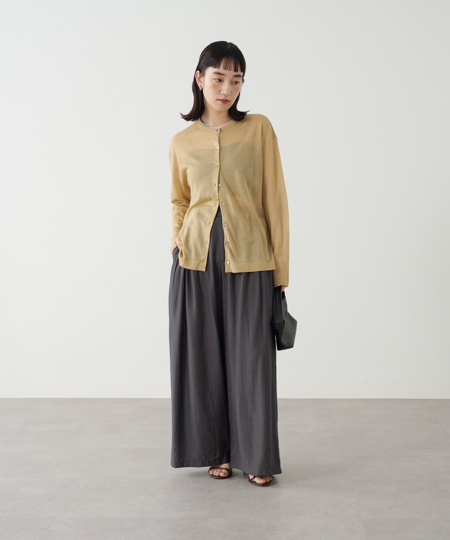 ・さらっと一枚で着こなしたいシアー素材のカーディガン。