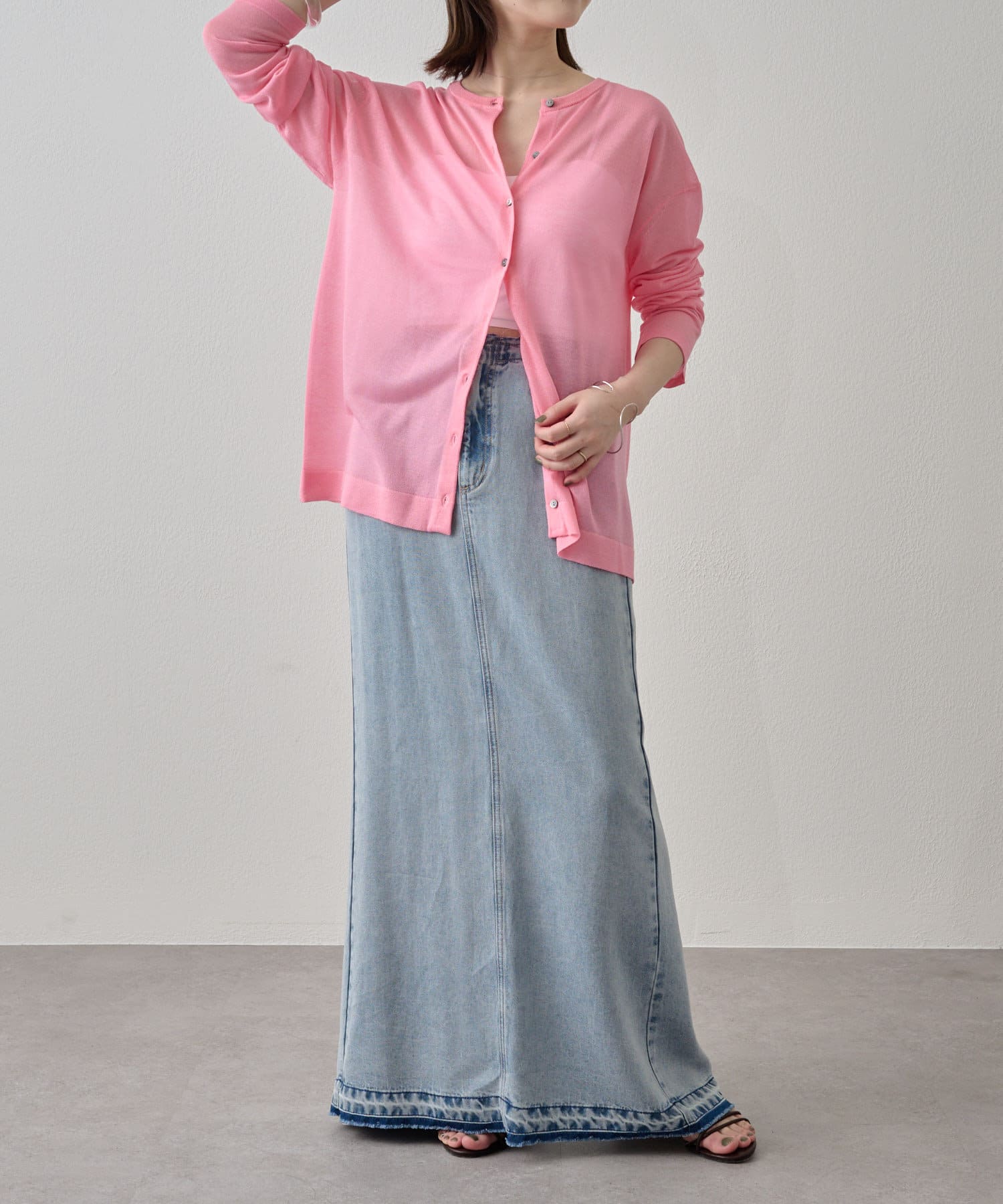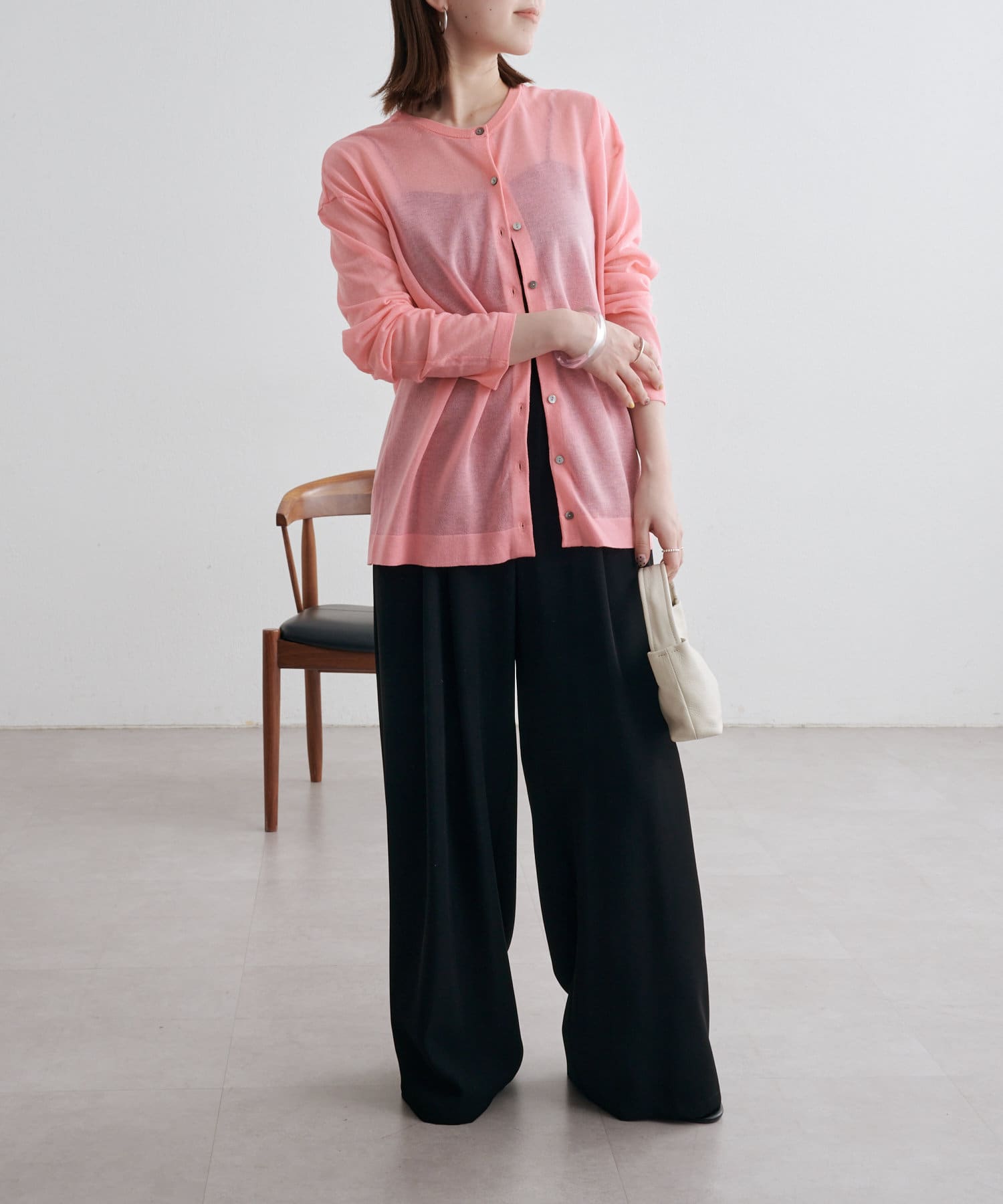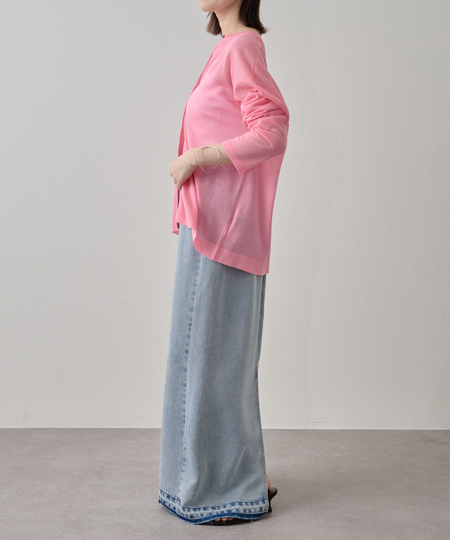 久々に欲しいー!となったピンクカーデ。落ち感もあるので低身長でもオーバーになりすぎず夏の羽織に重宝します。