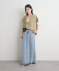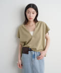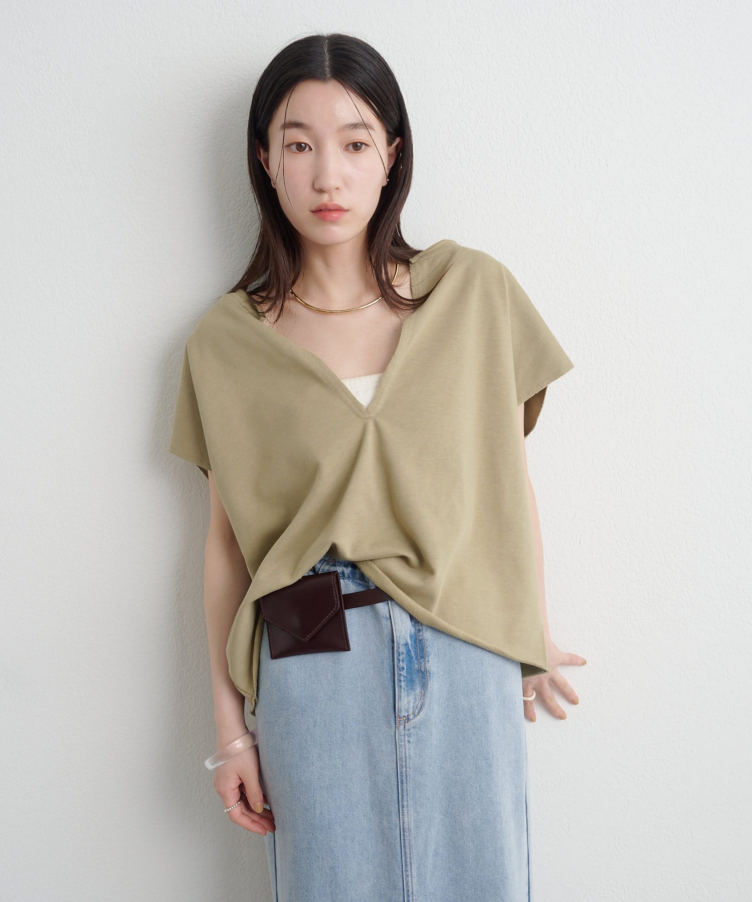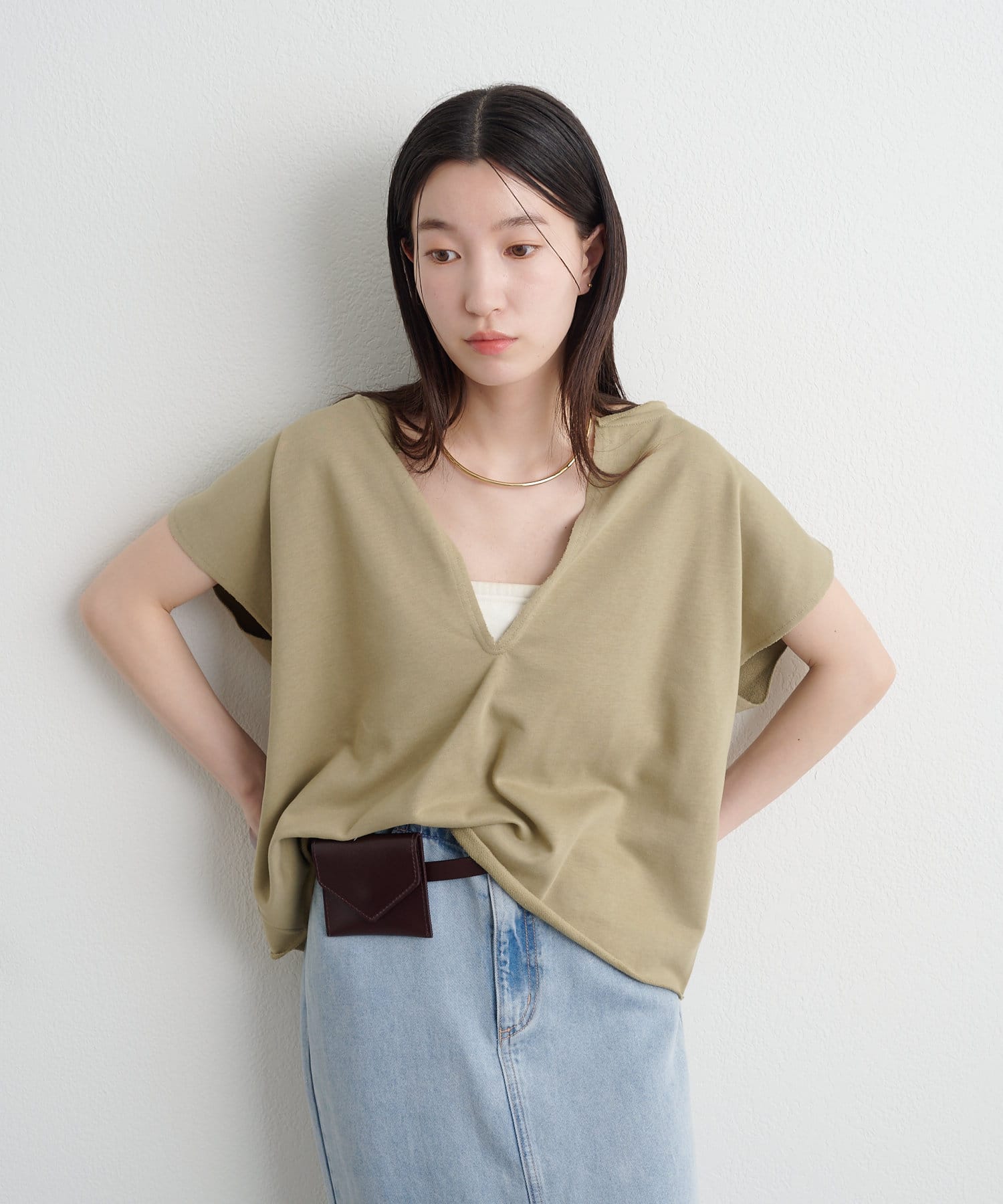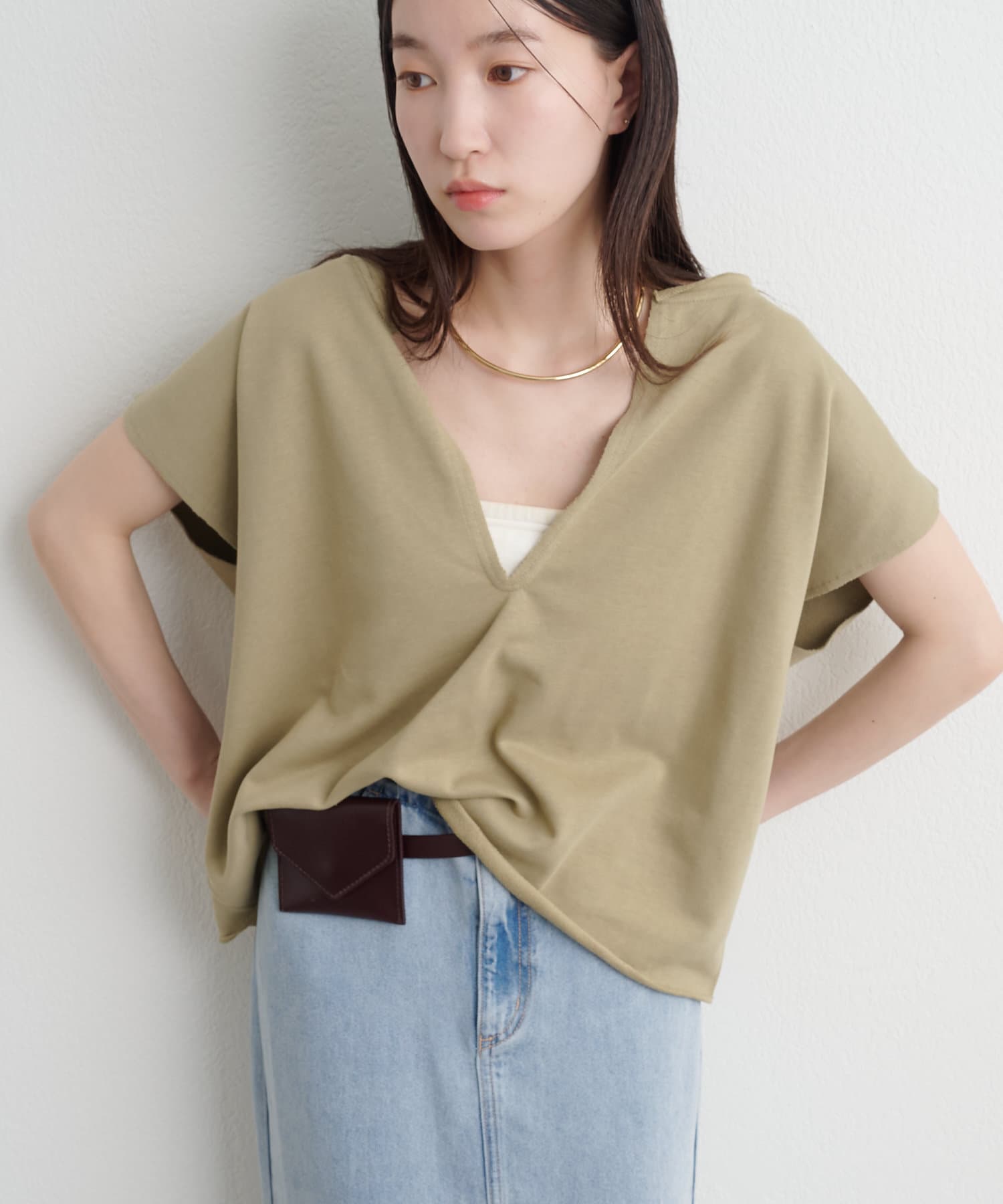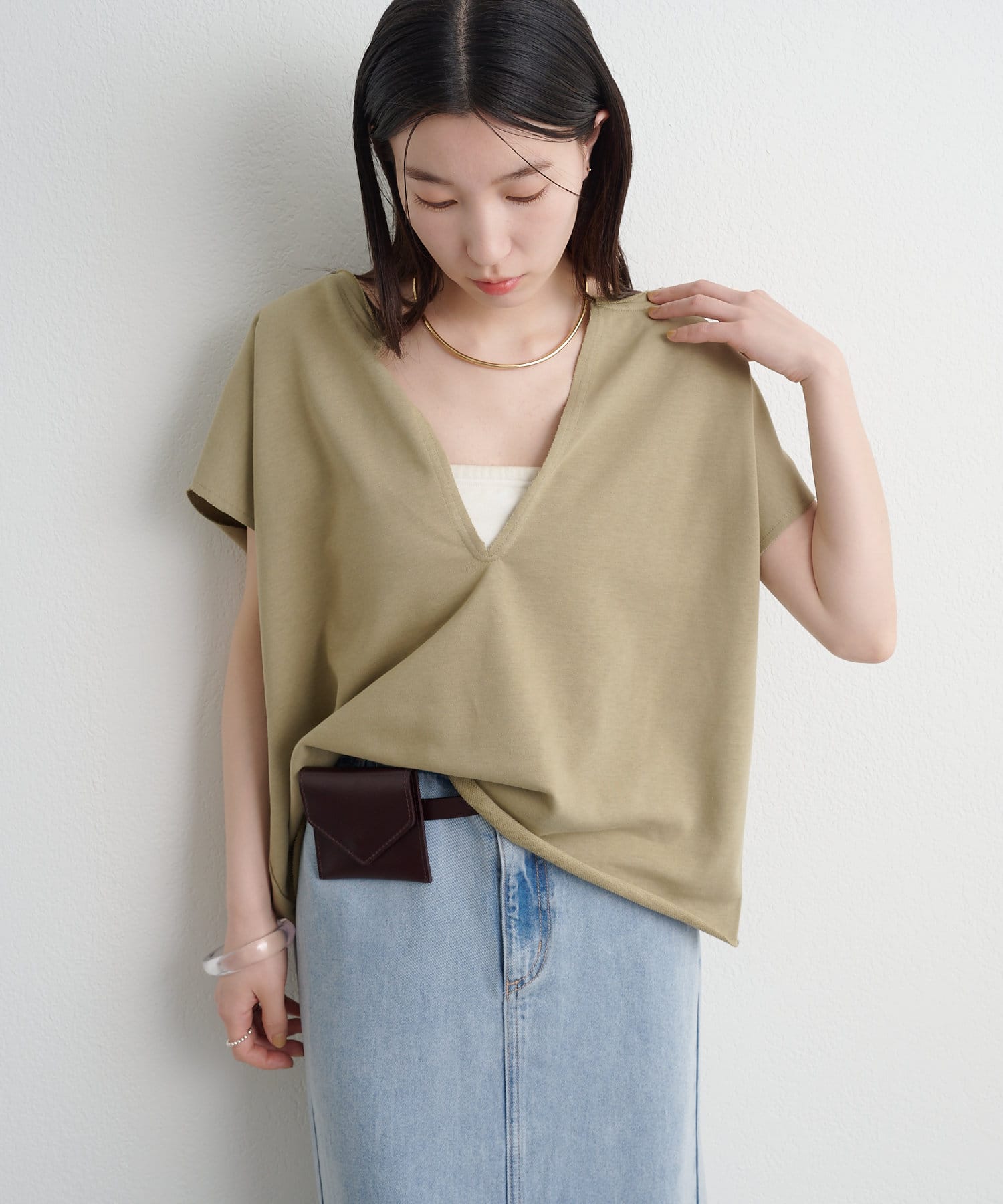 ・深めのVネックが華奢見えする、カジュアルスタイルにぴったりな一枚。