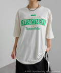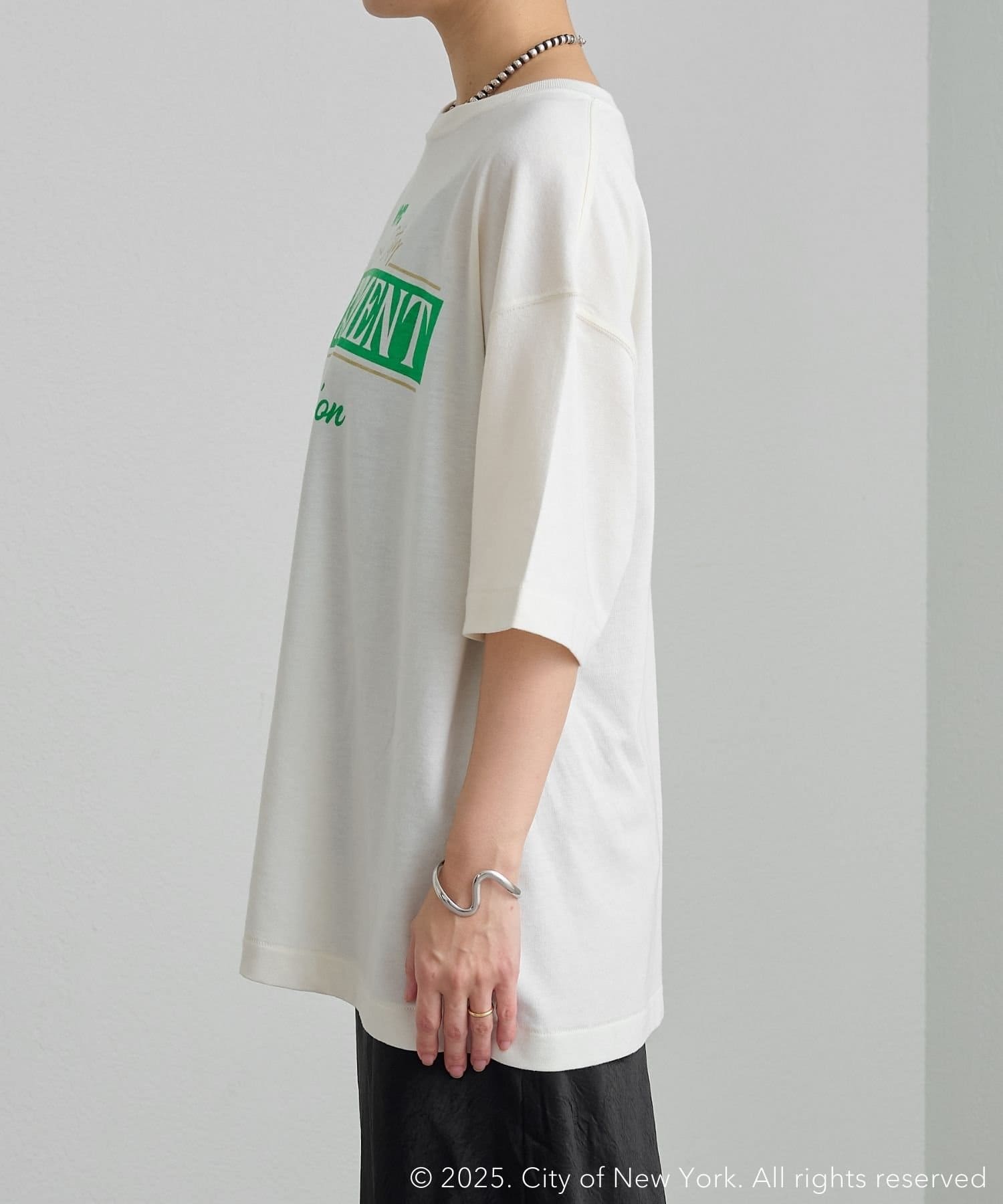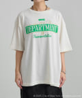 グリーンカラーのロゴがポイントになるプリントTシャツ