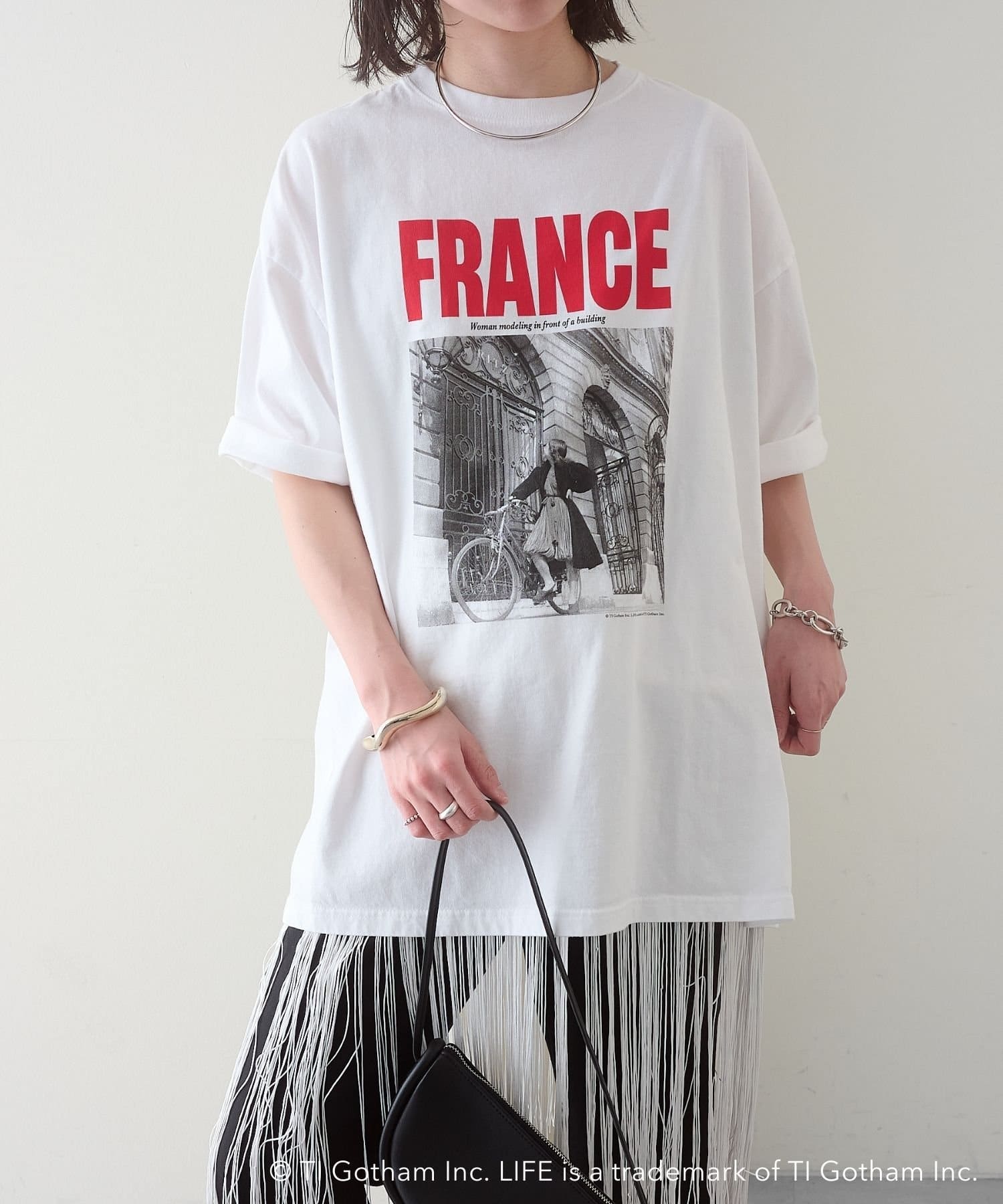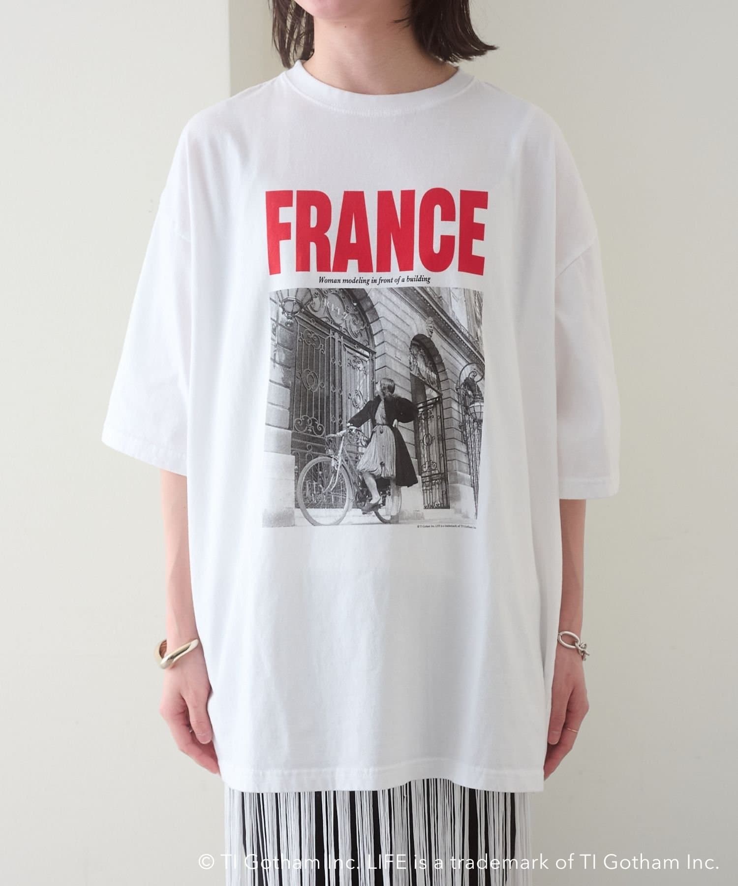 『FRANCE』のロゴとフォトプリントが目を惹くビッグTシャツ