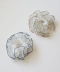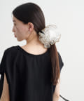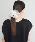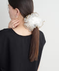 ・存在感のある大ぶりなシュシュ。まとめた髪につけるだけで華やかになります。