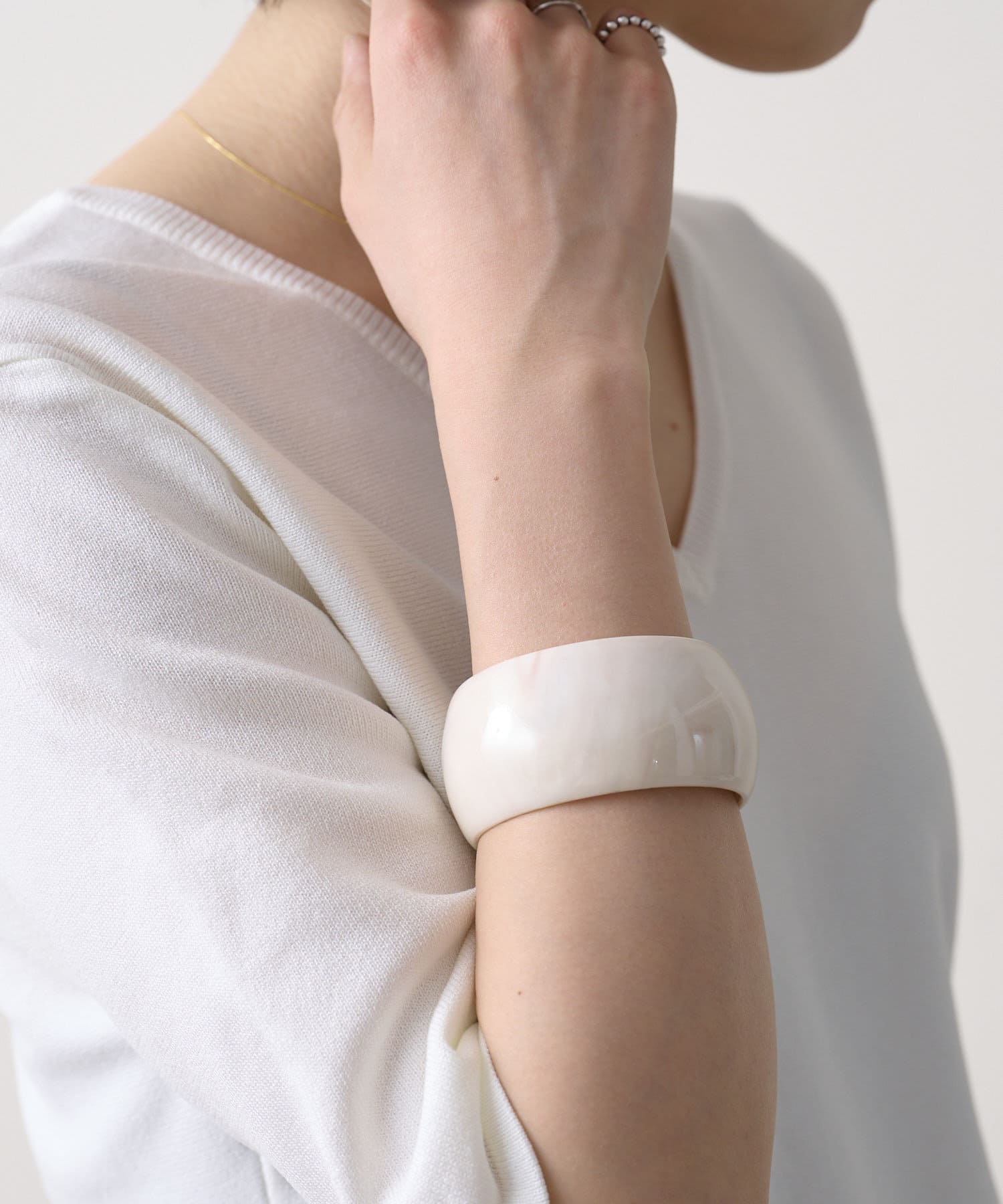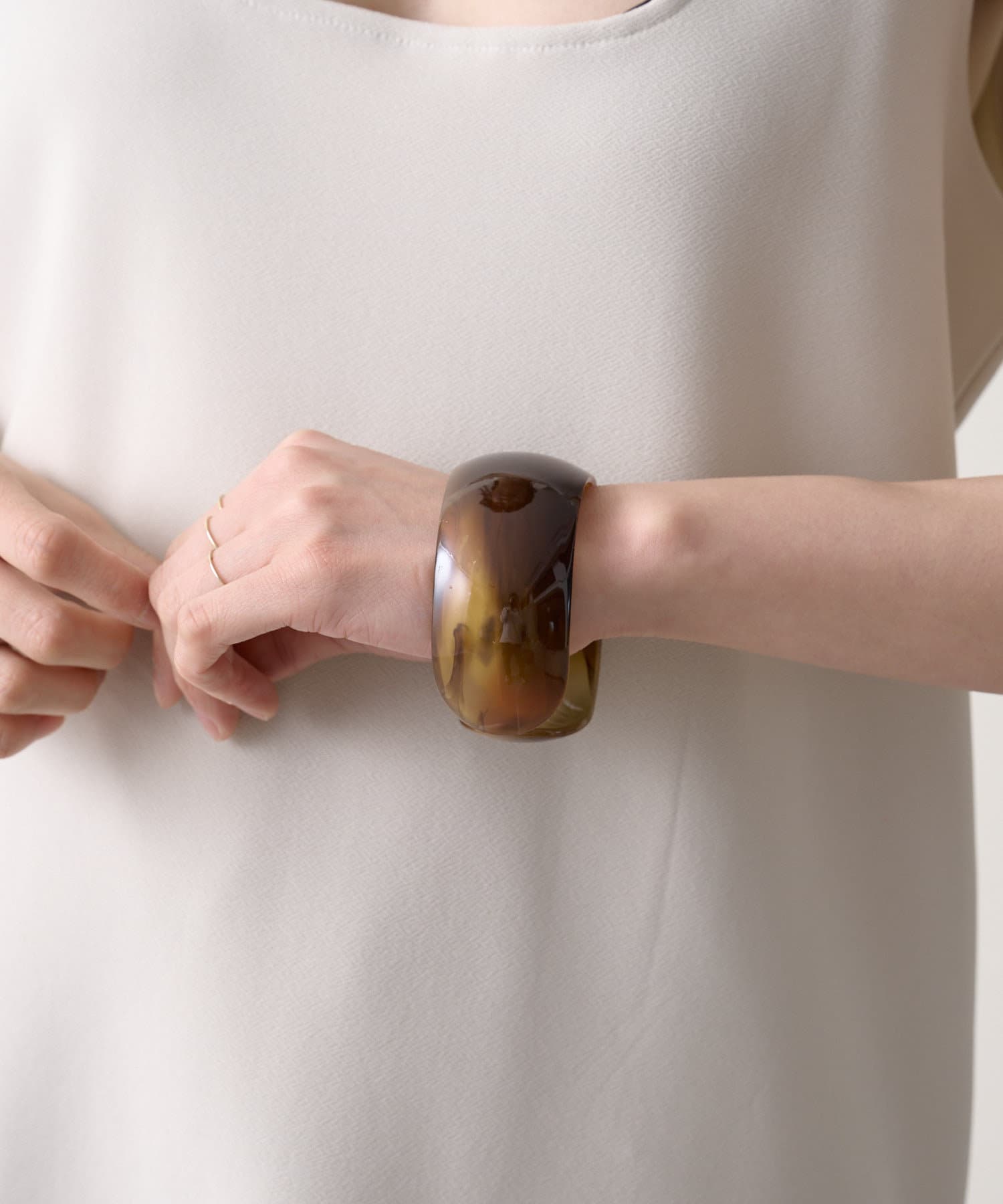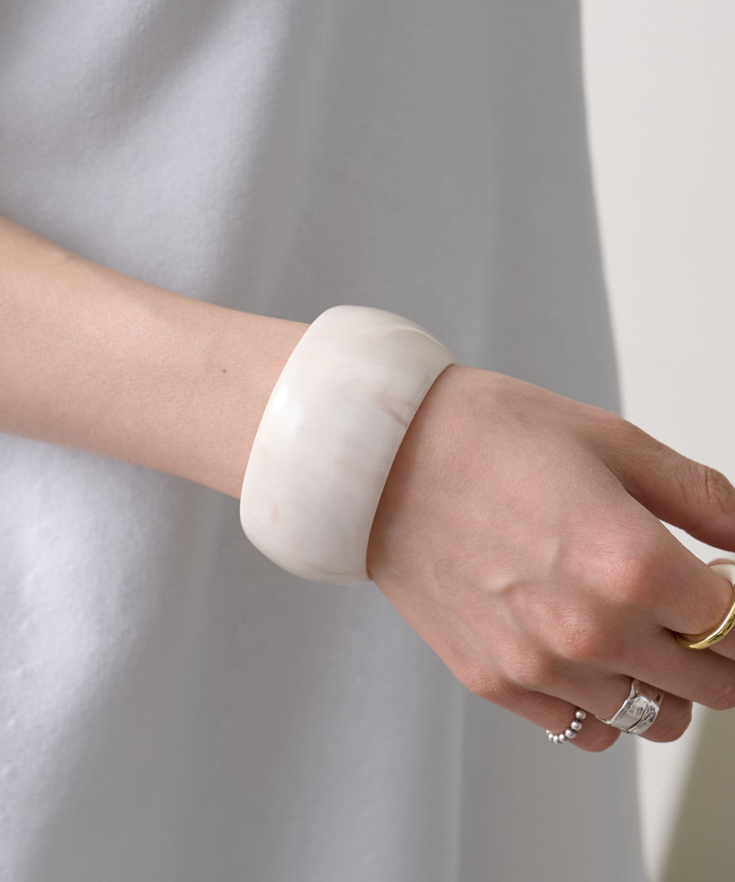 ・存在感とボリュームが在りながら、アクリル素材なので軽い着け心地のバングル