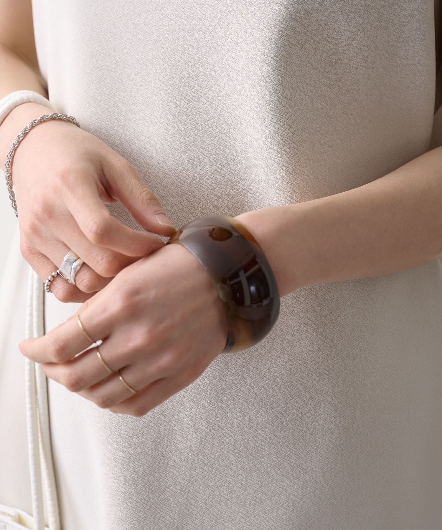 ・存在感のあるバングルは、一つ着けるだけでコーディネートのアクセントに◎